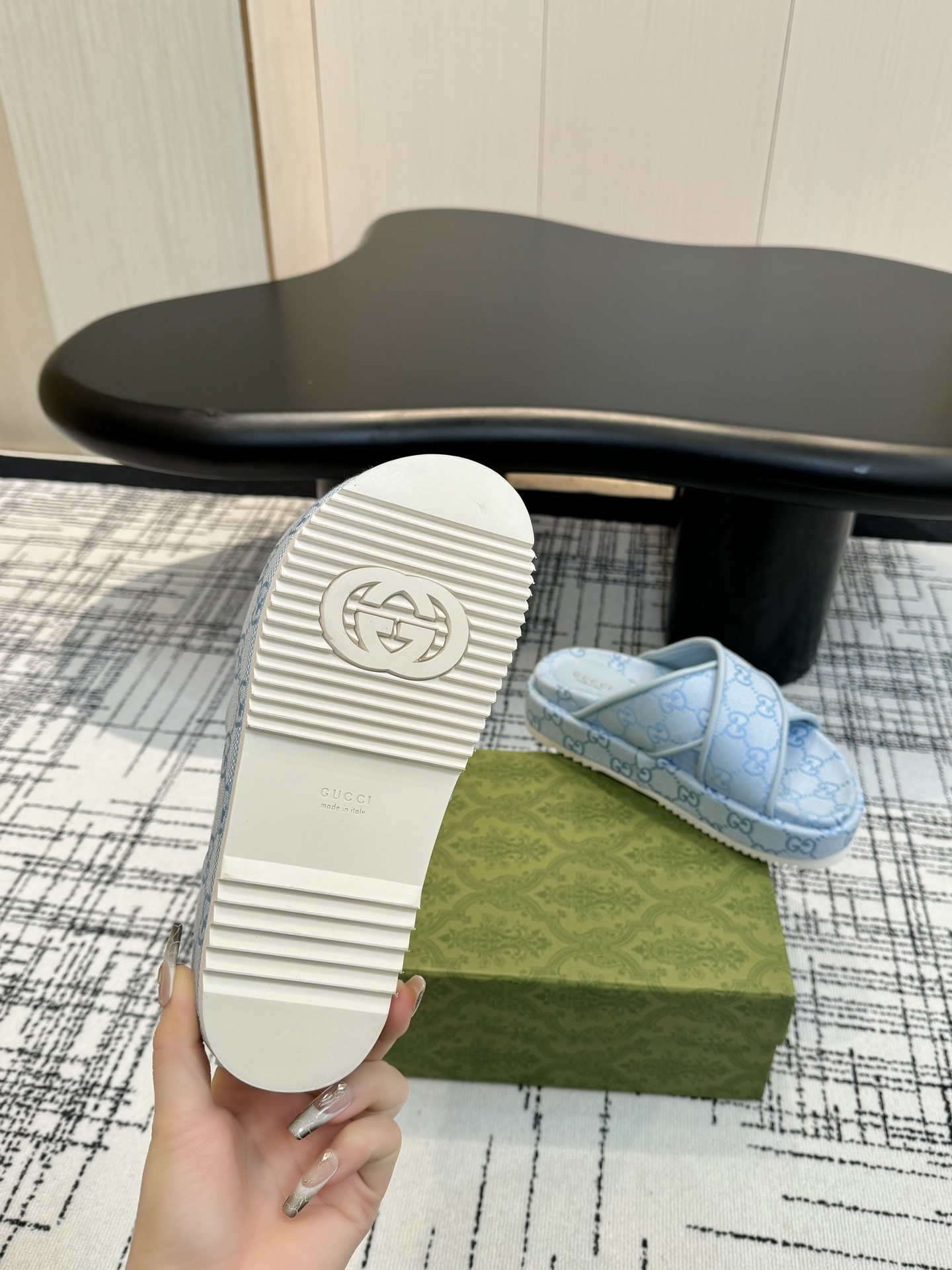 这款鞋子是AAAAA 1:1 质量 (非常棒). 使用了和原版一模一样的材料. 商标部分也保持了和古奇/Gucci一样. 图片拍摄是实物鞋子拍摄, 您所收到的实物保证和我们图片一模一样.