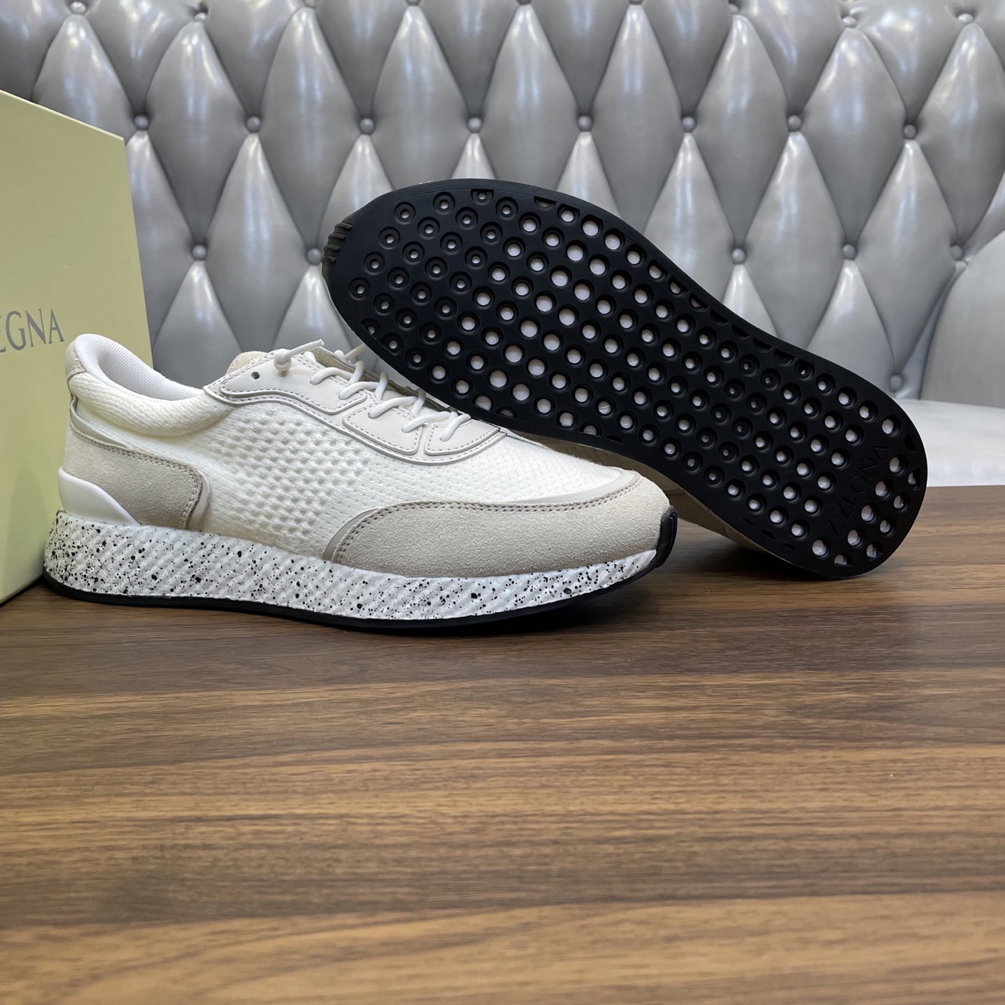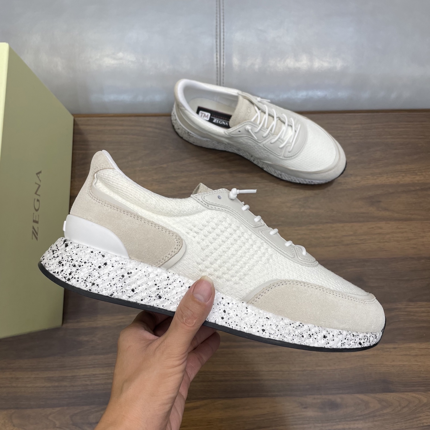 这款鞋子是AAAAA 1:1 质量 (非常棒). 使用了和原版一模一样的材料. 商标部分也保持了和杰尼亚/Zegna一样. 图片拍摄是实物鞋子拍摄, 您所收到的实物保证和我们图片一模一样.