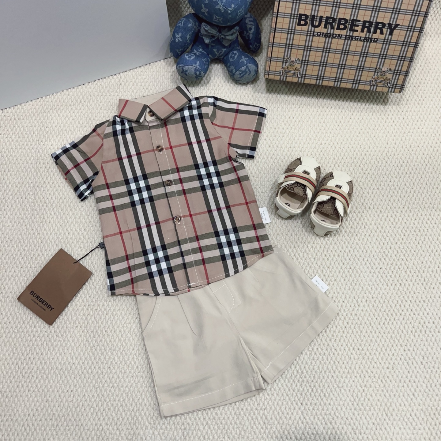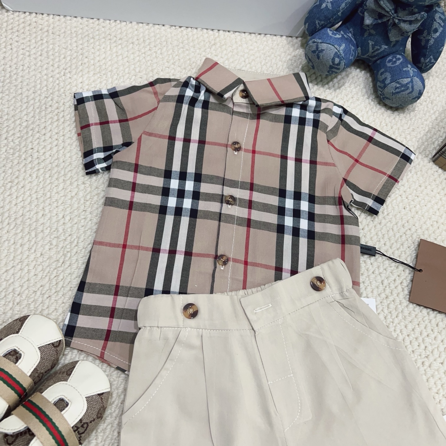 这款children's clothes是AAAAA 1:1 质量 (非常棒). 使用了和原版一模一样的材料. 商标部分也保持了和巴宝莉/Burberry一样. 图片拍摄是实物children's clothes拍摄, 您所收到的实物保证和我们图片一模一样.