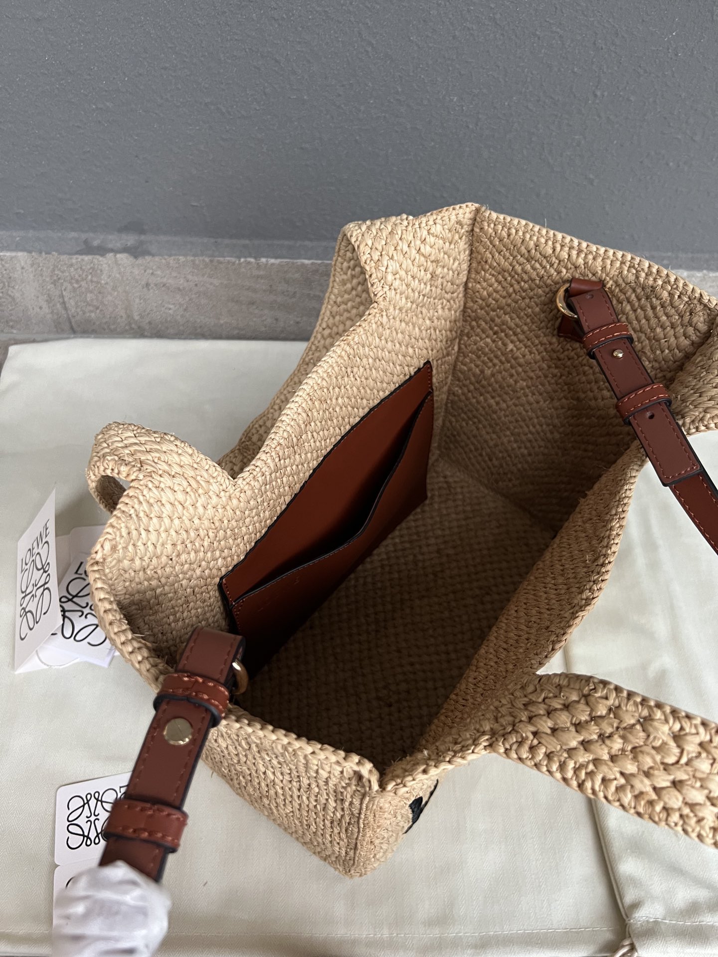 这款包包是AAAAA 1:1 质量 (非常棒). 使用了和原版一模一样的材料. 商标部分也保持了和罗意威/Loewe一样. 图片拍摄是实物包包拍摄, 您所收到的实物保证和我们图片一模一样.