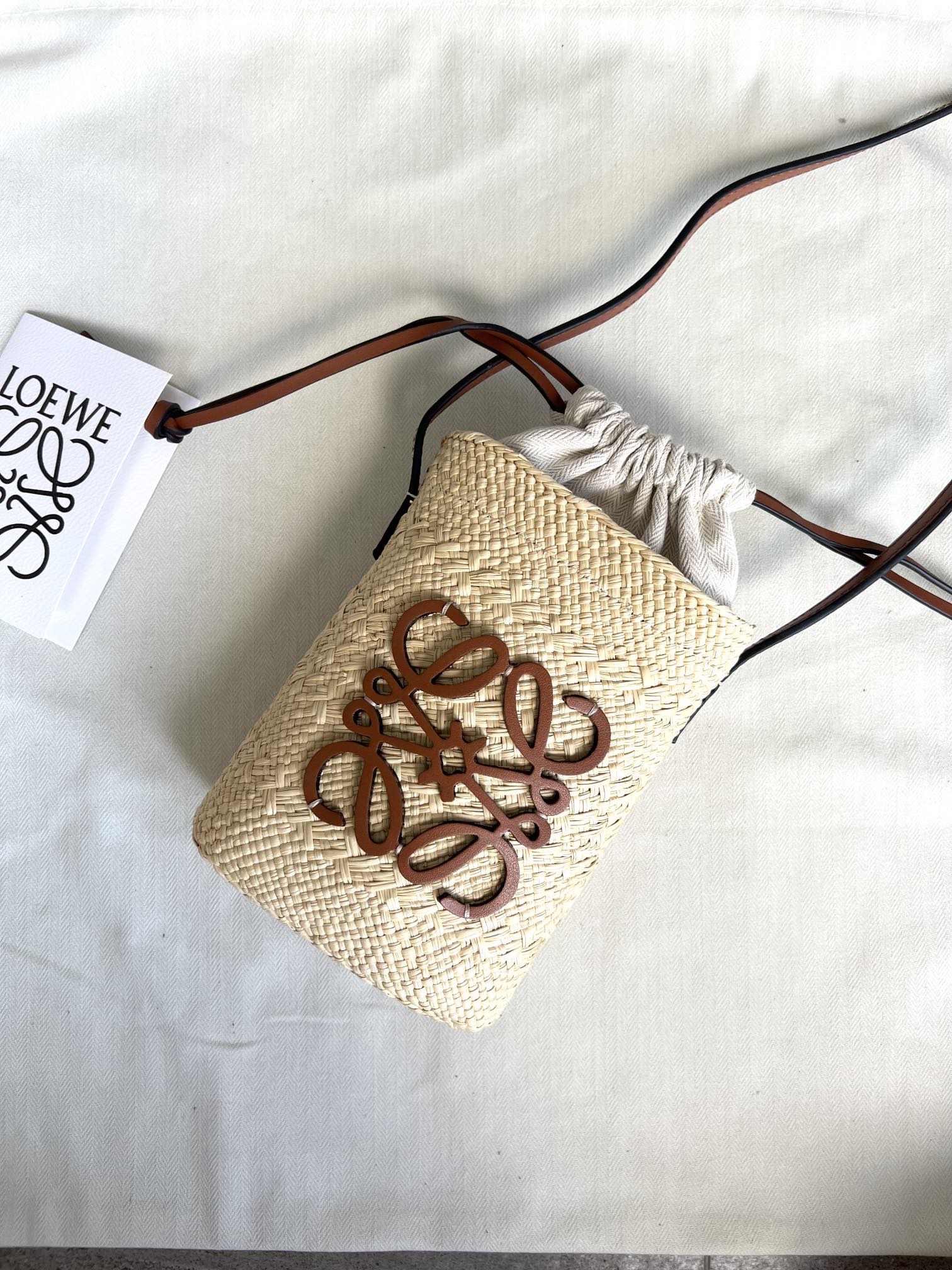 这款包包是AAAAA 1:1 质量 (非常棒). 使用了和原版一模一样的材料. 商标部分也保持了和罗意威/Loewe一样. 图片拍摄是实物包包拍摄, 您所收到的实物保证和我们图片一模一样.