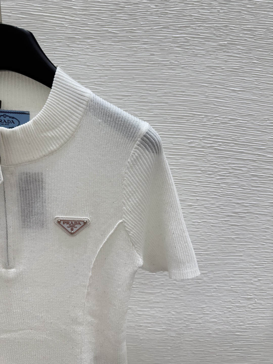 这款衣服是AAAAA 1:1 质量 (非常棒). 使用了和原版一模一样的材料. 商标部分也保持了和普拉达/Prada一样. 图片拍摄是实物衣服拍摄, 您所收到的实物保证和我们图片一模一样.
