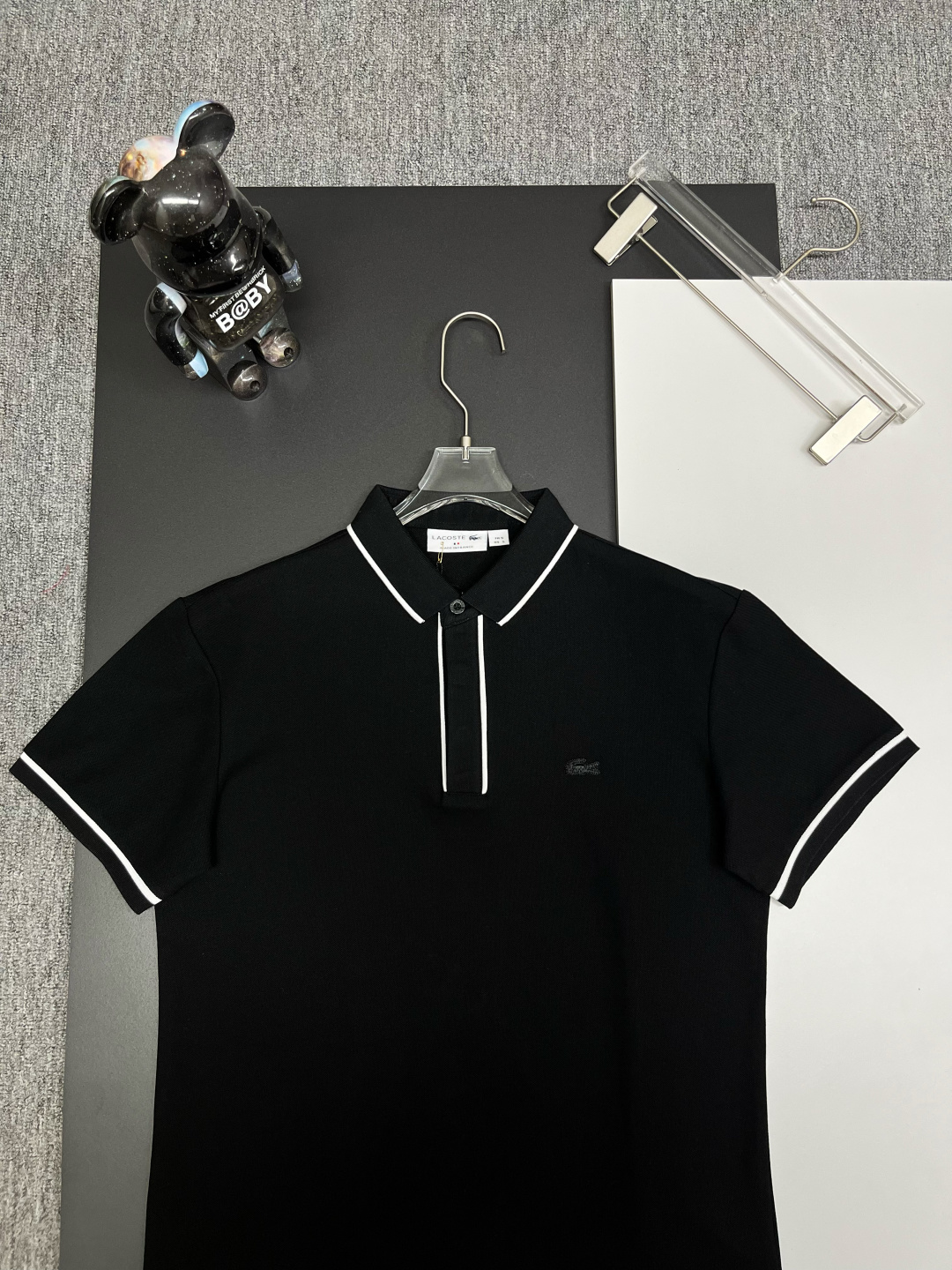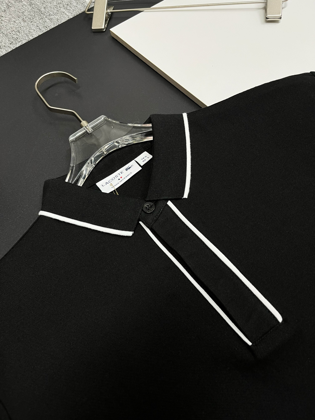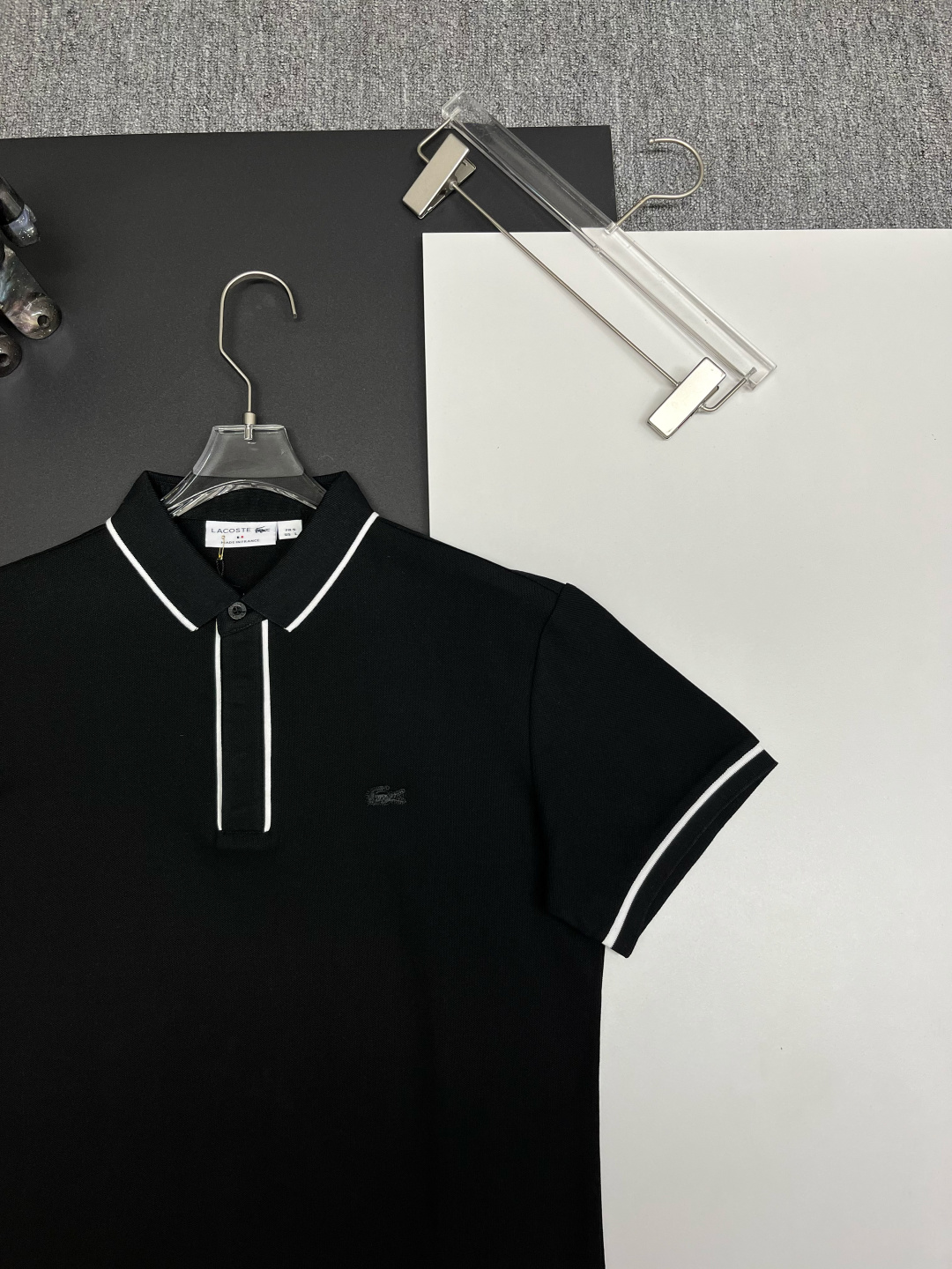 这款衣服是AAAAA 1:1 质量 (非常棒). 使用了和原版一模一样的材料. 商标部分也保持了和LACOSTE一样. 图片拍摄是实物衣服拍摄, 您所收到的实物保证和我们图片一模一样.