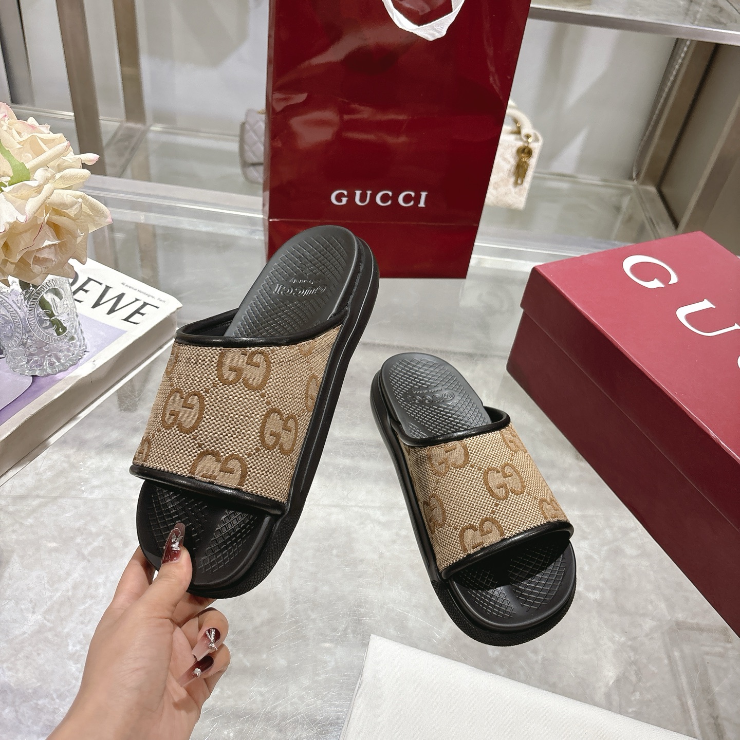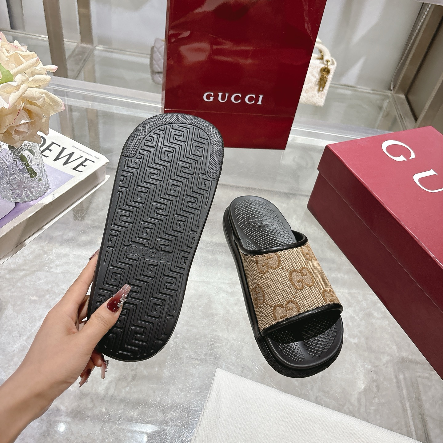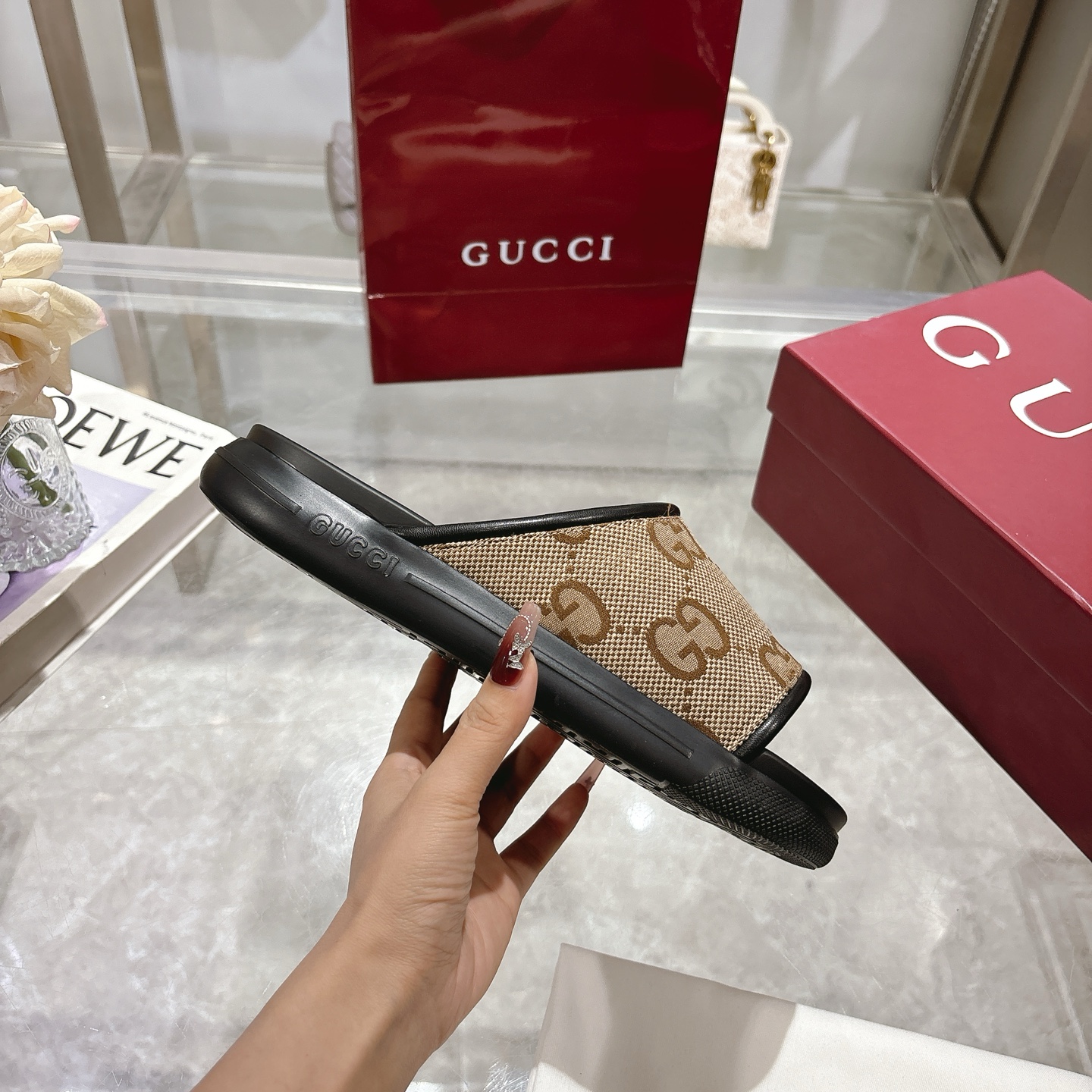 这款鞋子是AAAAA 1:1 质量 (非常棒). 使用了和原版一模一样的材料. 商标部分也保持了和古奇/Gucci一样. 图片拍摄是实物鞋子拍摄, 您所收到的实物保证和我们图片一模一样.