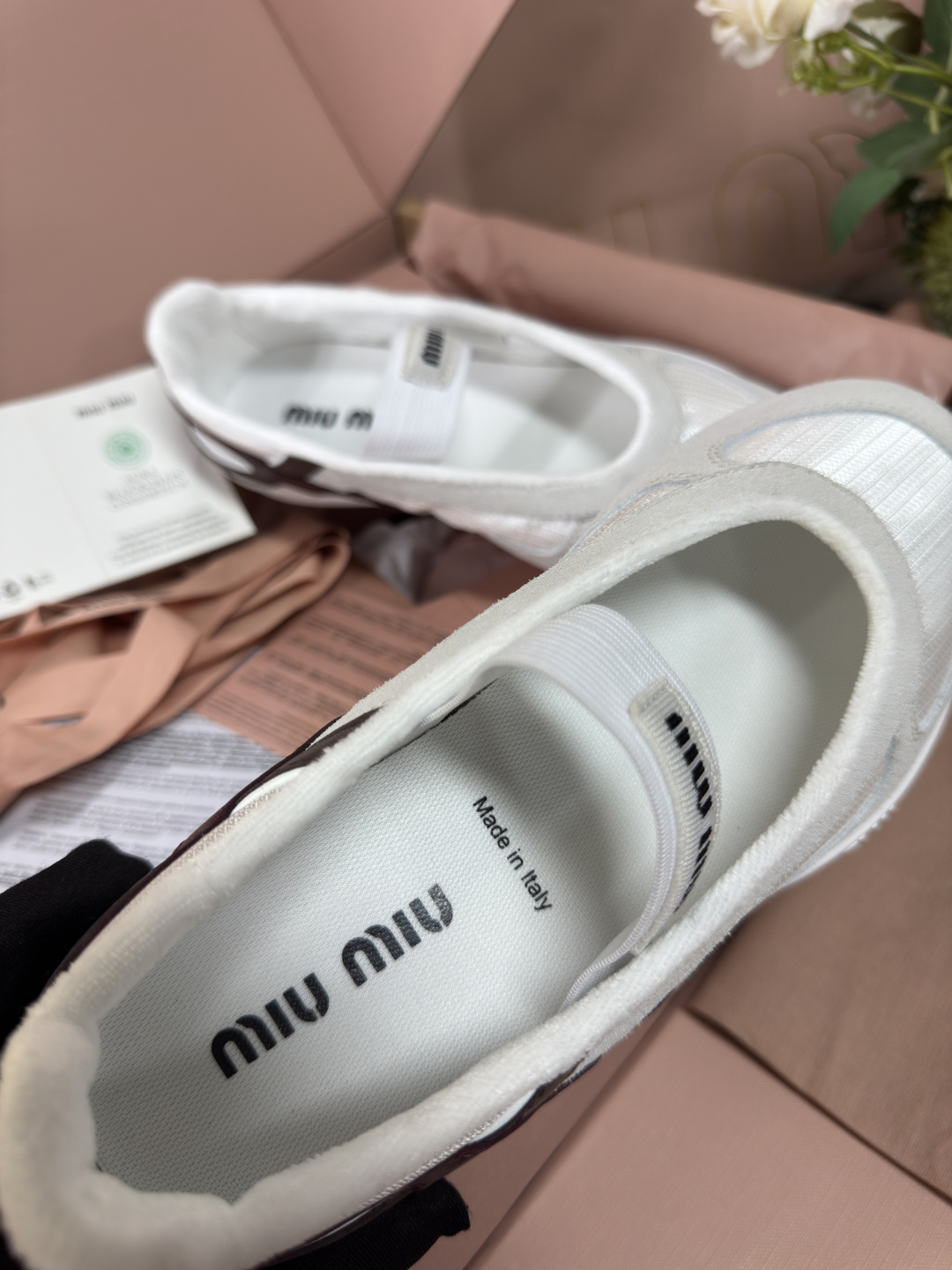 这款鞋子是AAAAA 1:1 质量 (非常棒). 使用了和原版一模一样的材料. 商标部分也保持了和缪缪/Miu Miu一样. 图片拍摄是实物鞋子拍摄, 您所收到的实物保证和我们图片一模一样.