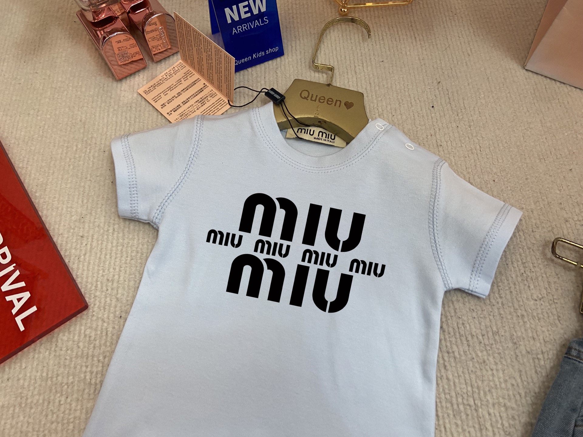 这款children's clothes是AAAAA 1:1 质量 (非常棒). 使用了和原版一模一样的材料. 商标部分也保持了和缪缪/Miu Miu一样. 图片拍摄是实物children's clothes拍摄, 您所收到的实物保证和我们图片一模一样.