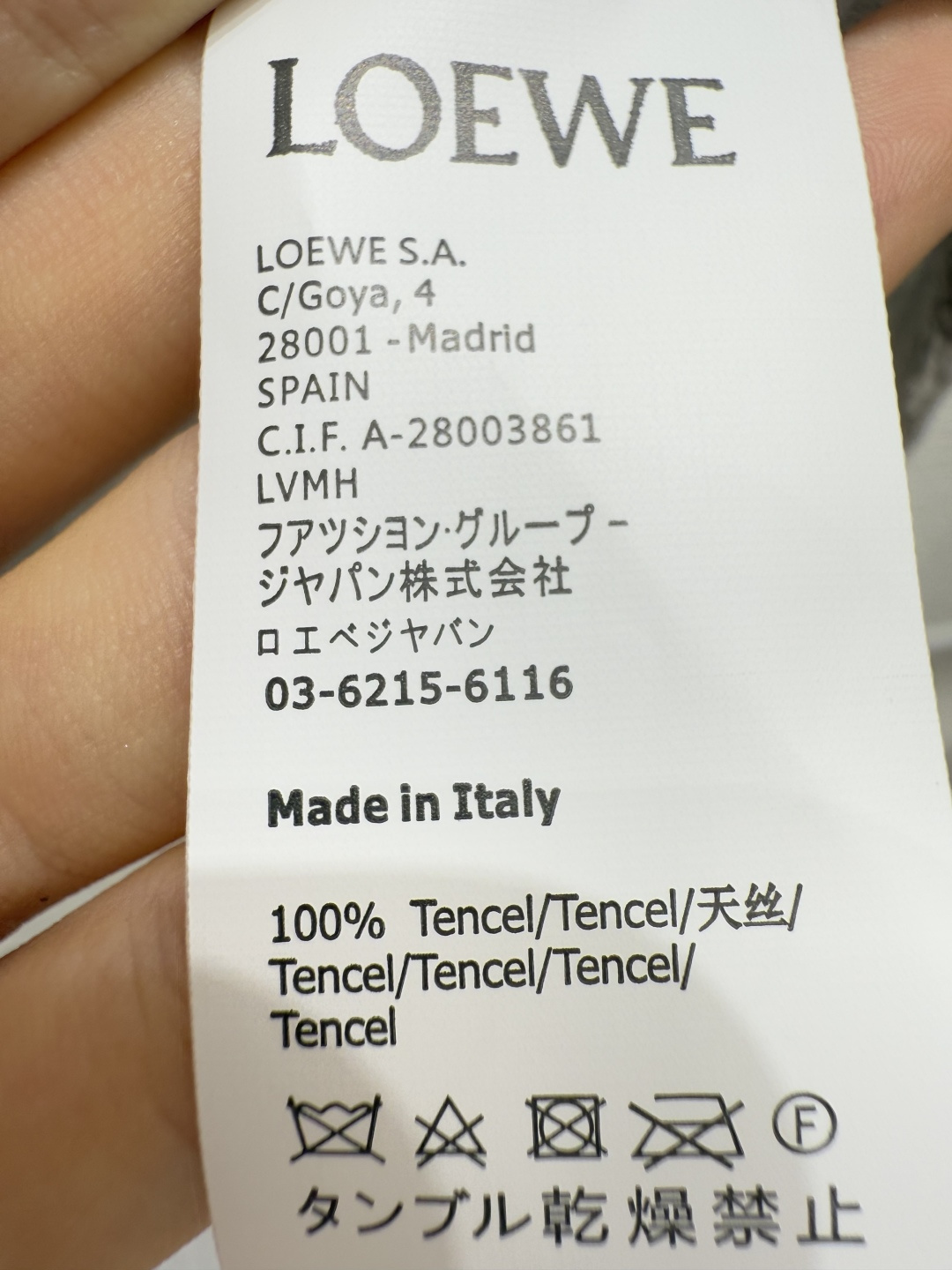 这款衣服是AAAAA 1:1 质量 (非常棒). 使用了和原版一模一样的材料. 商标部分也保持了和罗意威/Loewe一样. 图片拍摄是实物衣服拍摄, 您所收到的实物保证和我们图片一模一样.
