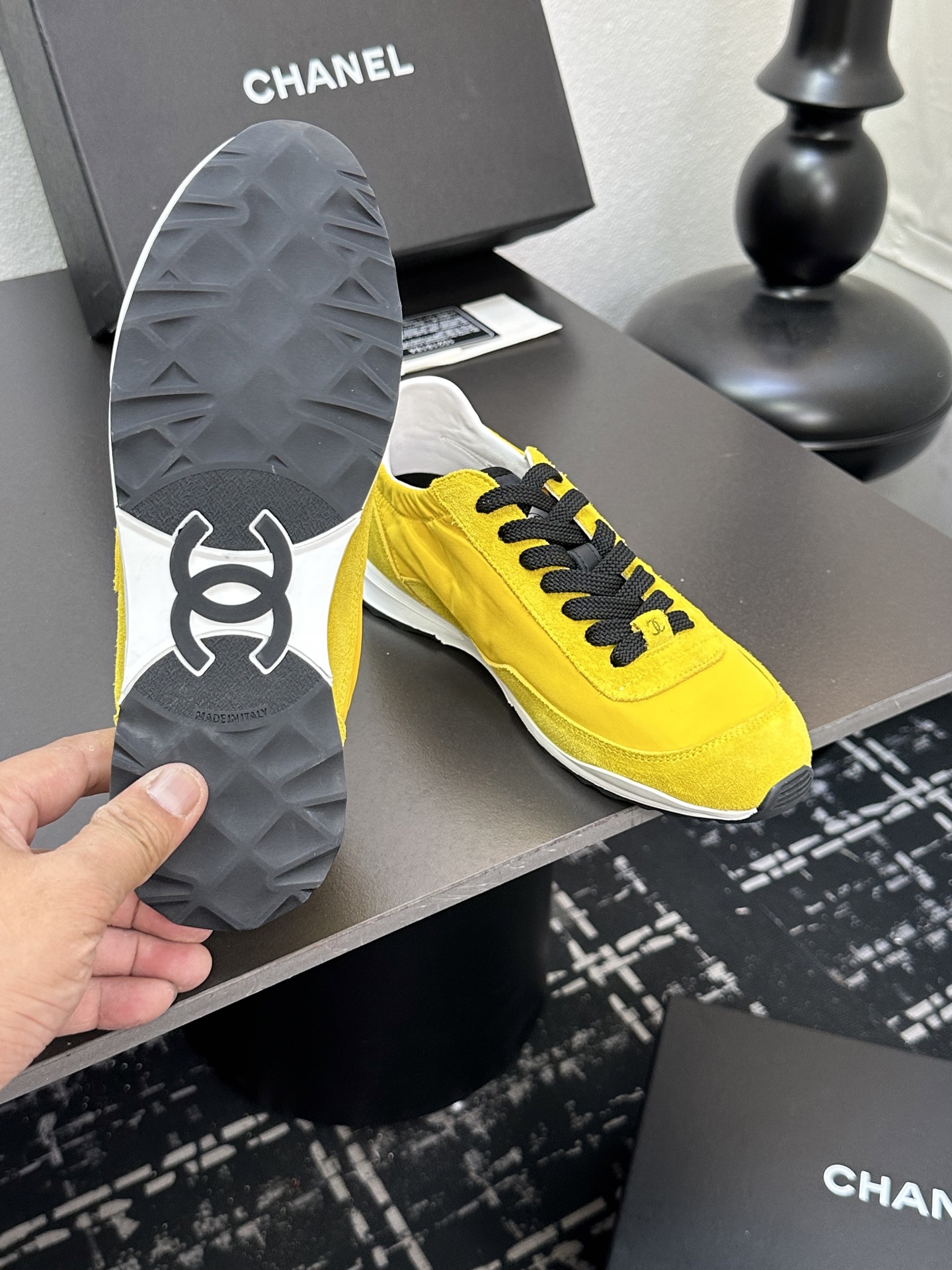 这款鞋子是AAAAA 1:1 质量 (非常棒). 使用了和原版一模一样的材料. 商标部分也保持了和香奈儿/Chanel一样. 图片拍摄是实物鞋子拍摄, 您所收到的实物保证和我们图片一模一样.