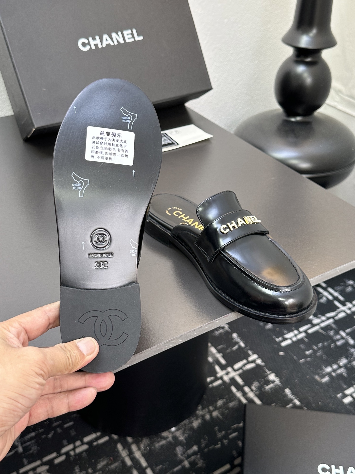 这款鞋子是AAAAA 1:1 质量 (非常棒). 使用了和原版一模一样的材料. 商标部分也保持了和香奈儿/Chanel一样. 图片拍摄是实物鞋子拍摄, 您所收到的实物保证和我们图片一模一样.