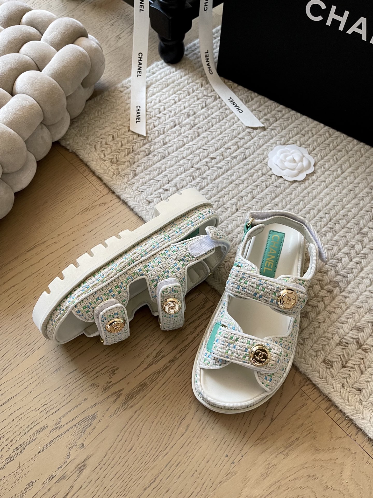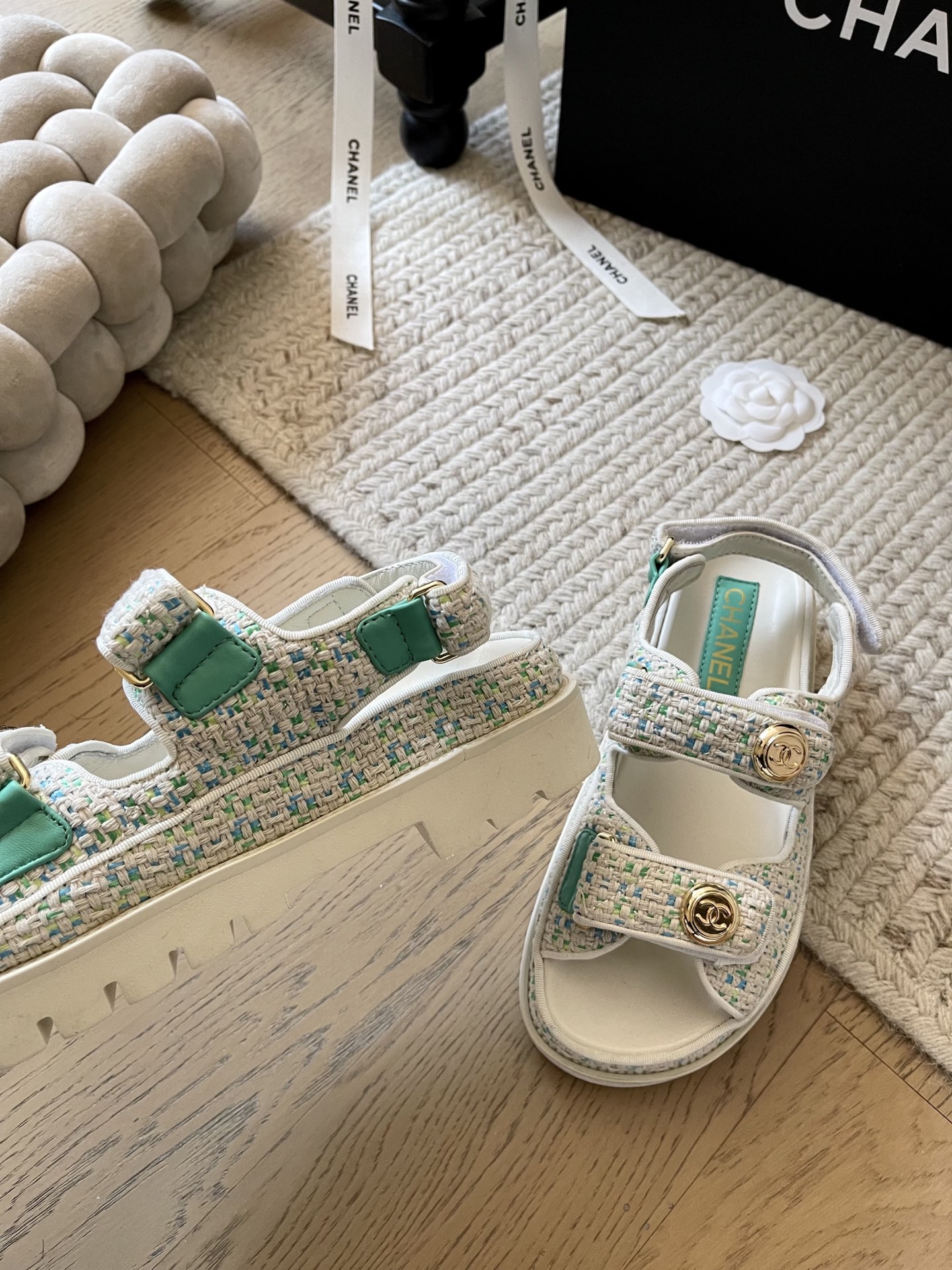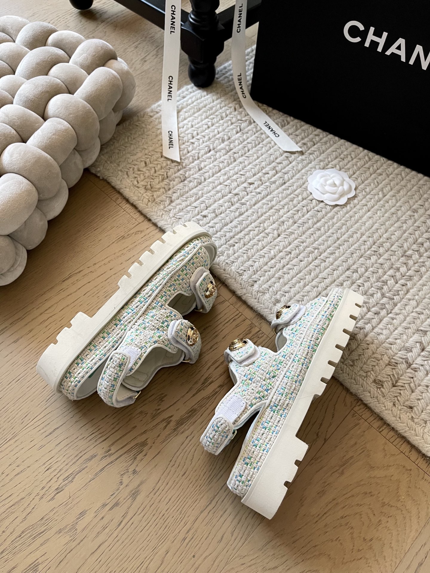 这款鞋子是AAAAA 1:1 质量 (非常棒). 使用了和原版一模一样的材料. 商标部分也保持了和香奈儿/Chanel一样. 图片拍摄是实物鞋子拍摄, 您所收到的实物保证和我们图片一模一样.