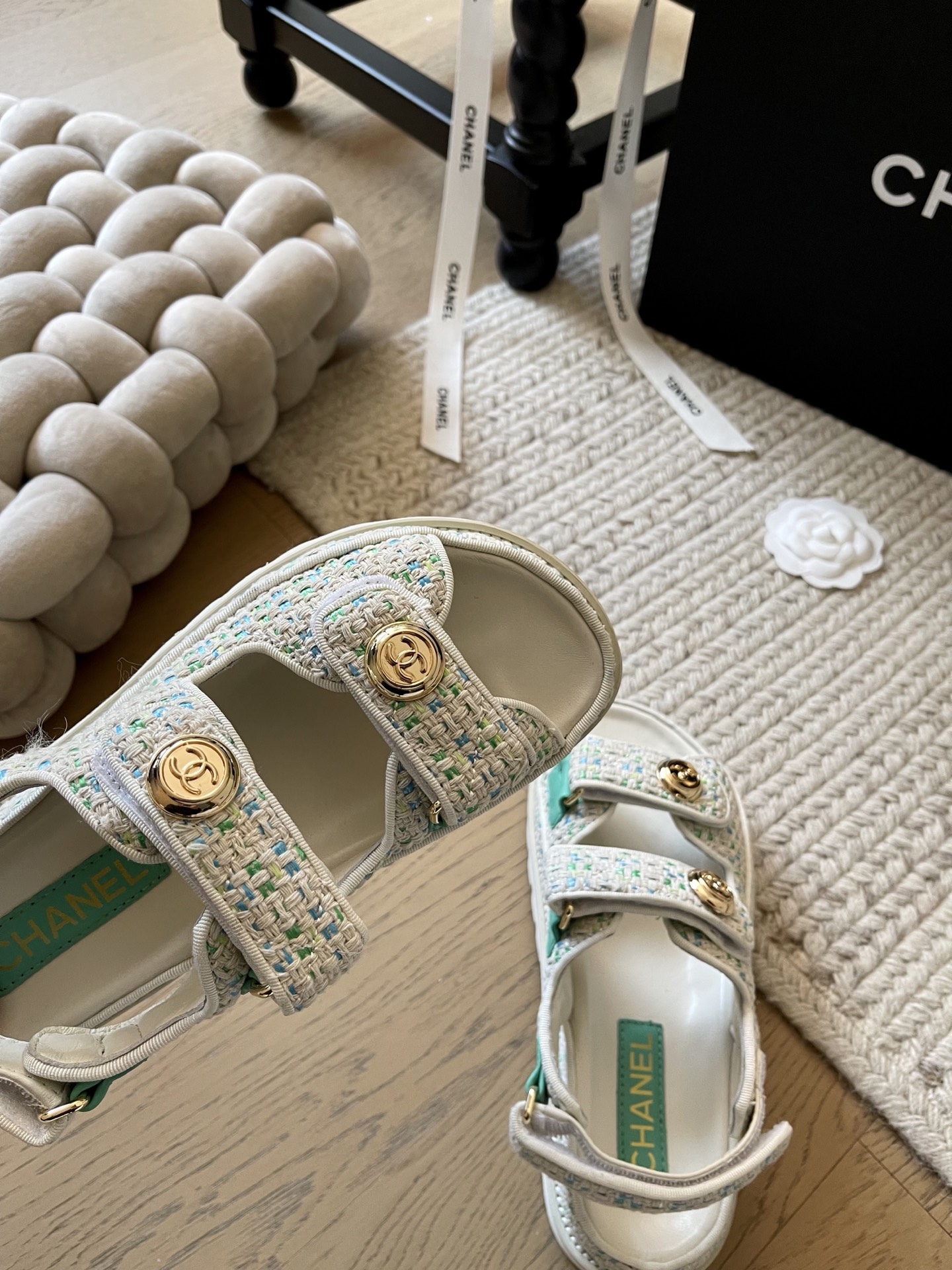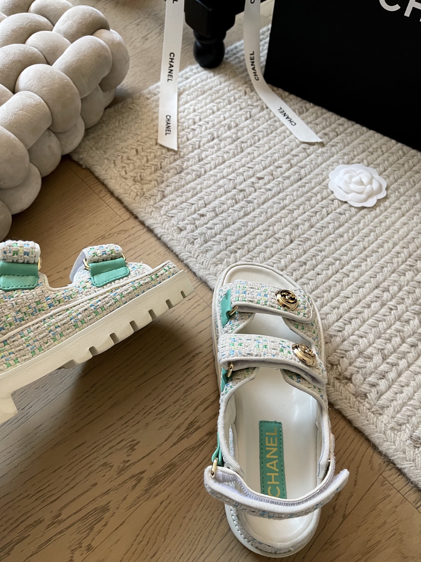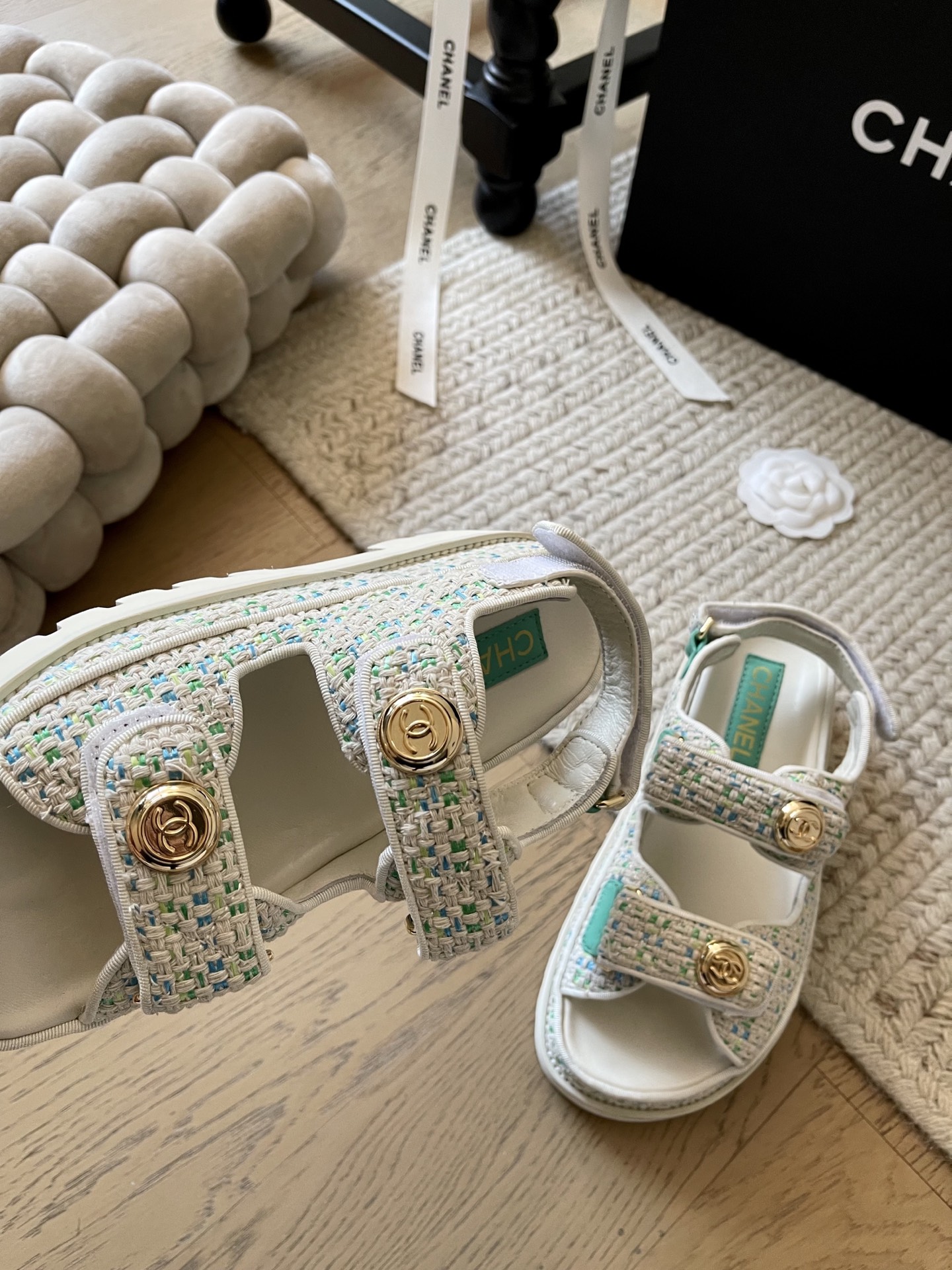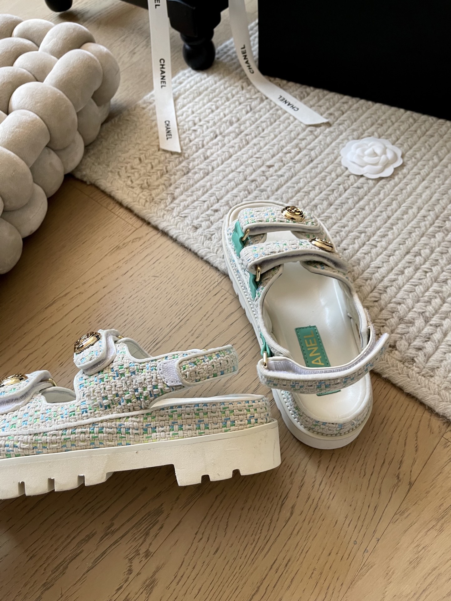 这款鞋子是AAAAA 1:1 质量 (非常棒). 使用了和原版一模一样的材料. 商标部分也保持了和香奈儿/Chanel一样. 图片拍摄是实物鞋子拍摄, 您所收到的实物保证和我们图片一模一样.