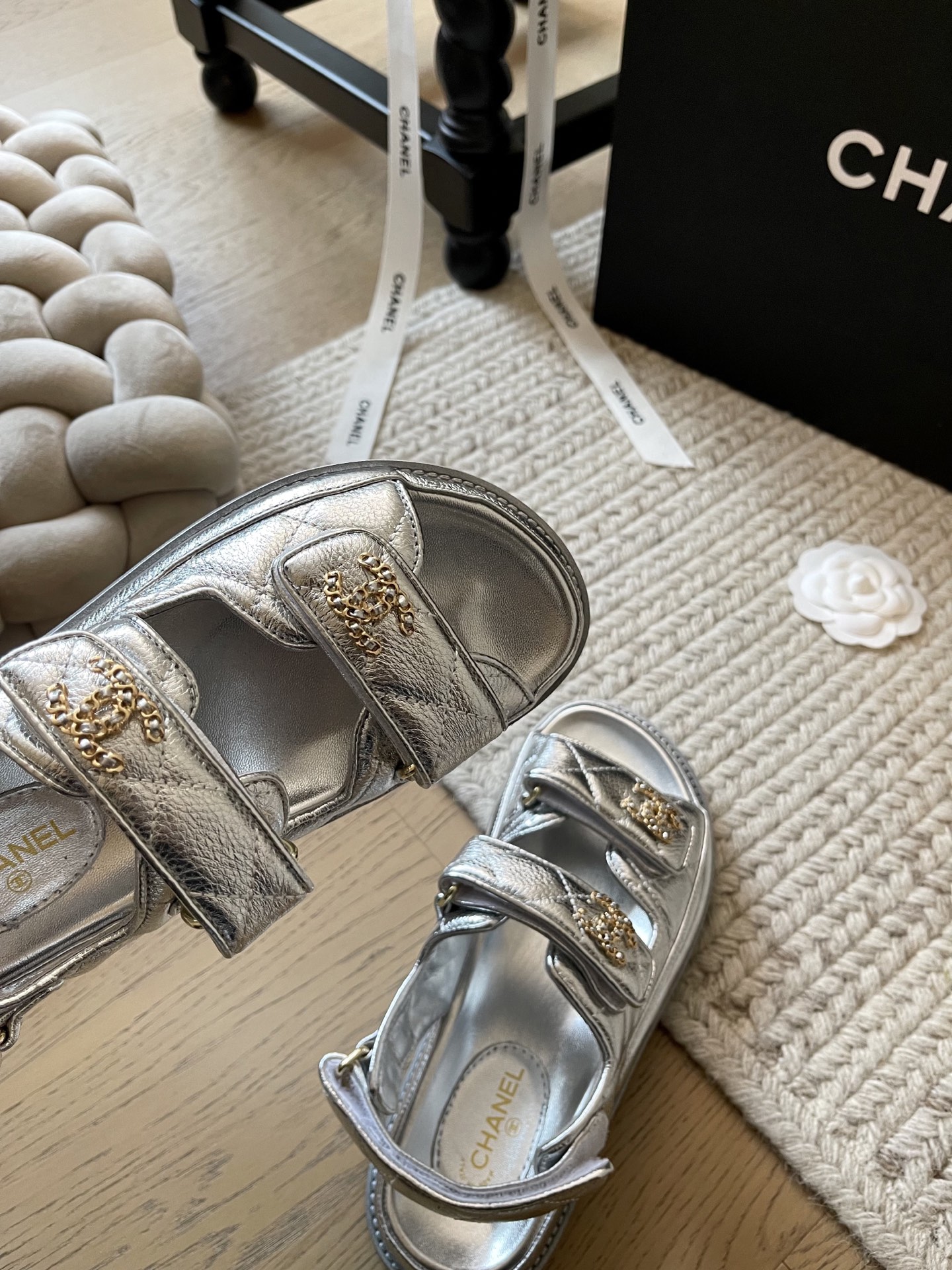 这款鞋子是AAAAA 1:1 质量 (非常棒). 使用了和原版一模一样的材料. 商标部分也保持了和香奈儿/Chanel一样. 图片拍摄是实物鞋子拍摄, 您所收到的实物保证和我们图片一模一样.