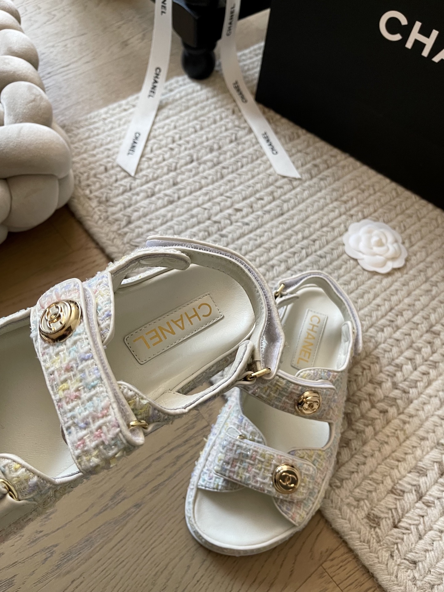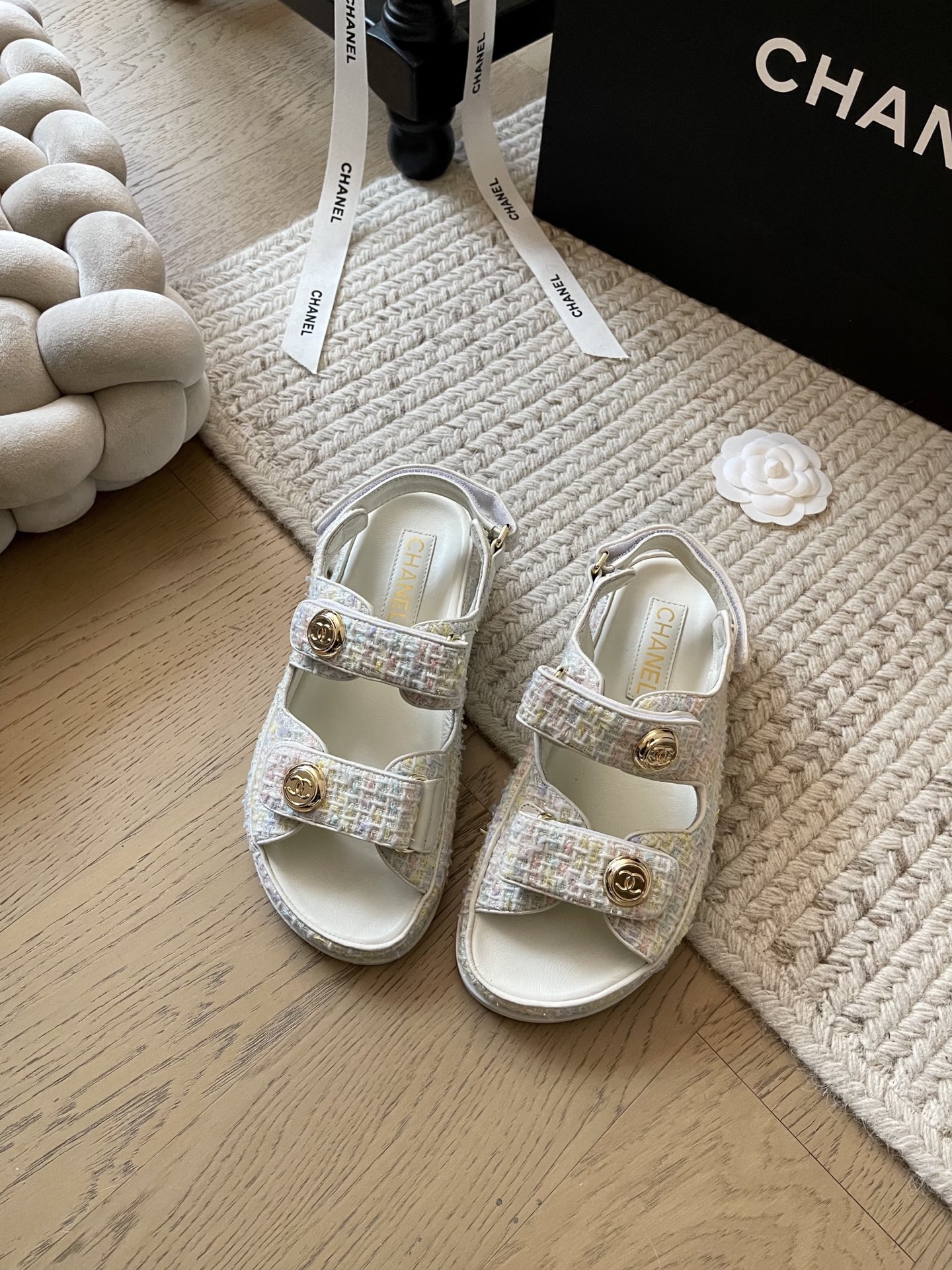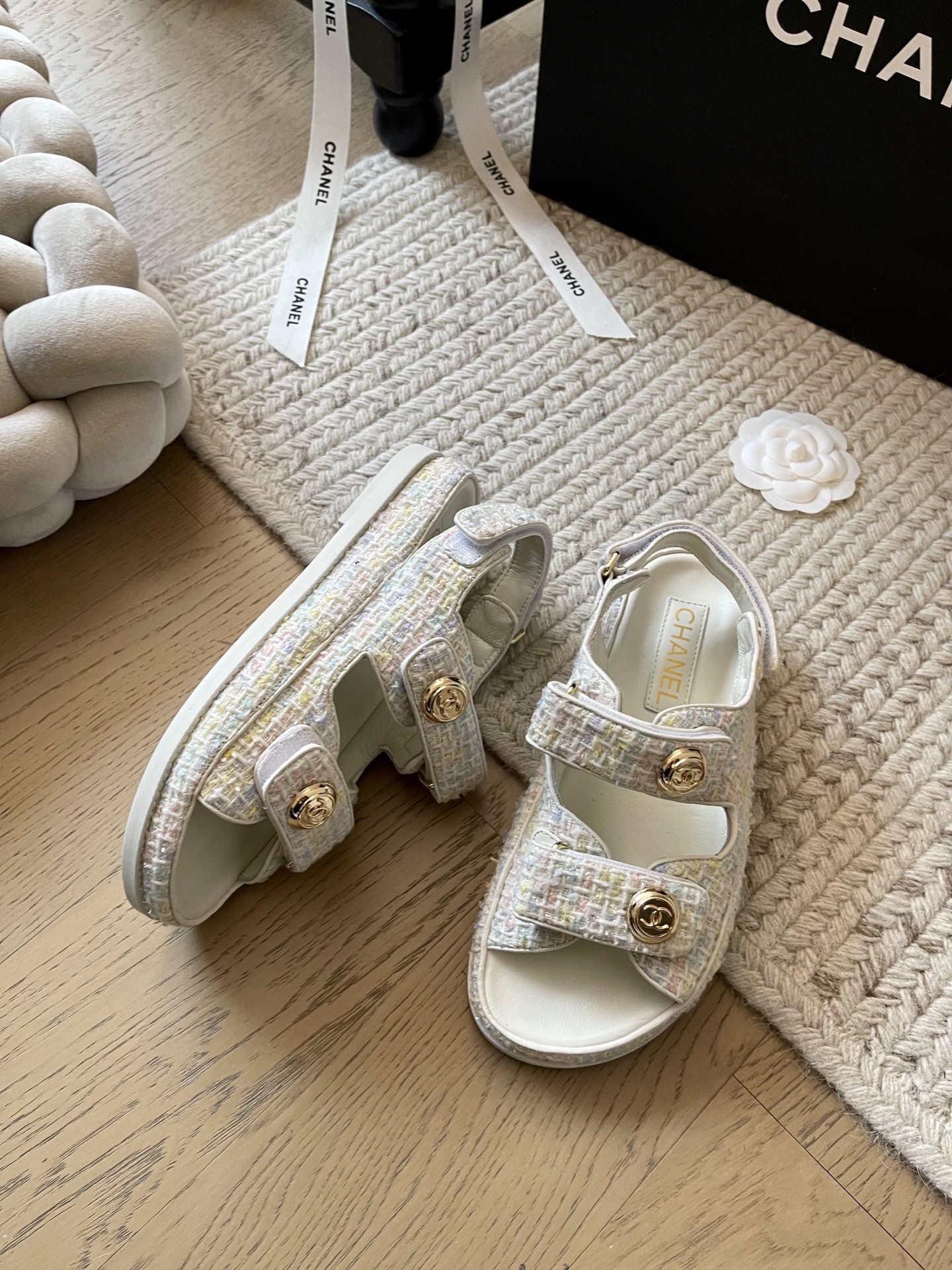 这款鞋子是AAAAA 1:1 质量 (非常棒). 使用了和原版一模一样的材料. 商标部分也保持了和香奈儿/Chanel一样. 图片拍摄是实物鞋子拍摄, 您所收到的实物保证和我们图片一模一样.