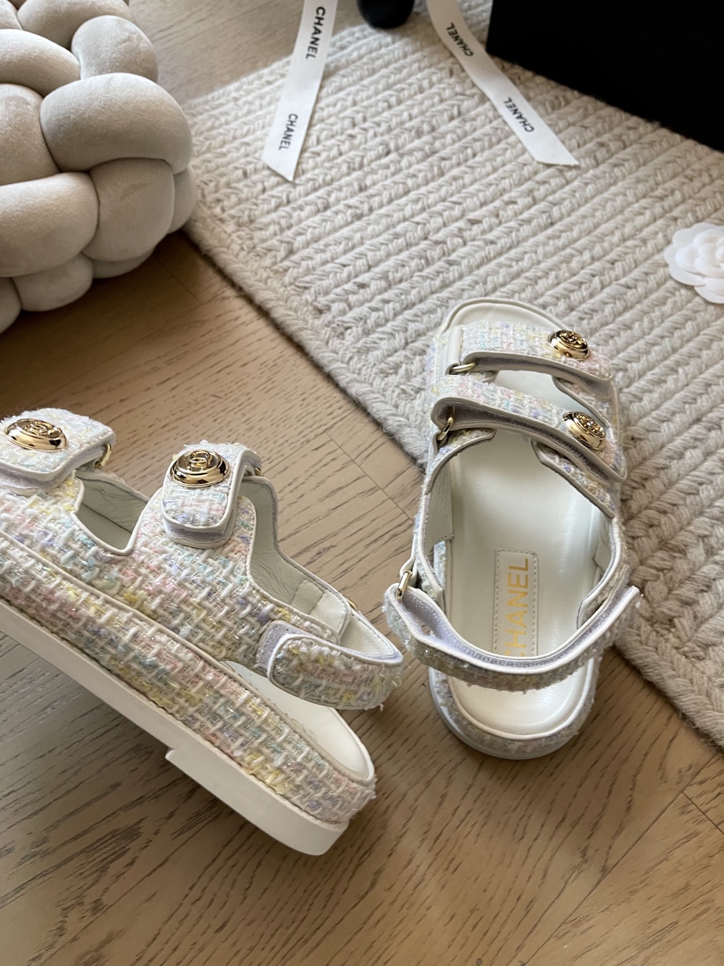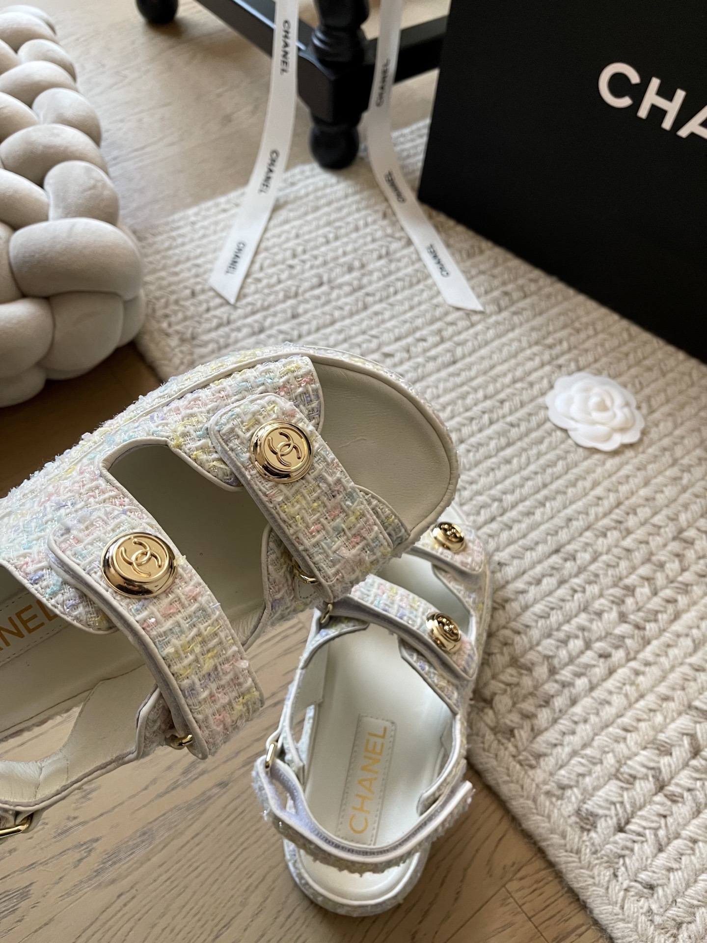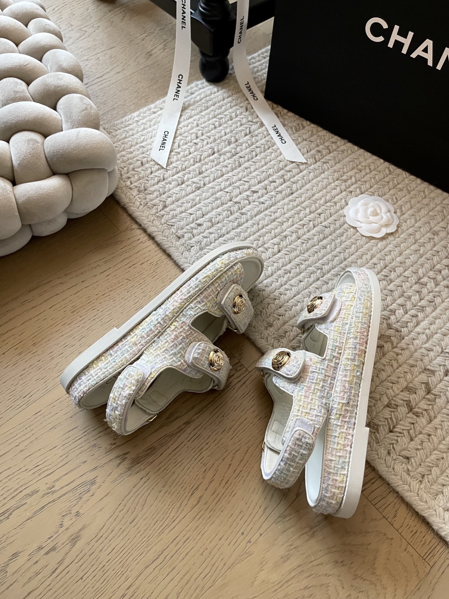 这款鞋子是AAAAA 1:1 质量 (非常棒). 使用了和原版一模一样的材料. 商标部分也保持了和香奈儿/Chanel一样. 图片拍摄是实物鞋子拍摄, 您所收到的实物保证和我们图片一模一样.