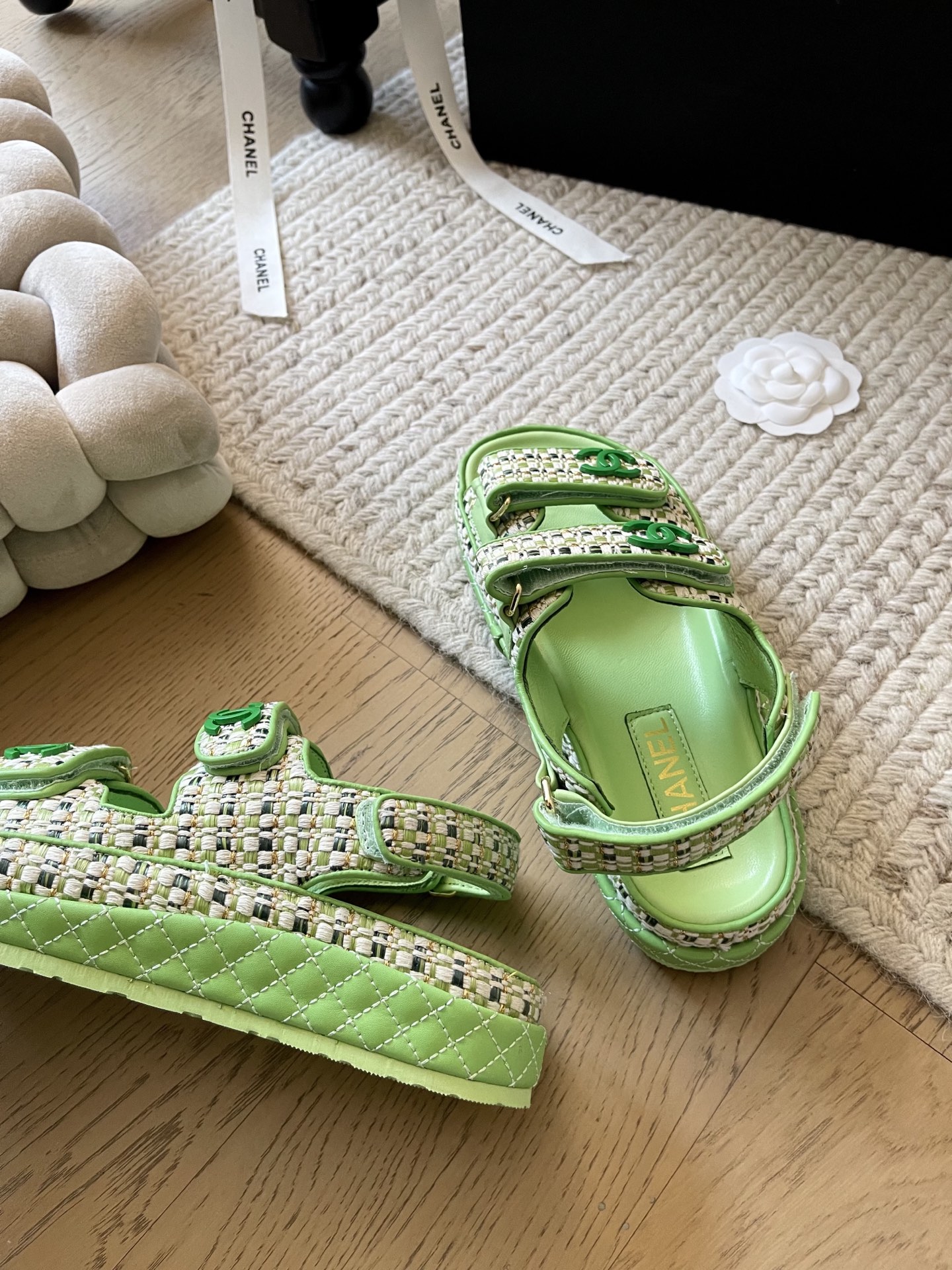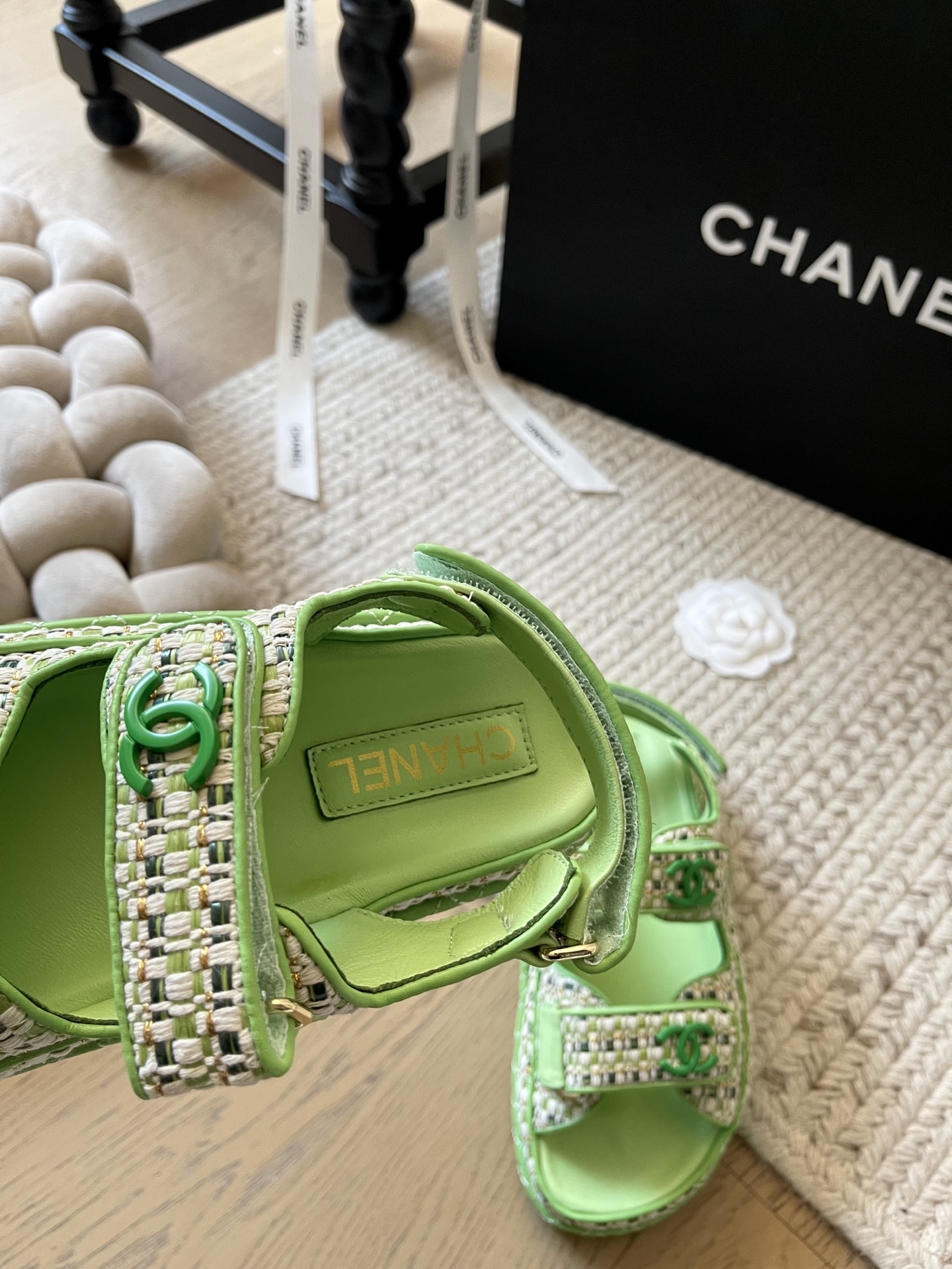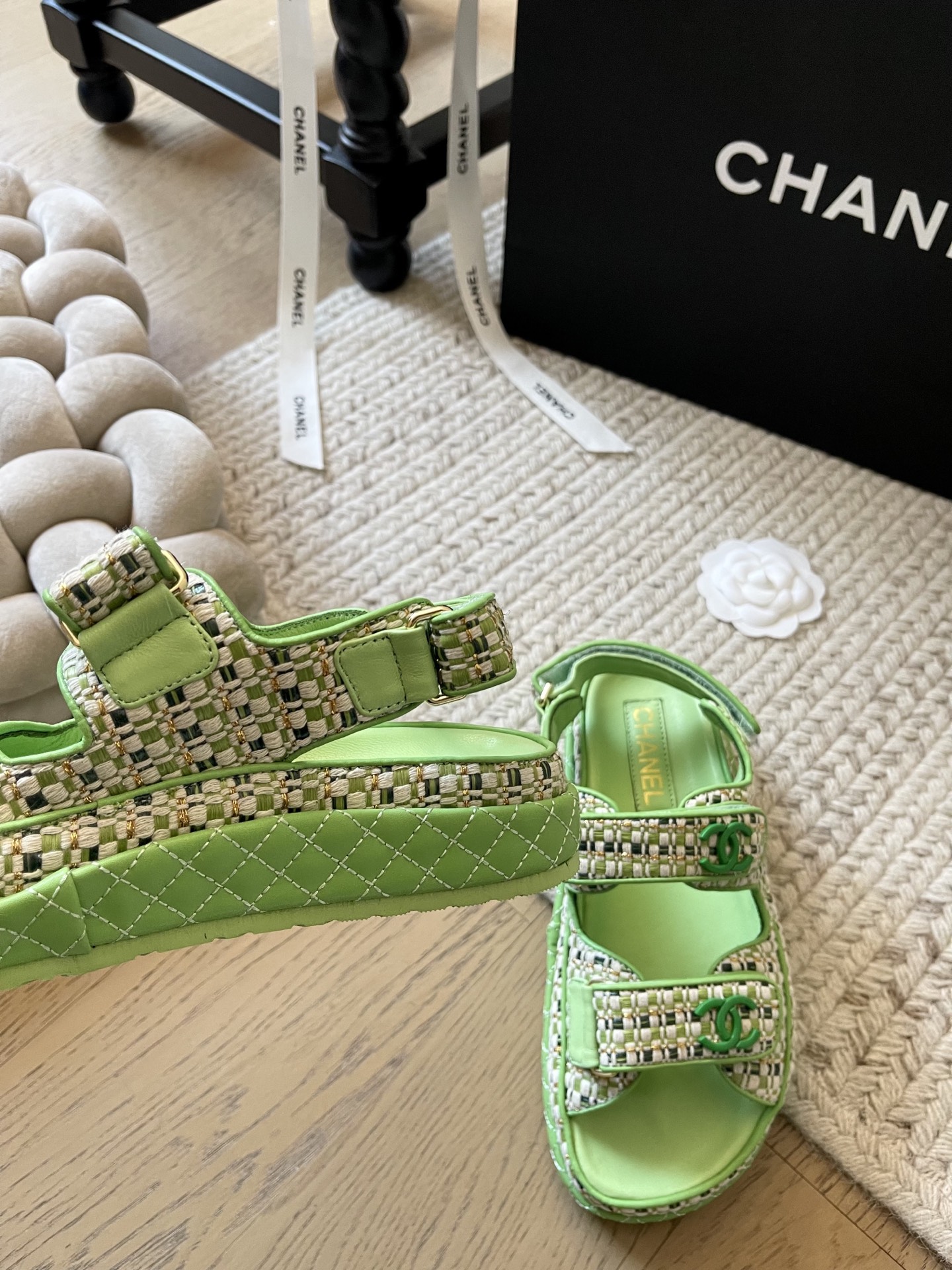 这款鞋子是AAAAA 1:1 质量 (非常棒). 使用了和原版一模一样的材料. 商标部分也保持了和香奈儿/Chanel一样. 图片拍摄是实物鞋子拍摄, 您所收到的实物保证和我们图片一模一样.