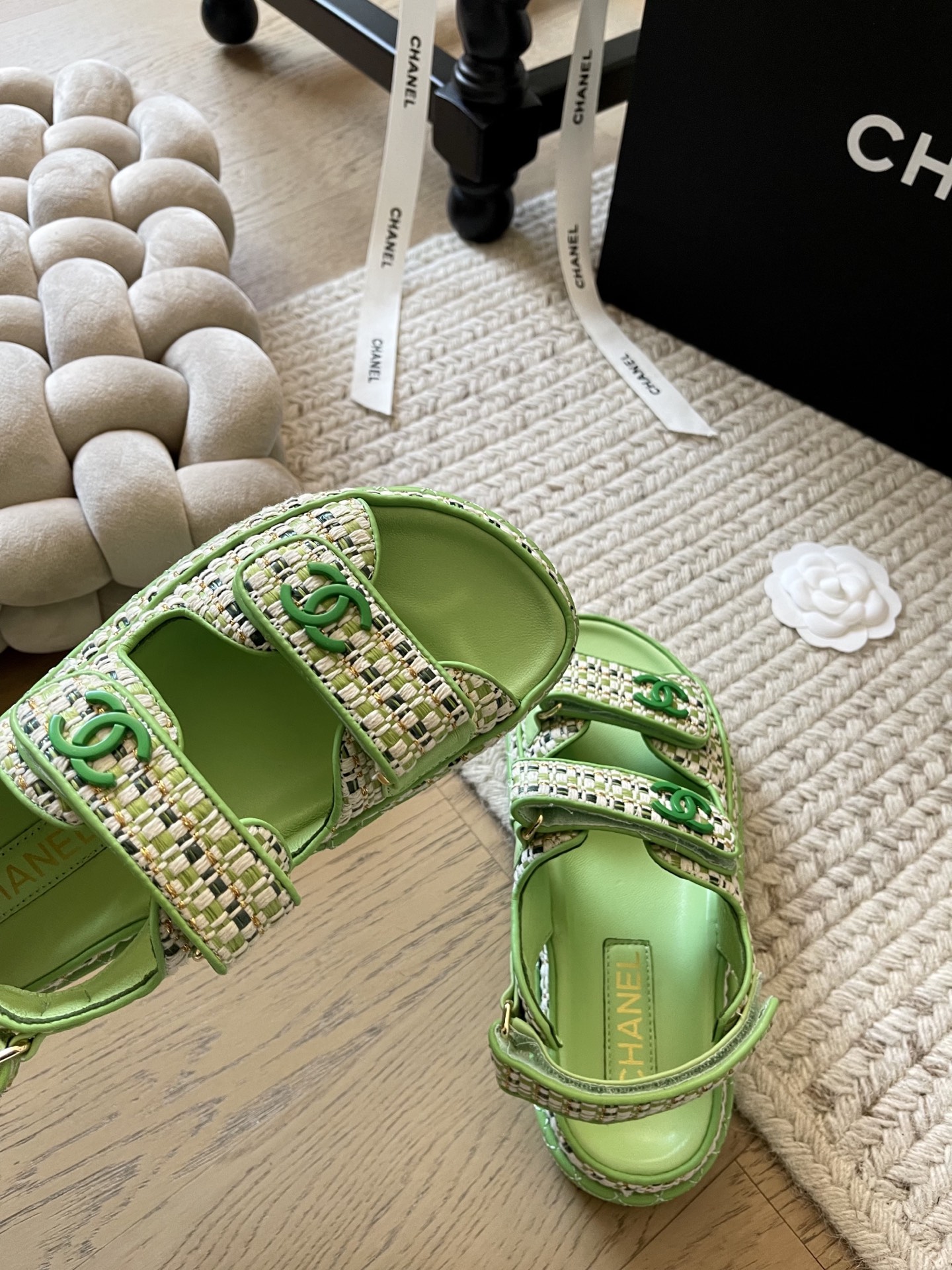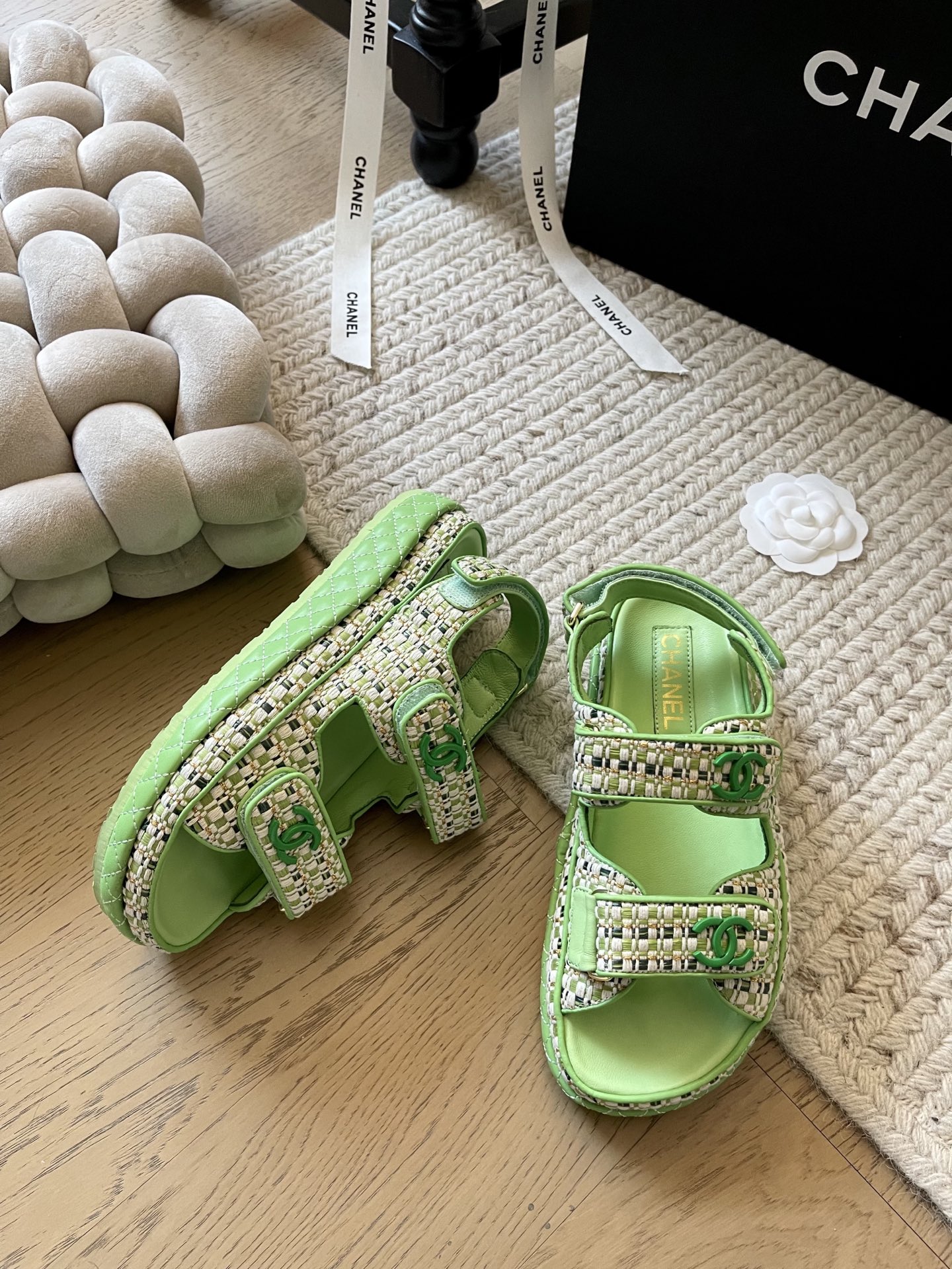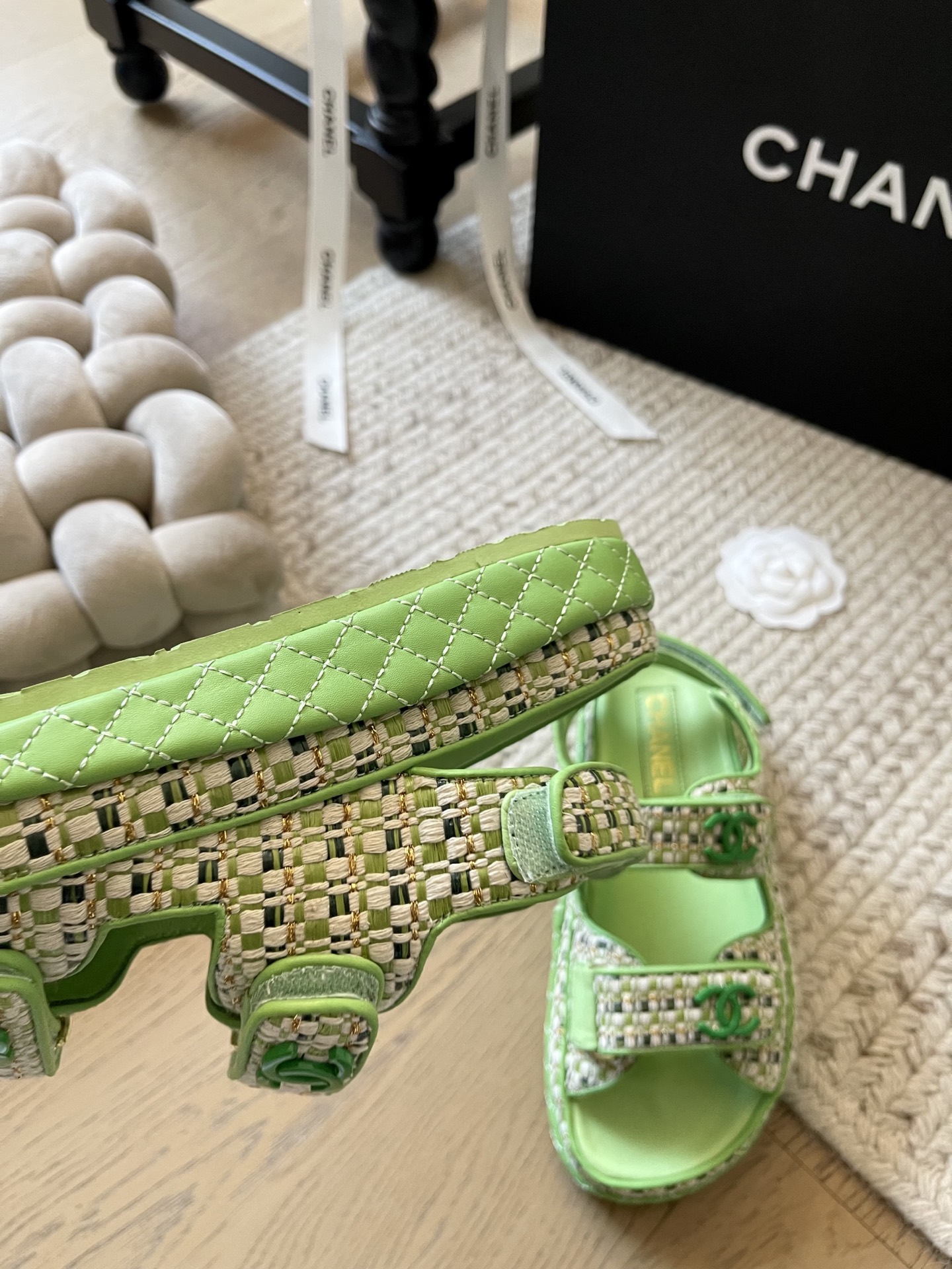 这款鞋子是AAAAA 1:1 质量 (非常棒). 使用了和原版一模一样的材料. 商标部分也保持了和香奈儿/Chanel一样. 图片拍摄是实物鞋子拍摄, 您所收到的实物保证和我们图片一模一样.