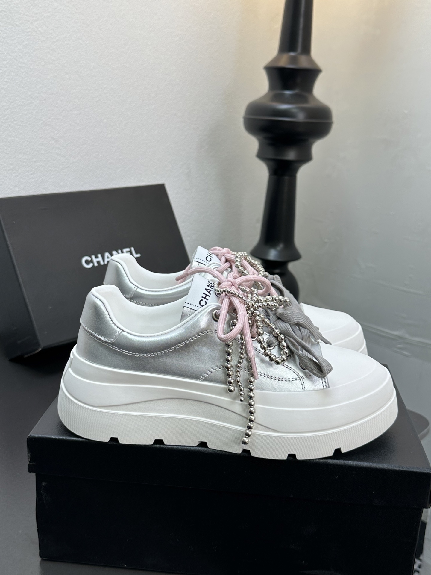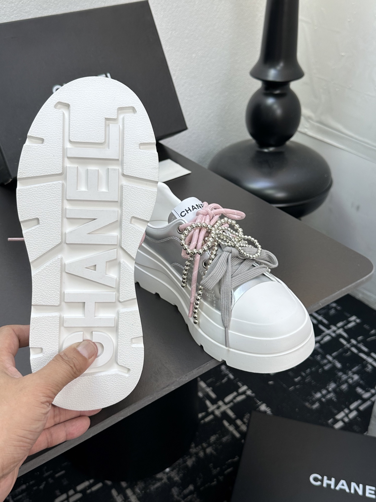 这款鞋子是AAAAA 1:1 质量 (非常棒). 使用了和原版一模一样的材料. 商标部分也保持了和香奈儿/Chanel一样. 图片拍摄是实物鞋子拍摄, 您所收到的实物保证和我们图片一模一样.