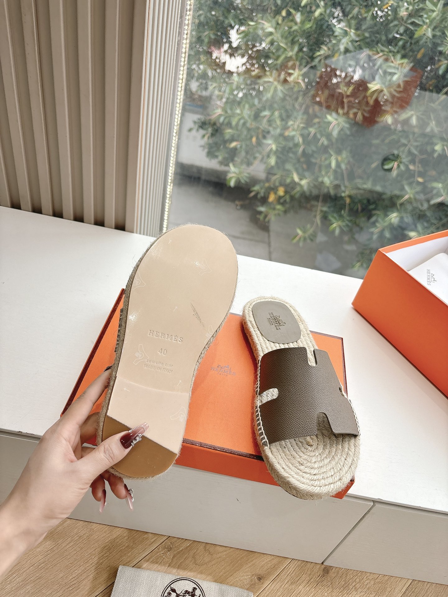 这款鞋子是AAAAA 1:1 质量 (非常棒). 使用了和原版一模一样的材料. 商标部分也保持了和爱马仕/Hermes一样. 图片拍摄是实物鞋子拍摄, 您所收到的实物保证和我们图片一模一样.