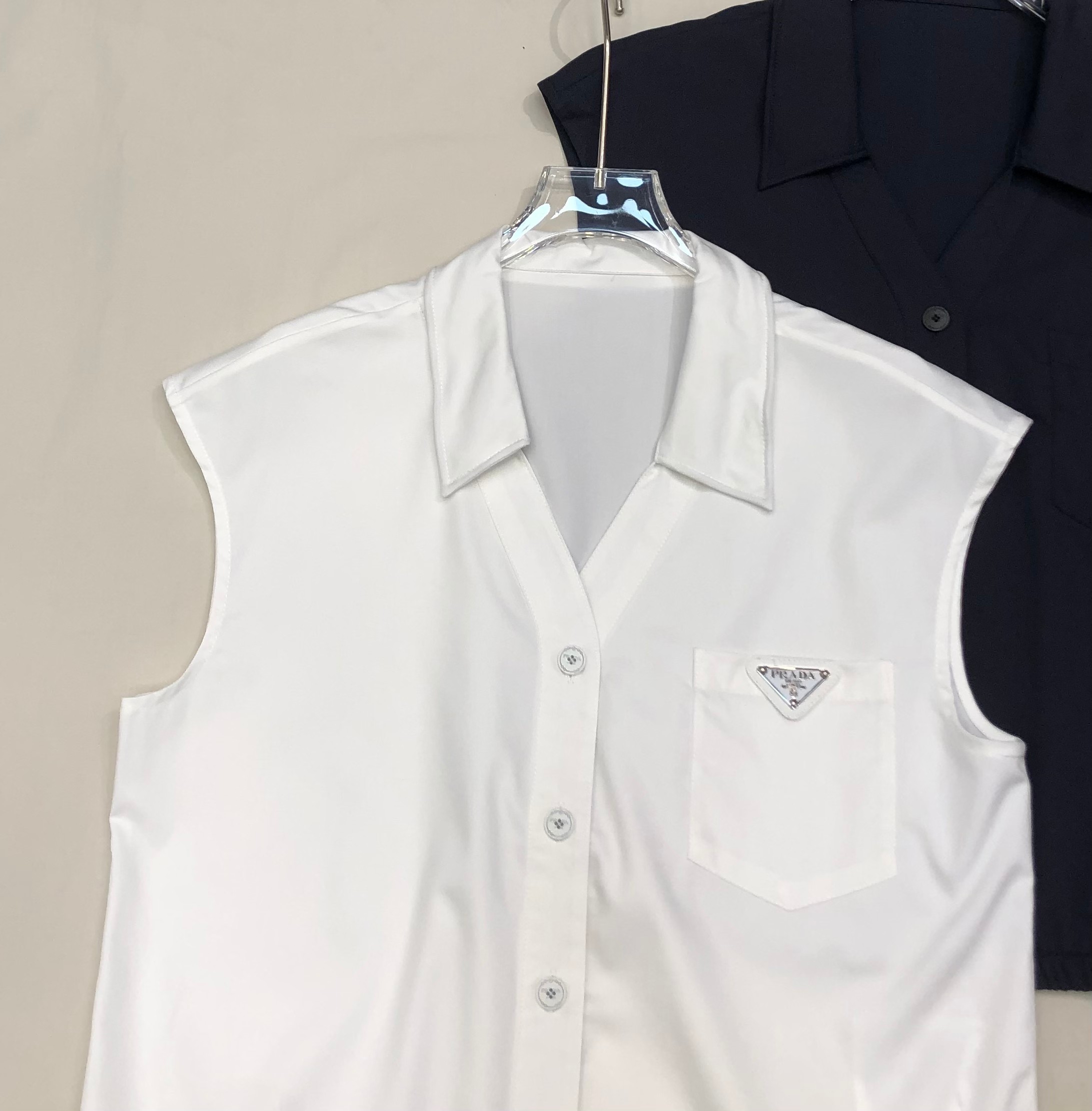 这款衣服是AAAAA 1:1 质量 (非常棒). 使用了和原版一模一样的材料. 商标部分也保持了和普拉达/Prada一样. 图片拍摄是实物衣服拍摄, 您所收到的实物保证和我们图片一模一样.