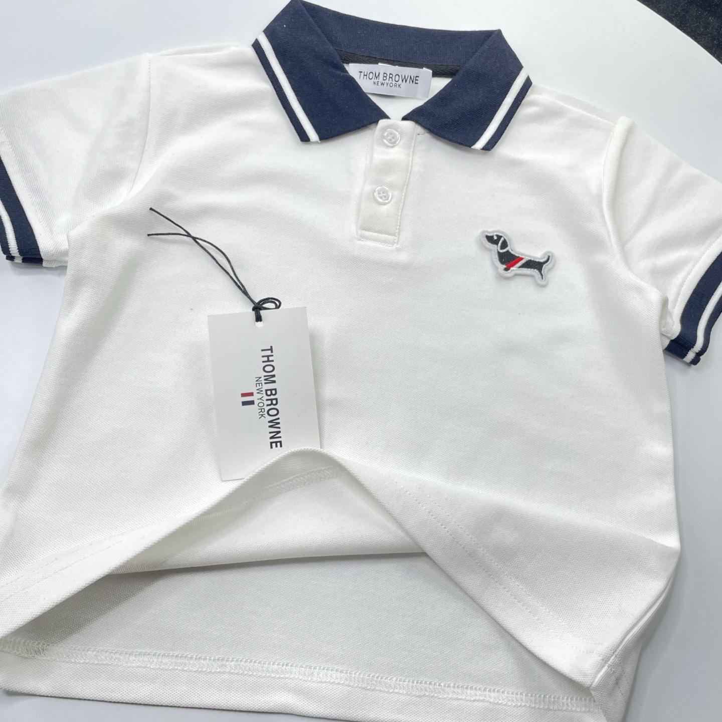 这款children's clothes是AAAAA 1:1 质量 (非常棒). 使用了和原版一模一样的材料. 商标部分也保持了和汤姆布朗/Thom Browne一样. 图片拍摄是实物children's clothes拍摄, 您所收到的实物保证和我们图片一模一样.