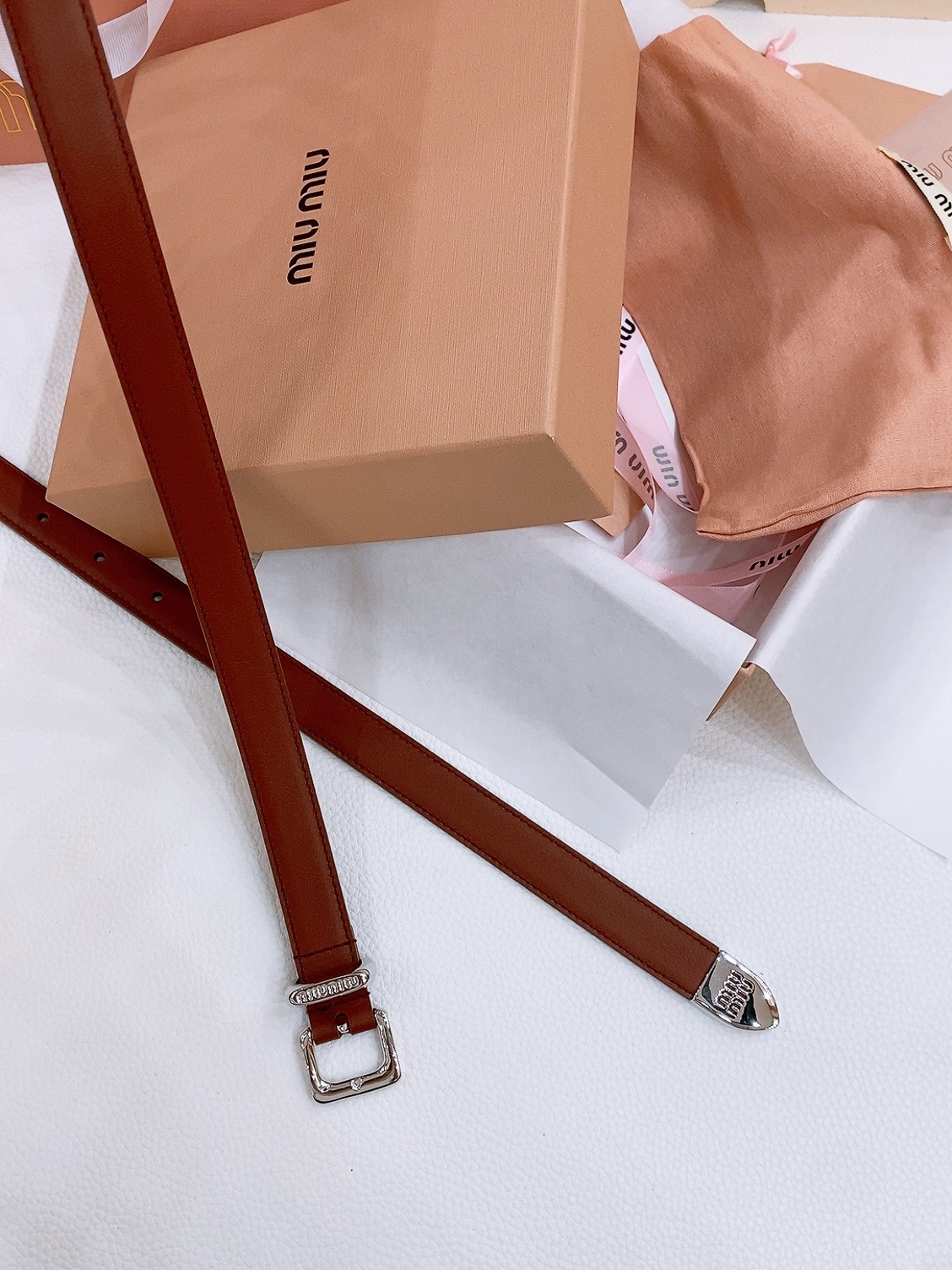 这款皮带是AAAAA 1:1 质量 (非常棒). 使用了和原版一模一样的材料. 商标部分也保持了和缪缪/Miu Miu一样. 图片拍摄是实物皮带拍摄, 您所收到的实物保证和我们图片一模一样.