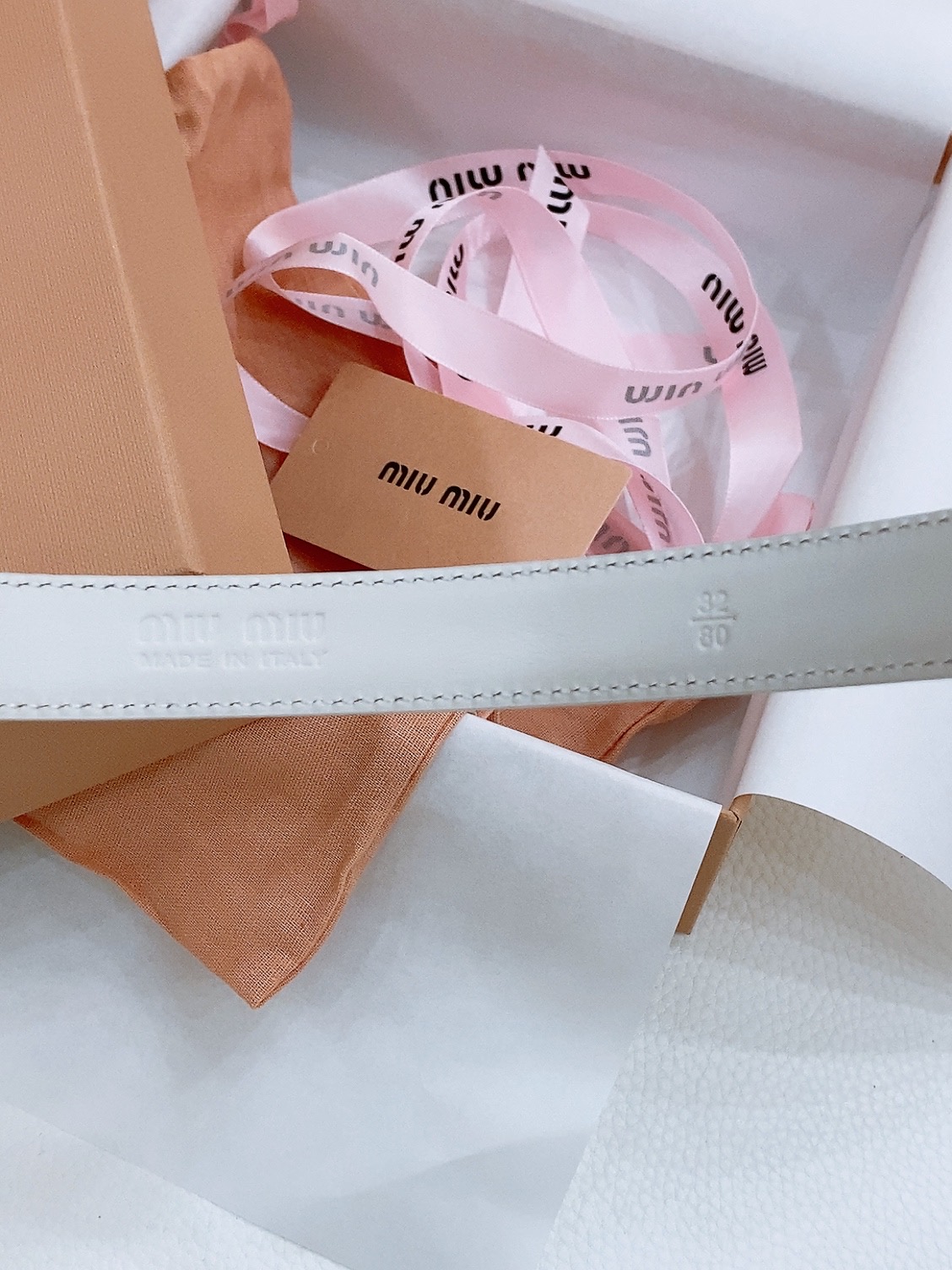 这款皮带是AAAAA 1:1 质量 (非常棒). 使用了和原版一模一样的材料. 商标部分也保持了和缪缪/Miu Miu一样. 图片拍摄是实物皮带拍摄, 您所收到的实物保证和我们图片一模一样.