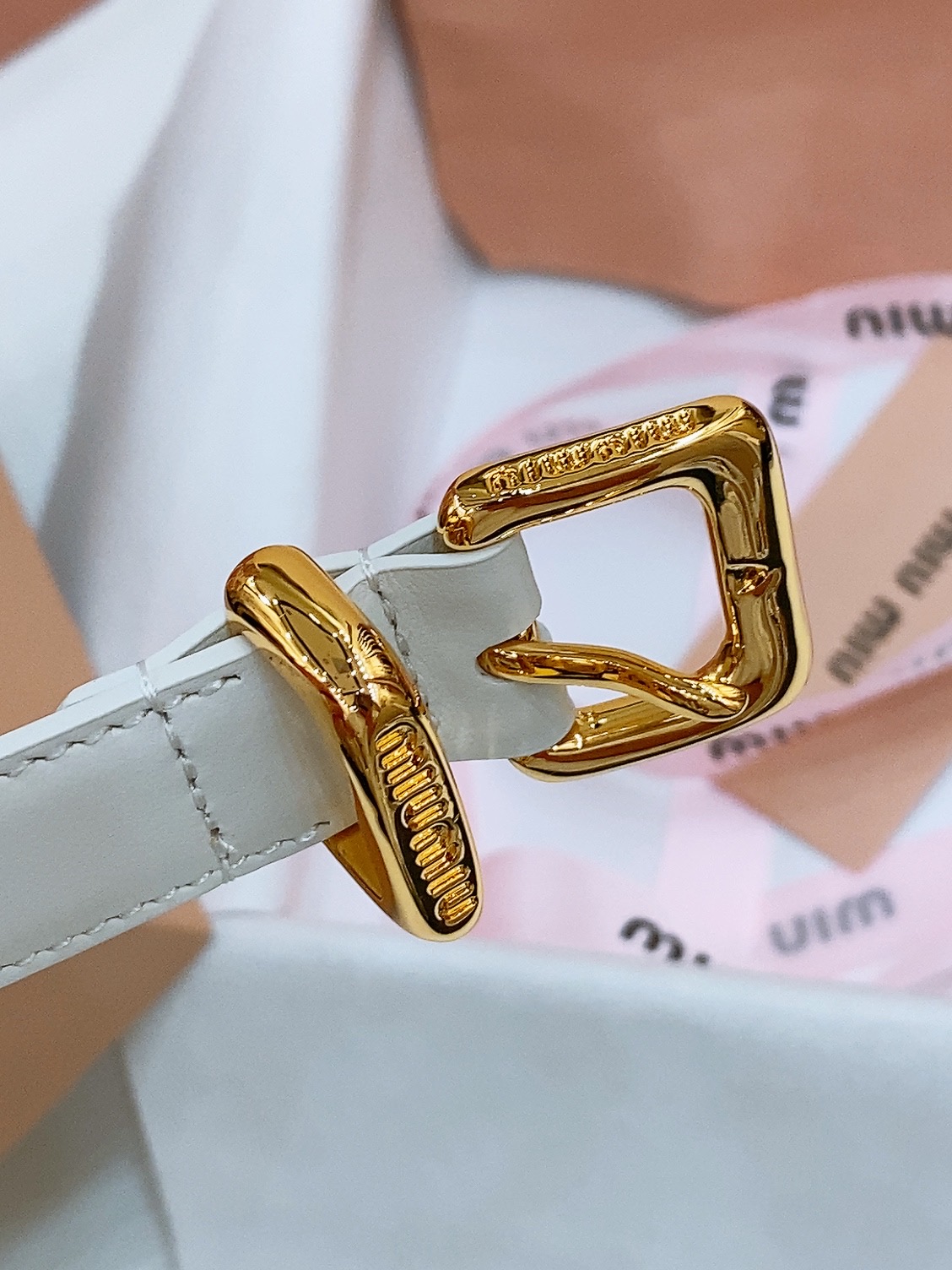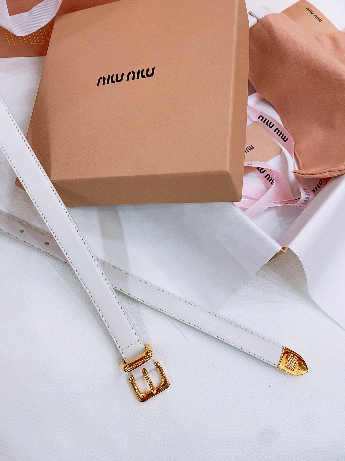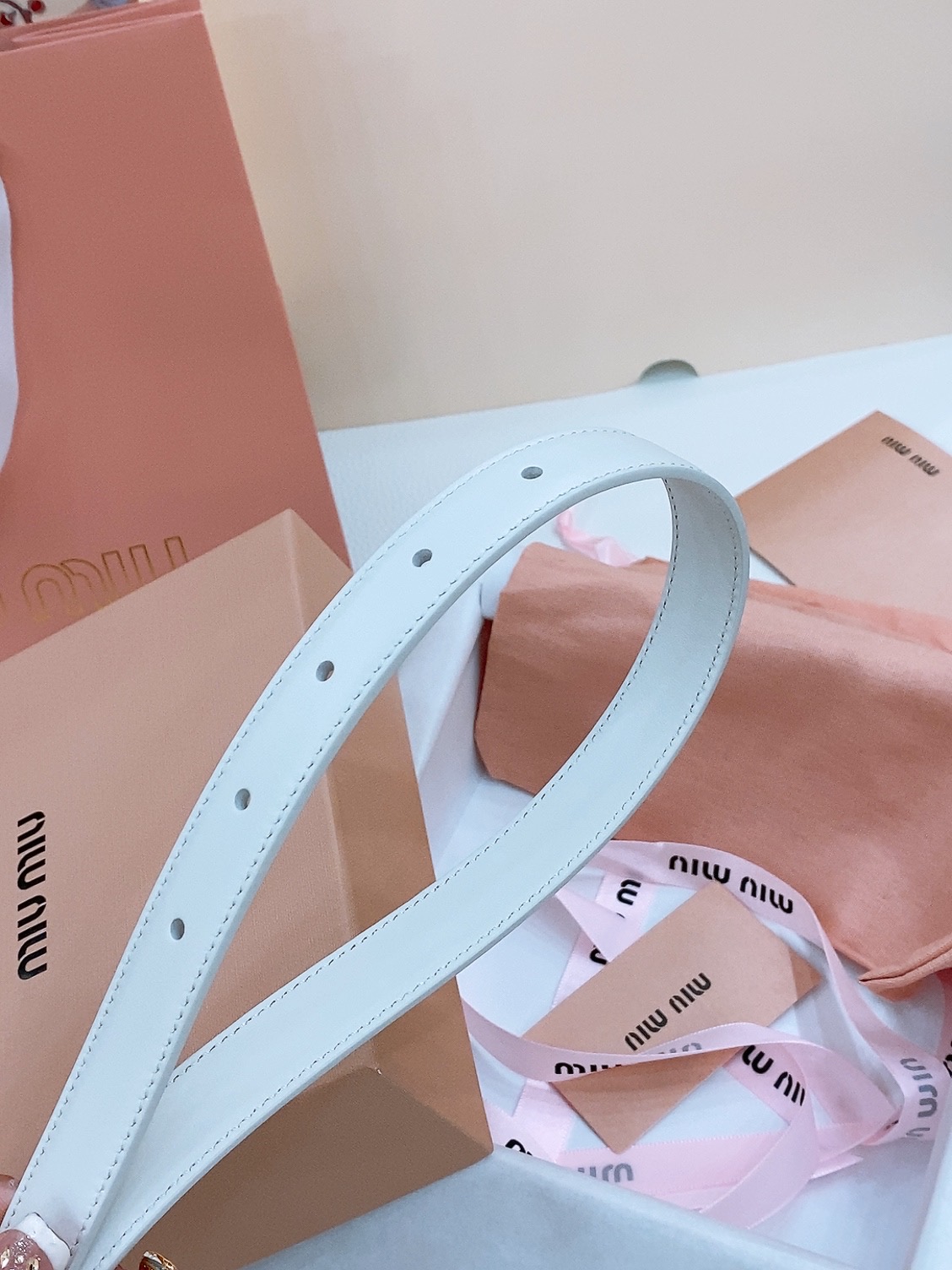 这款皮带是AAAAA 1:1 质量 (非常棒). 使用了和原版一模一样的材料. 商标部分也保持了和缪缪/Miu Miu一样. 图片拍摄是实物皮带拍摄, 您所收到的实物保证和我们图片一模一样.