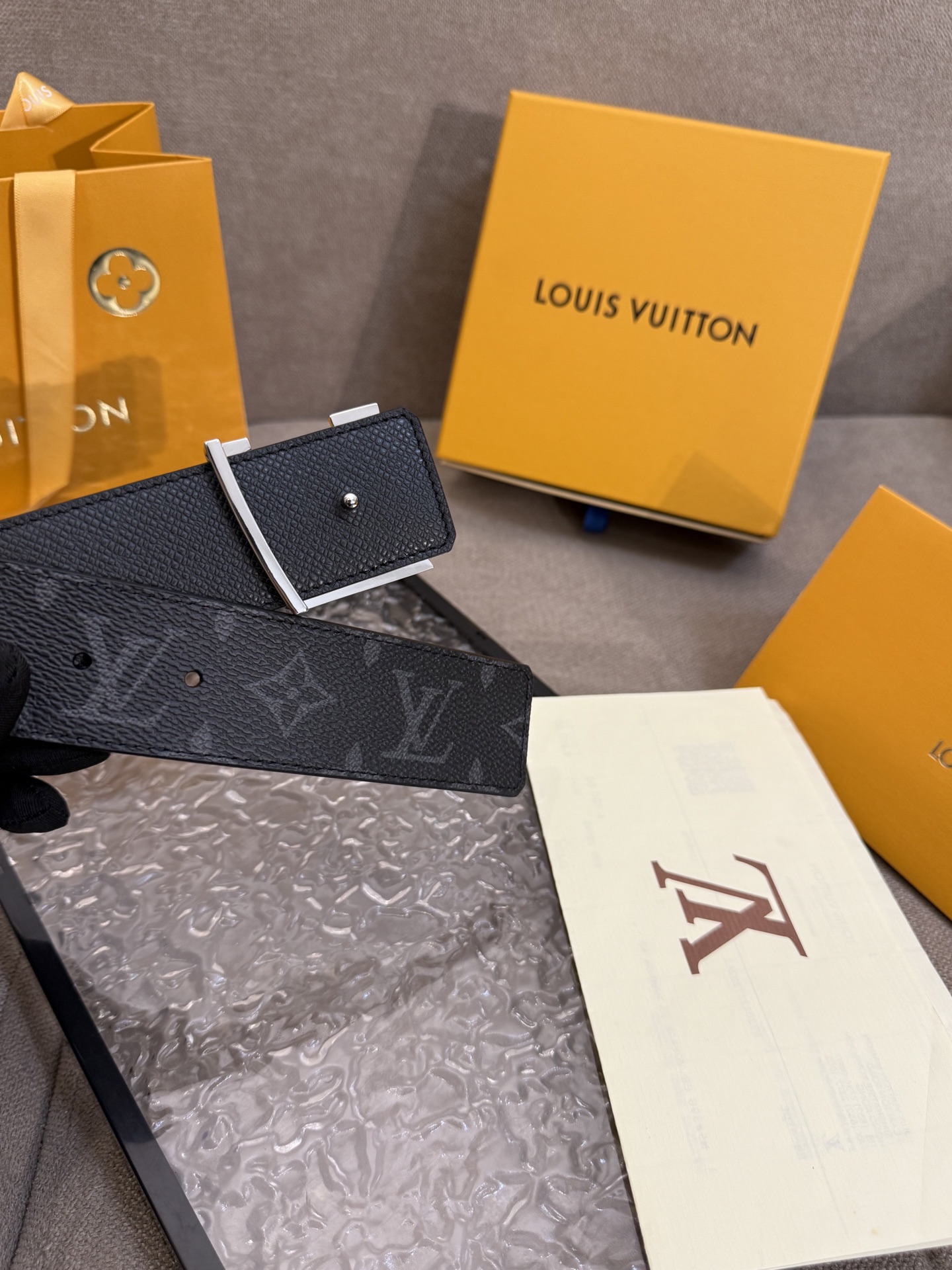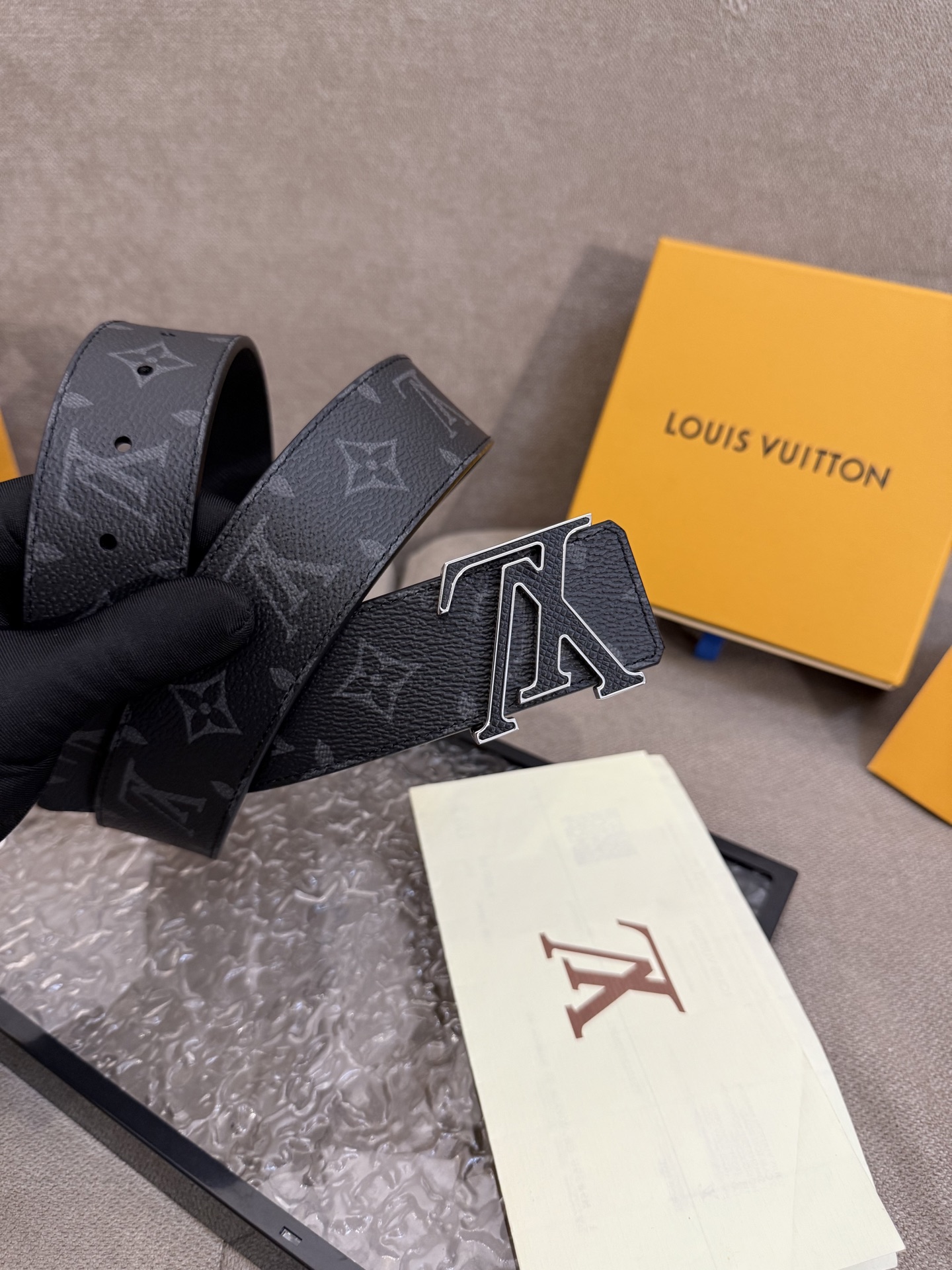 这款皮带是AAAAA 1:1 质量 (非常棒). 使用了和原版一模一样的材料. 商标部分也保持了和路易威登/Louis Vuitton一样. 图片拍摄是实物皮带拍摄, 您所收到的实物保证和我们图片一模一样.