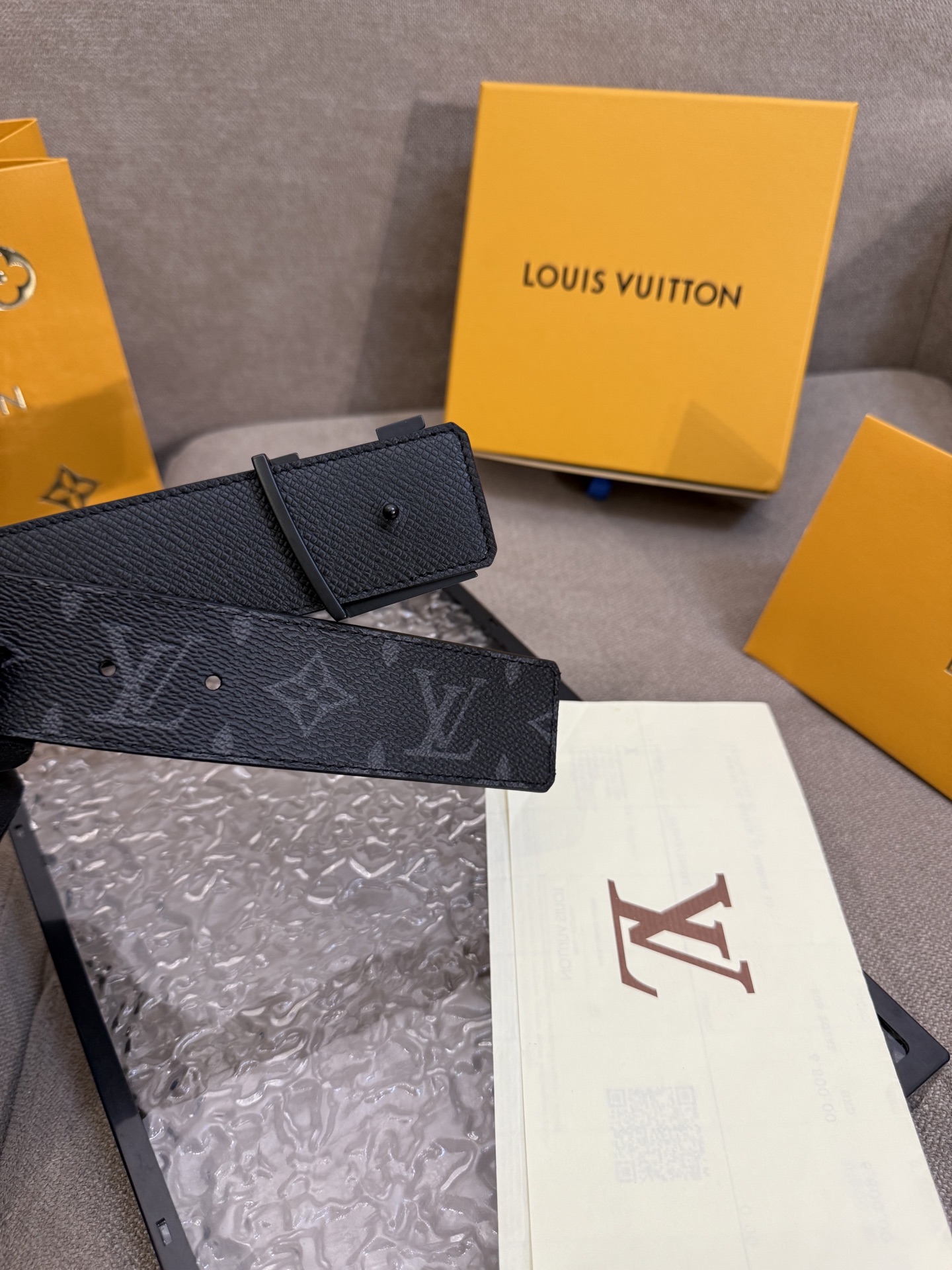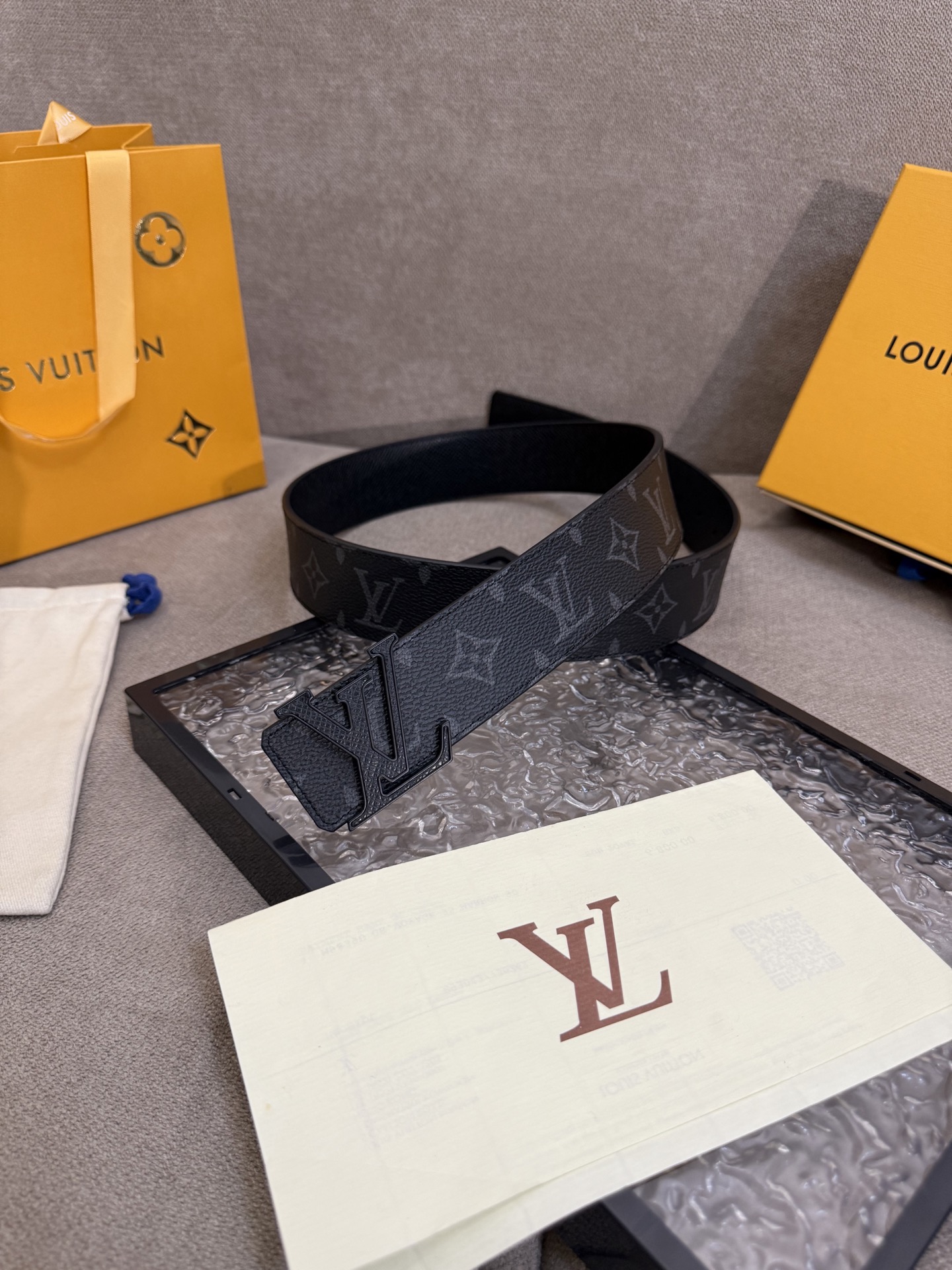 这款皮带是AAAAA 1:1 质量 (非常棒). 使用了和原版一模一样的材料. 商标部分也保持了和路易威登/Louis Vuitton一样. 图片拍摄是实物皮带拍摄, 您所收到的实物保证和我们图片一模一样.