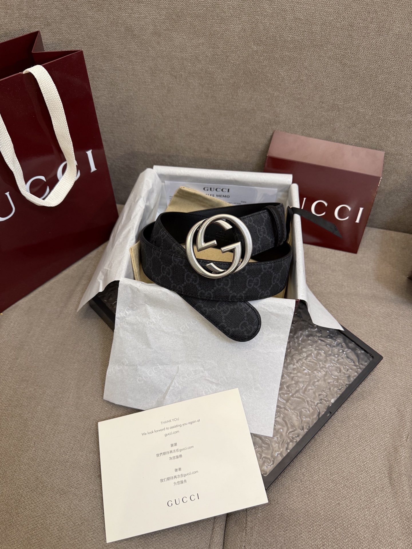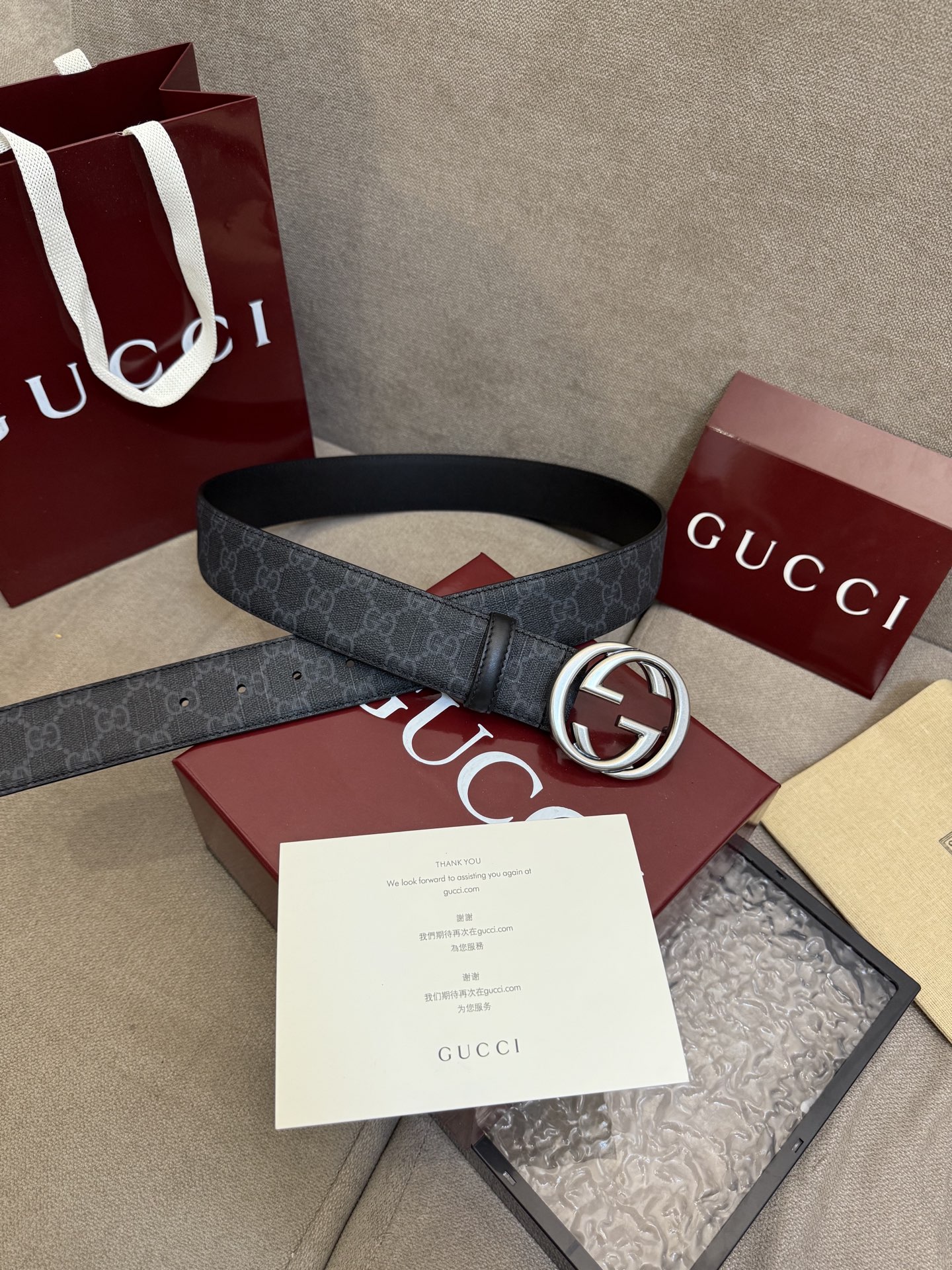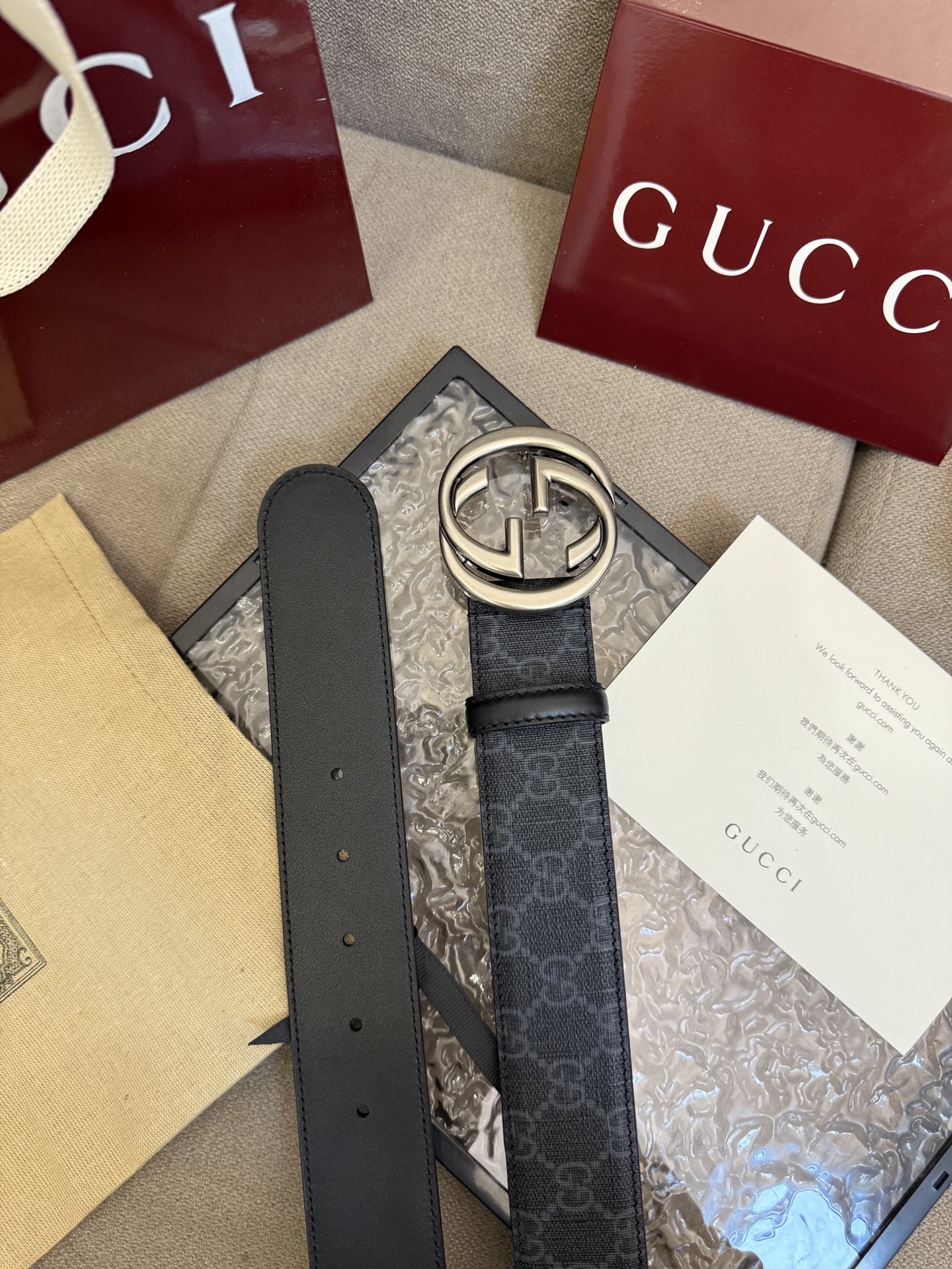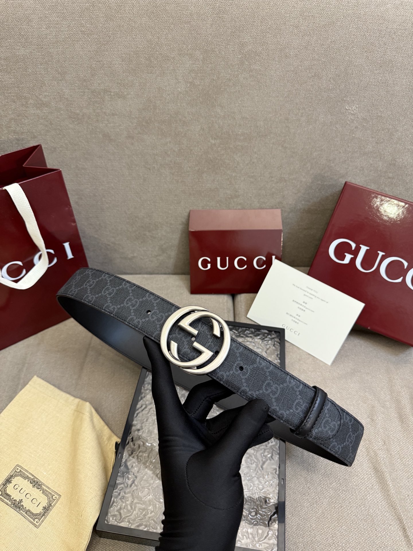 这款皮带是AAAAA 1:1 质量 (非常棒). 使用了和原版一模一样的材料. 商标部分也保持了和古奇/Gucci一样. 图片拍摄是实物皮带拍摄, 您所收到的实物保证和我们图片一模一样.
