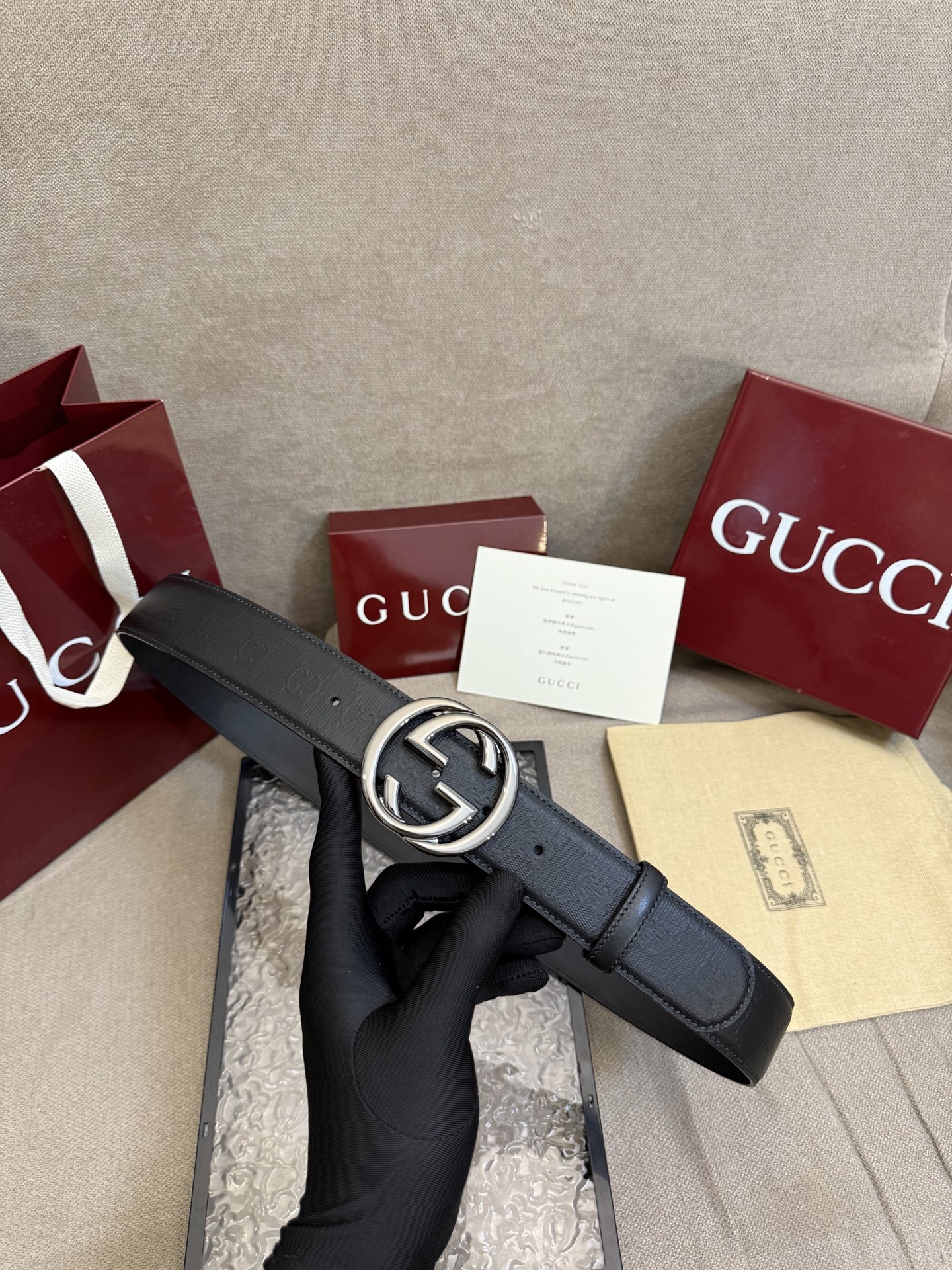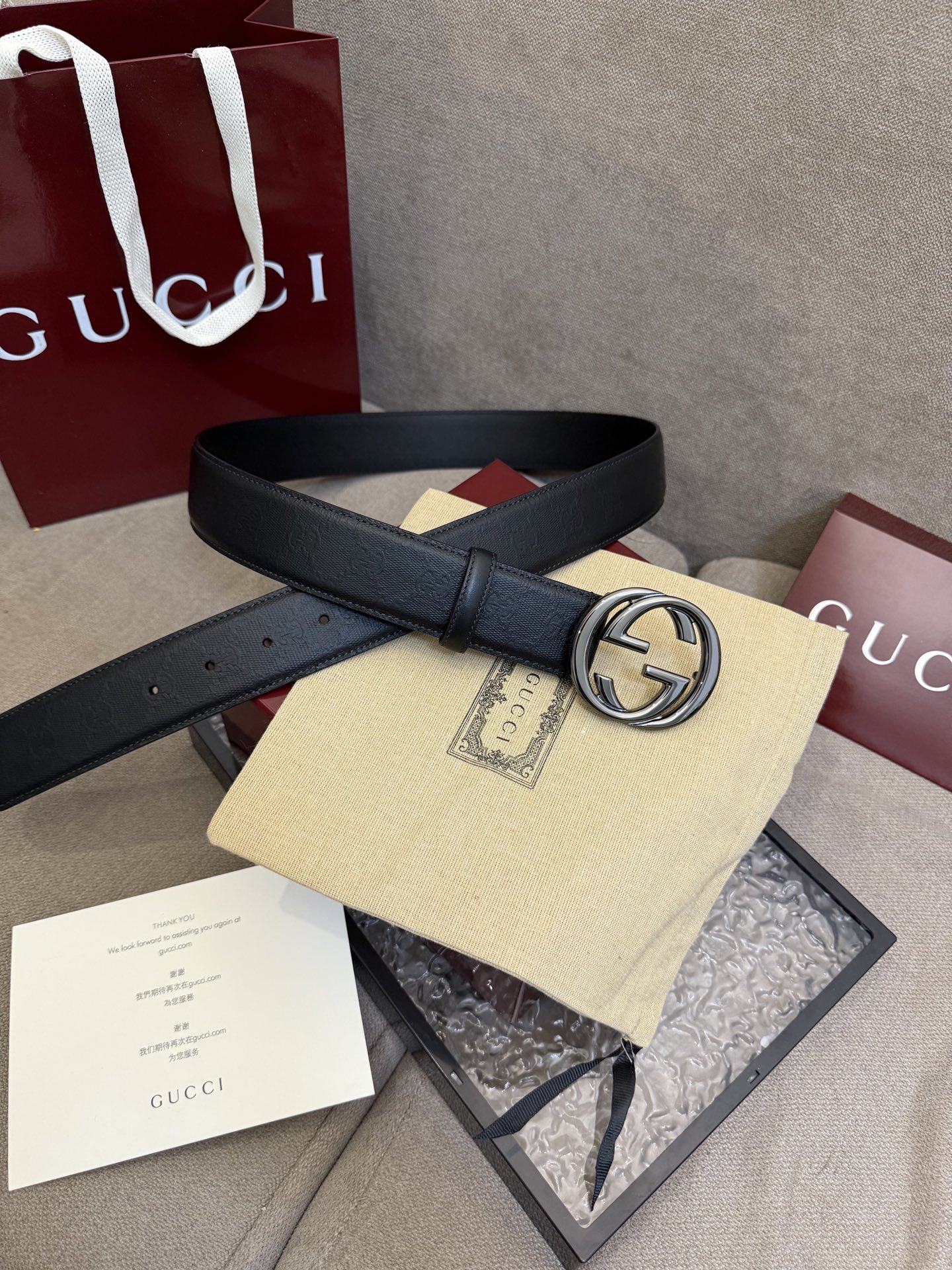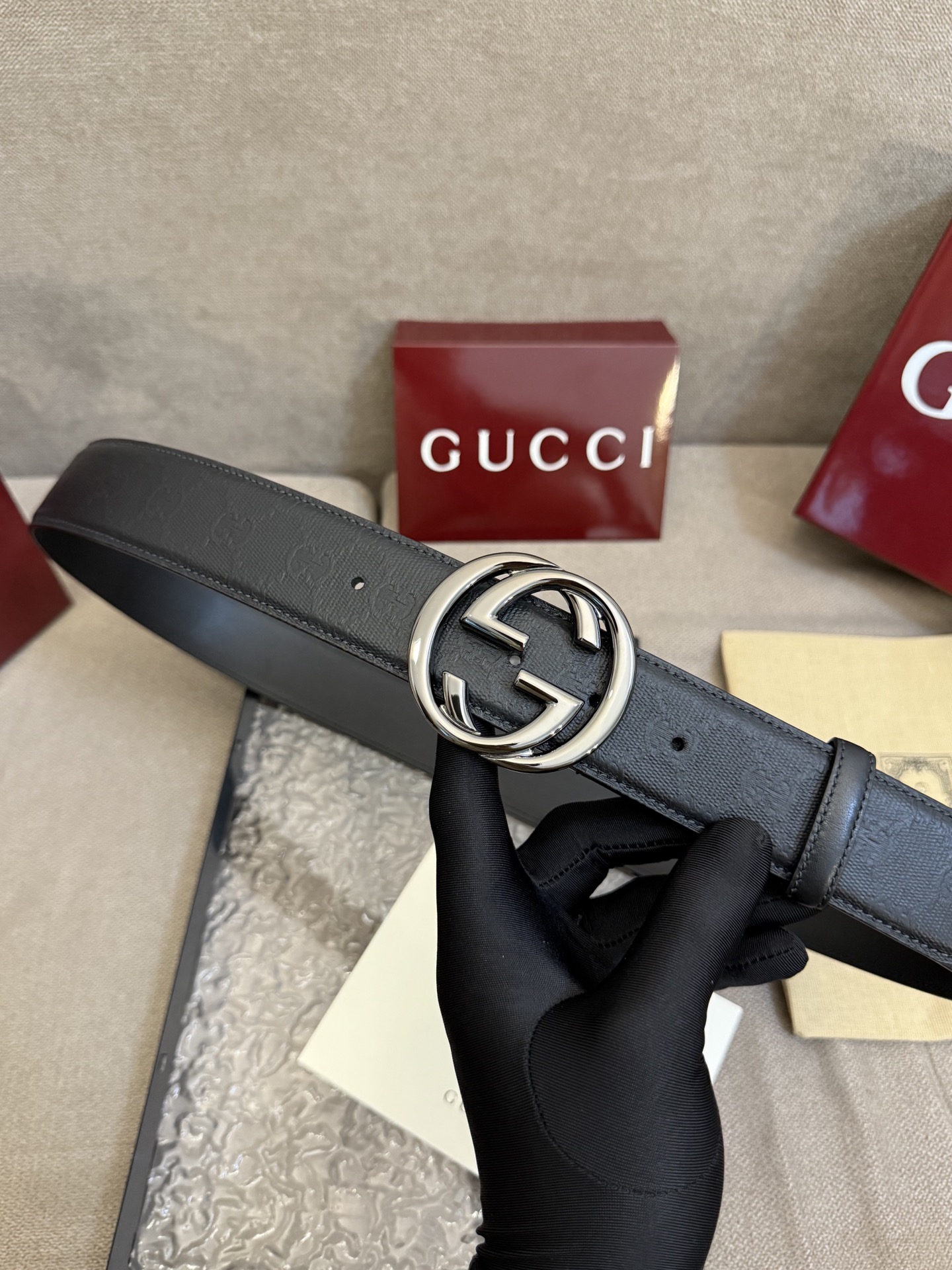 这款皮带是AAAAA 1:1 质量 (非常棒). 使用了和原版一模一样的材料. 商标部分也保持了和古奇/Gucci一样. 图片拍摄是实物皮带拍摄, 您所收到的实物保证和我们图片一模一样.