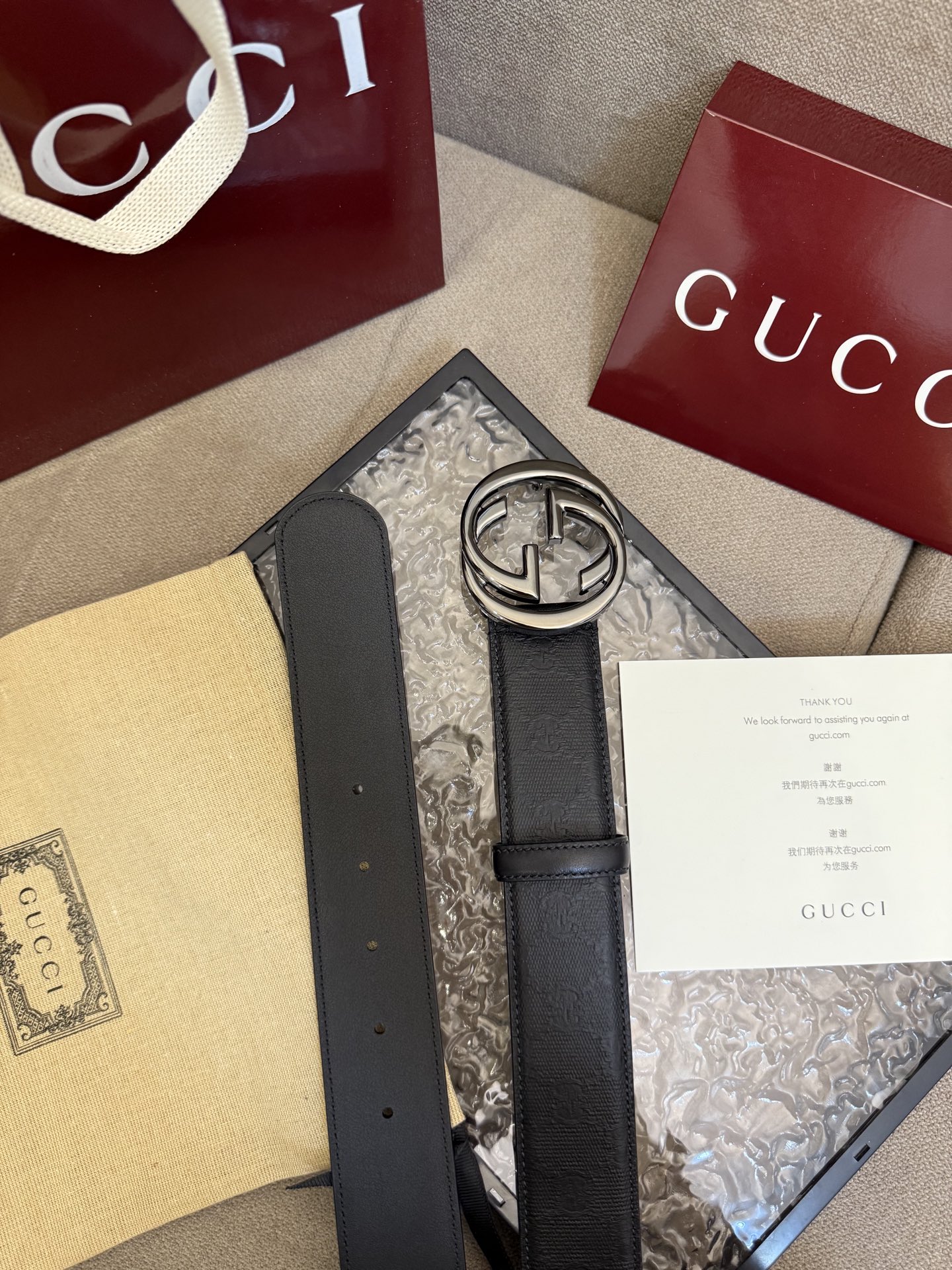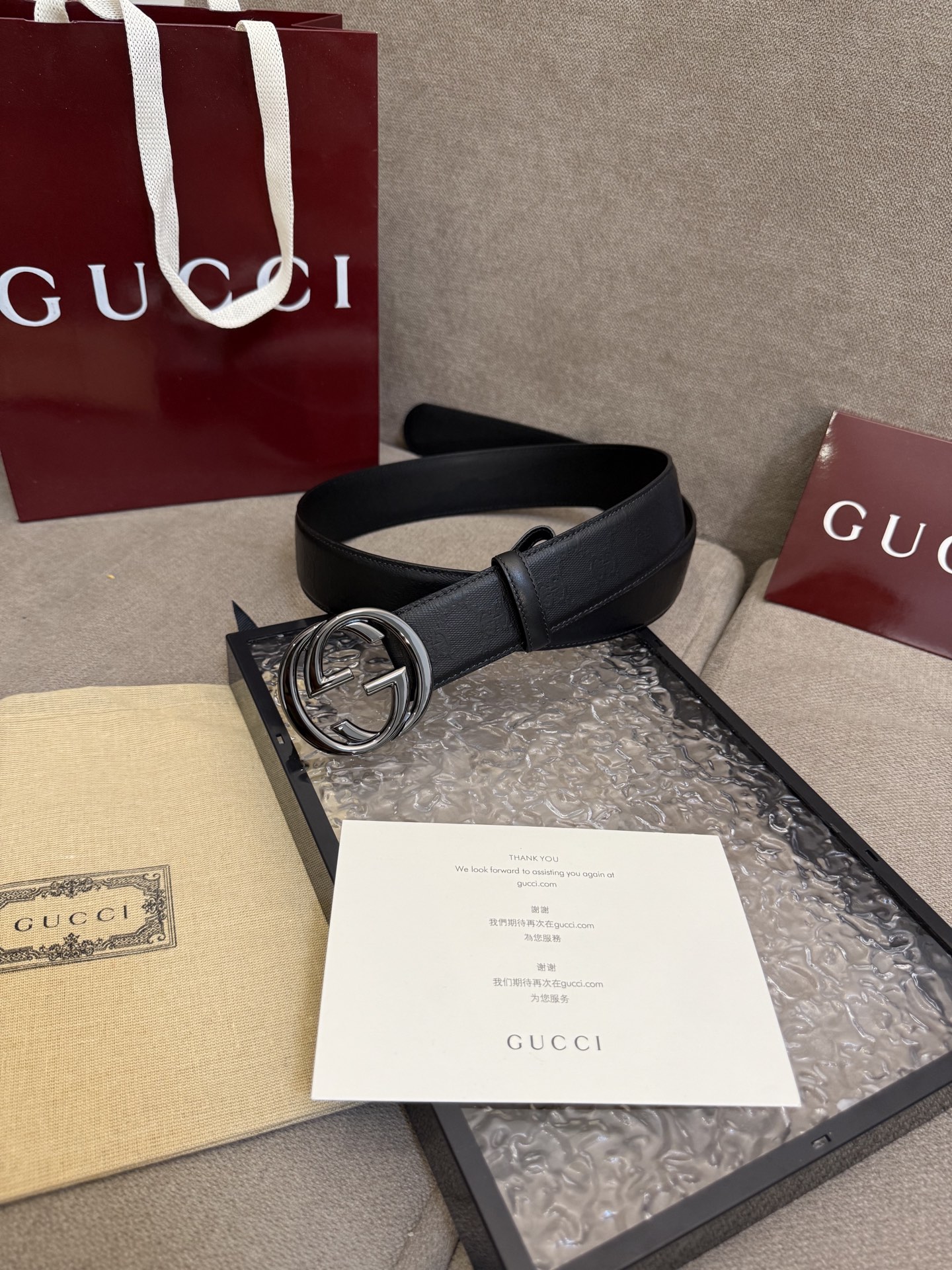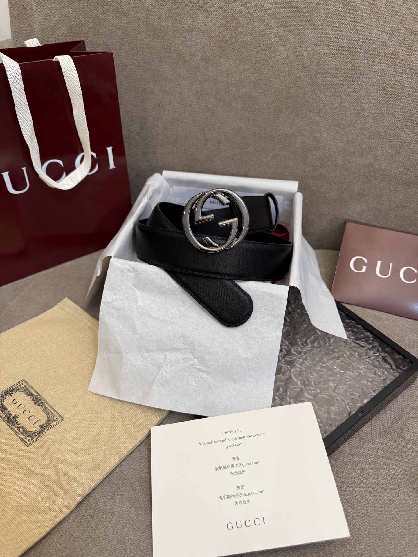 这款皮带是AAAAA 1:1 质量 (非常棒). 使用了和原版一模一样的材料. 商标部分也保持了和古奇/Gucci一样. 图片拍摄是实物皮带拍摄, 您所收到的实物保证和我们图片一模一样.