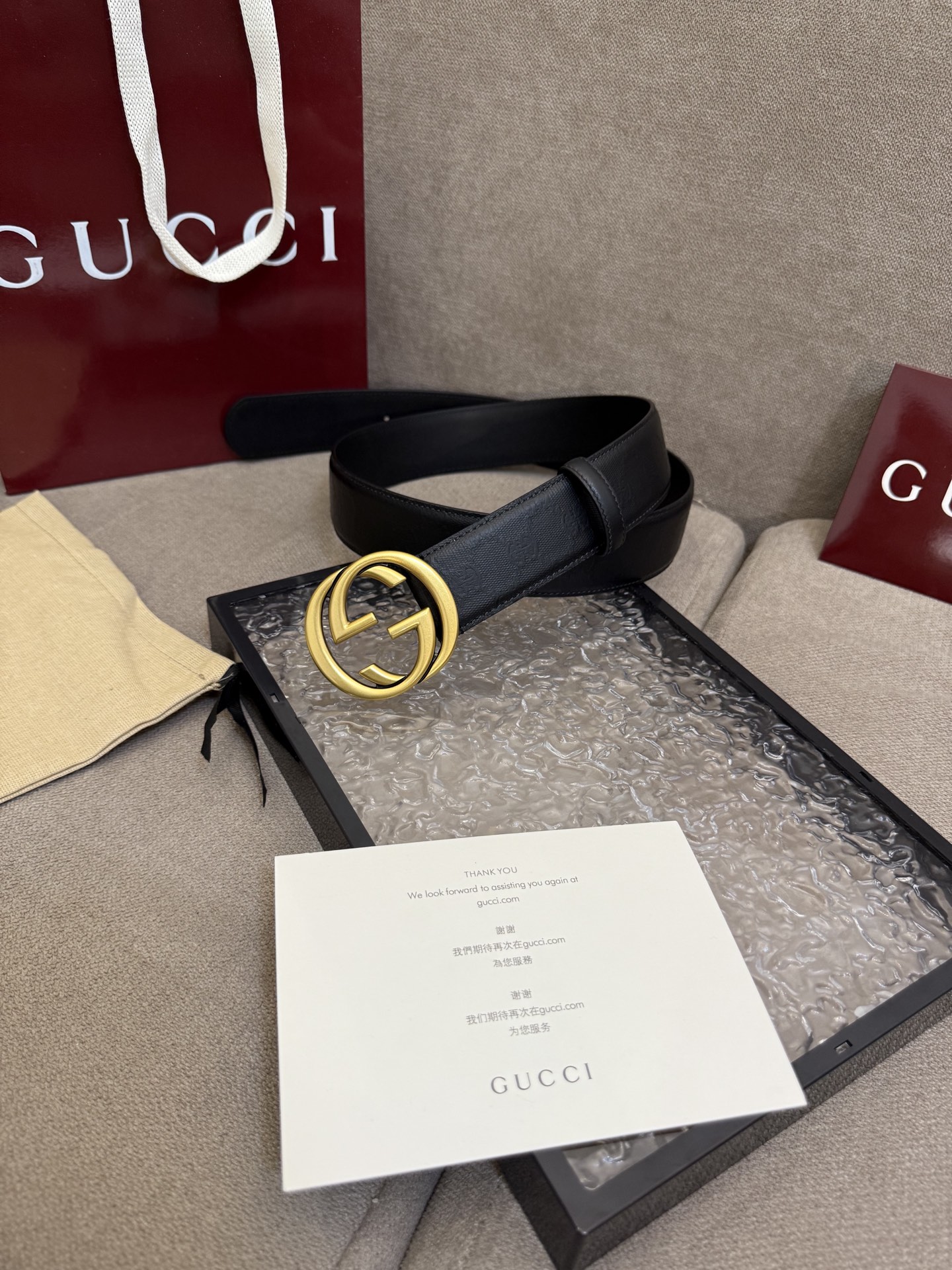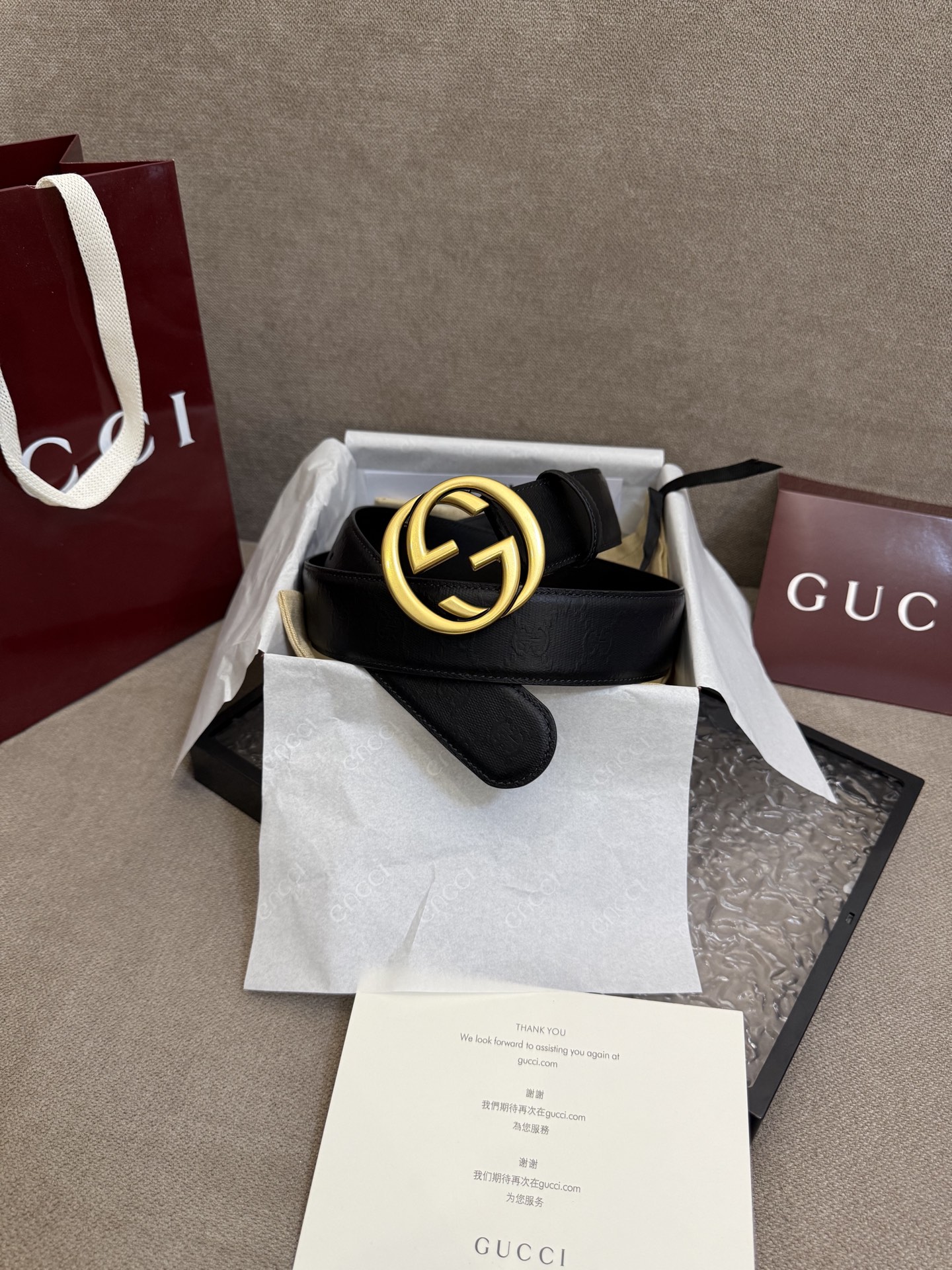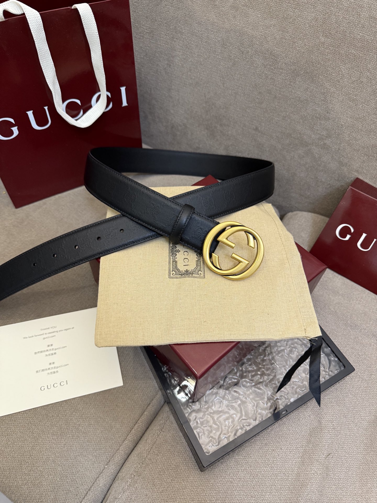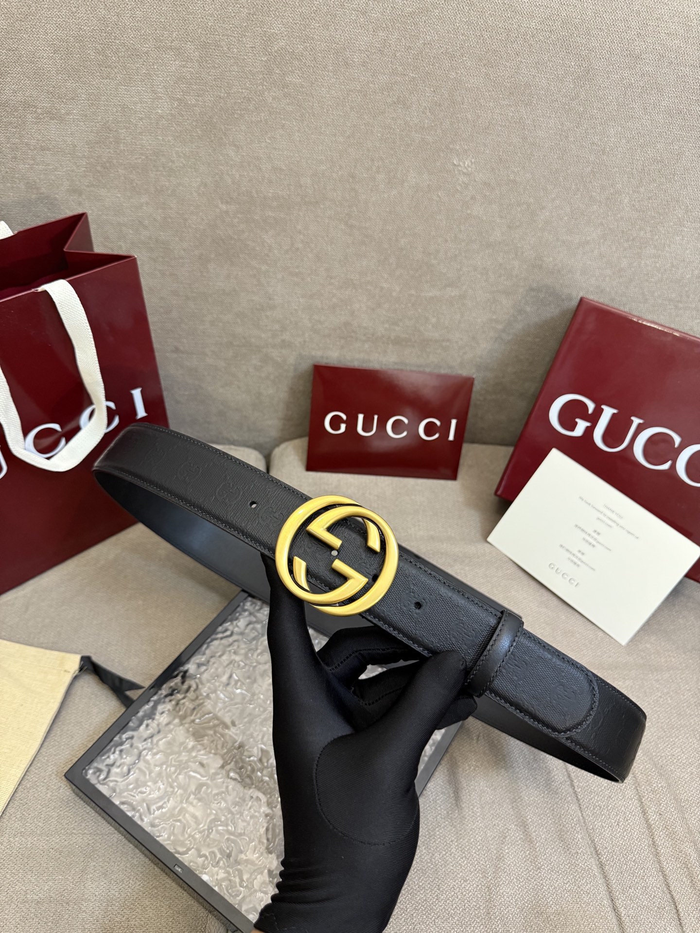 这款皮带是AAAAA 1:1 质量 (非常棒). 使用了和原版一模一样的材料. 商标部分也保持了和古奇/Gucci一样. 图片拍摄是实物皮带拍摄, 您所收到的实物保证和我们图片一模一样.