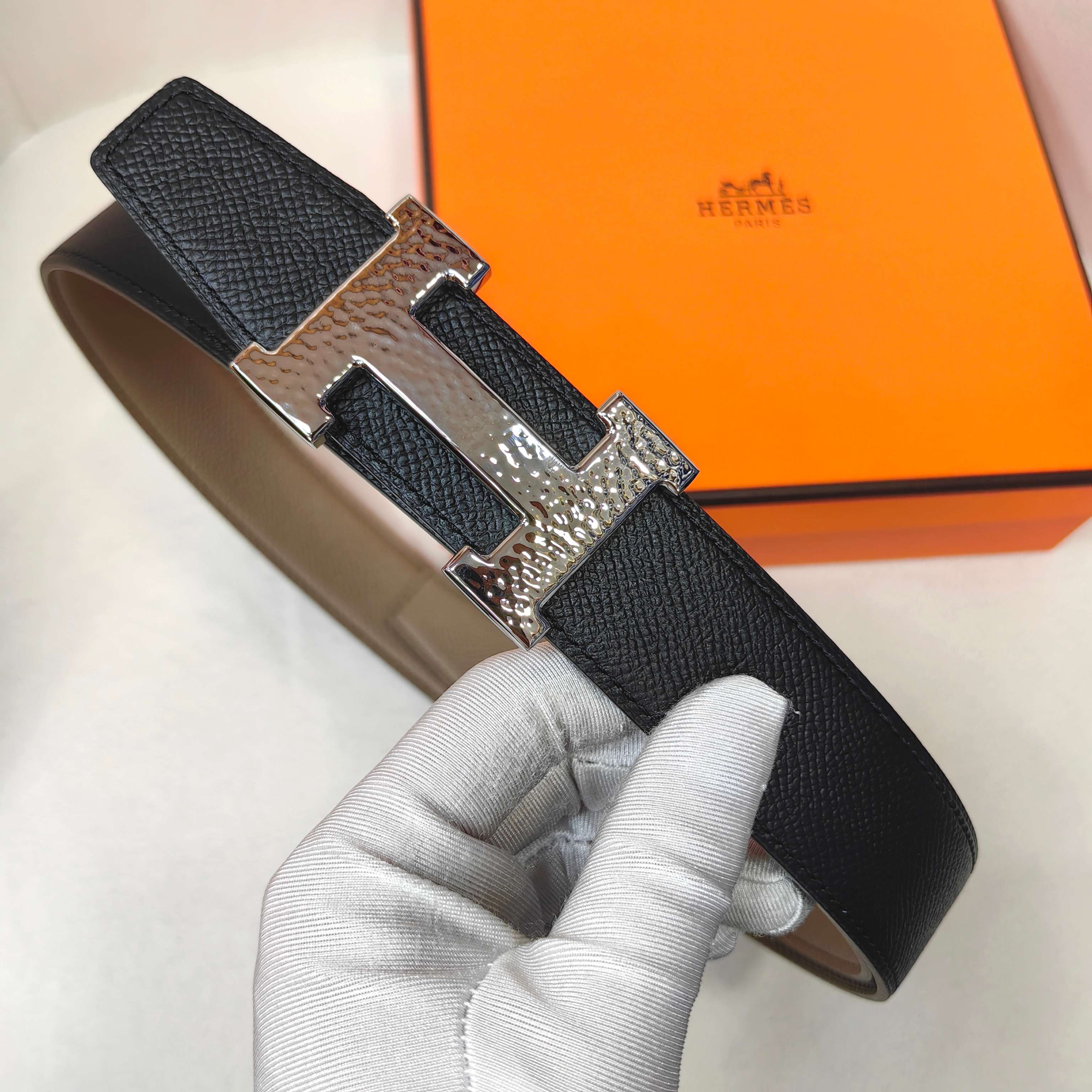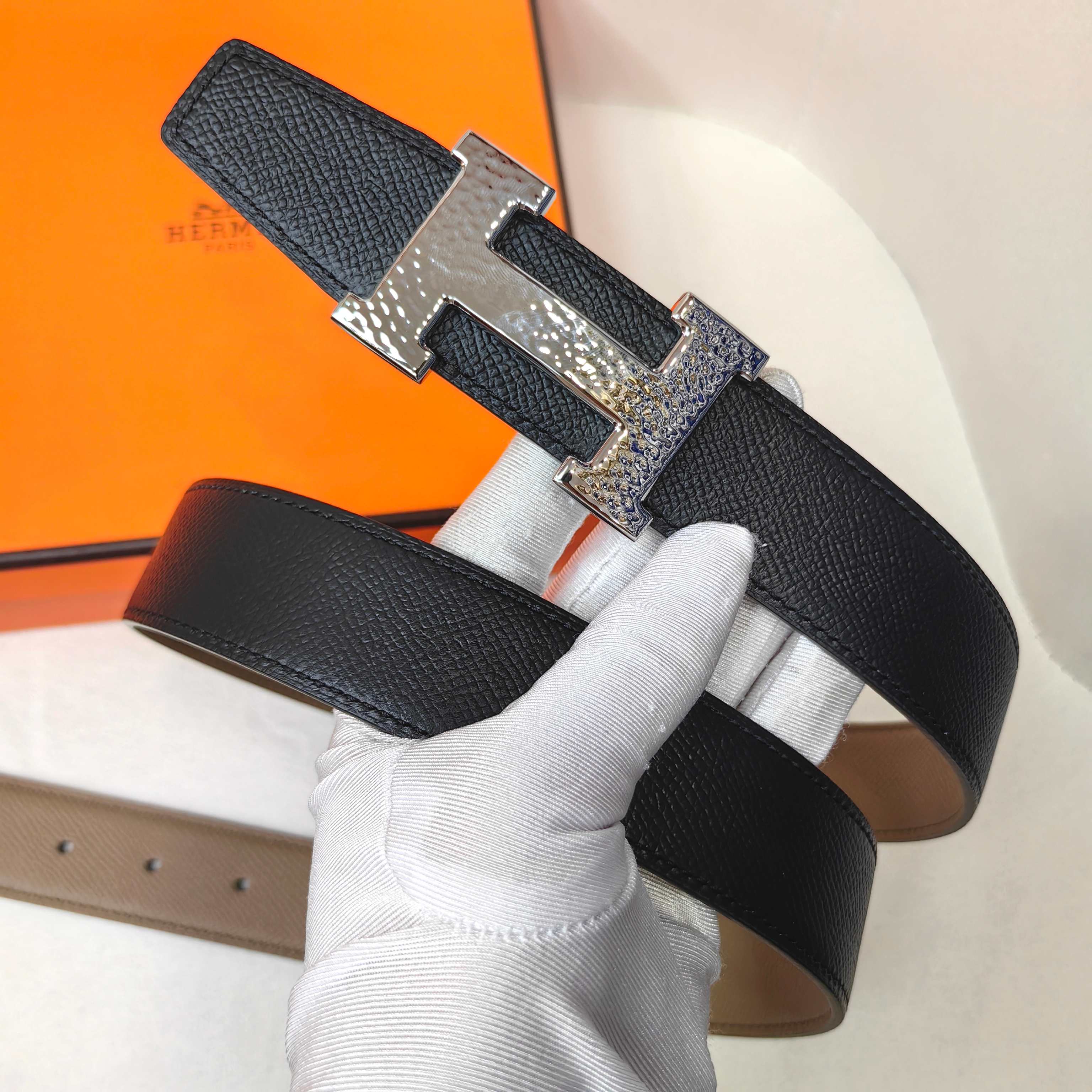这款皮带是AAAAA 1:1 质量 (非常棒). 使用了和原版一模一样的材料. 商标部分也保持了和爱马仕/Hermes一样. 图片拍摄是实物皮带拍摄, 您所收到的实物保证和我们图片一模一样.