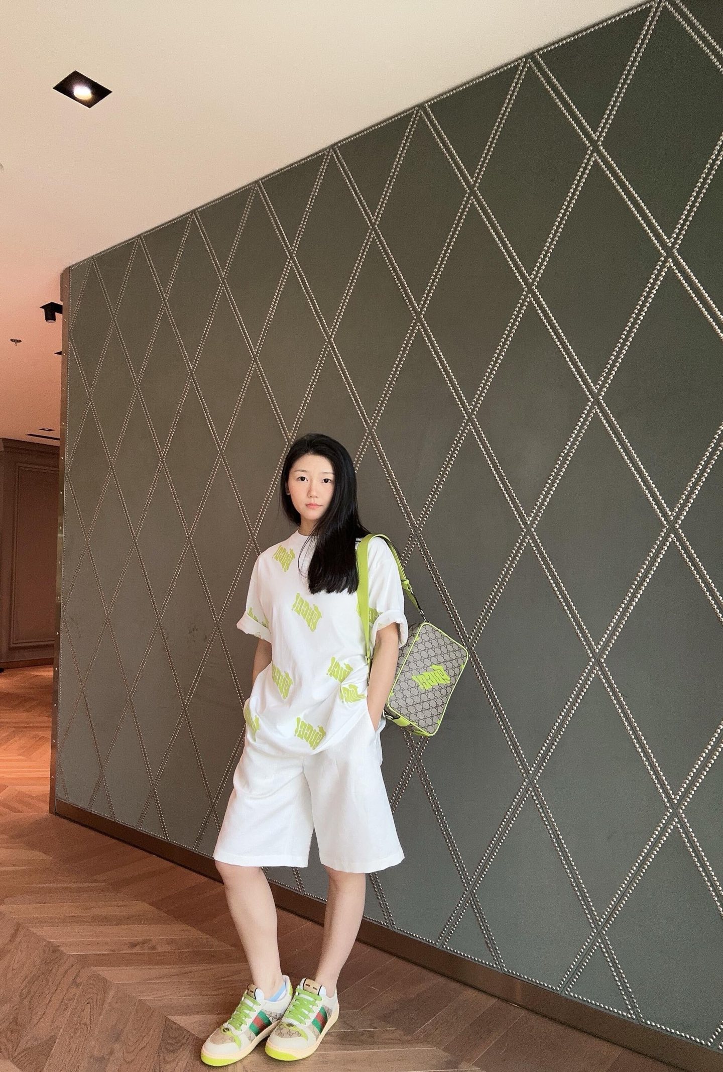 这款衣服是AAAAA 1:1 质量 (非常棒). 使用了和原版一模一样的材料. 商标部分也保持了和古奇/Gucci一样. 图片拍摄是实物衣服拍摄, 您所收到的实物保证和我们图片一模一样.