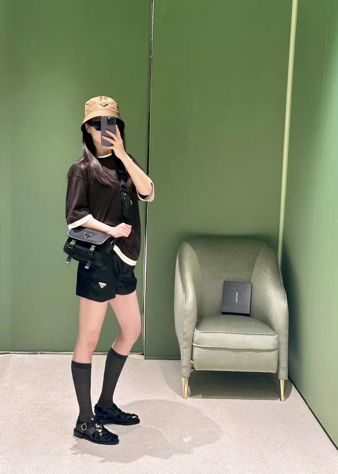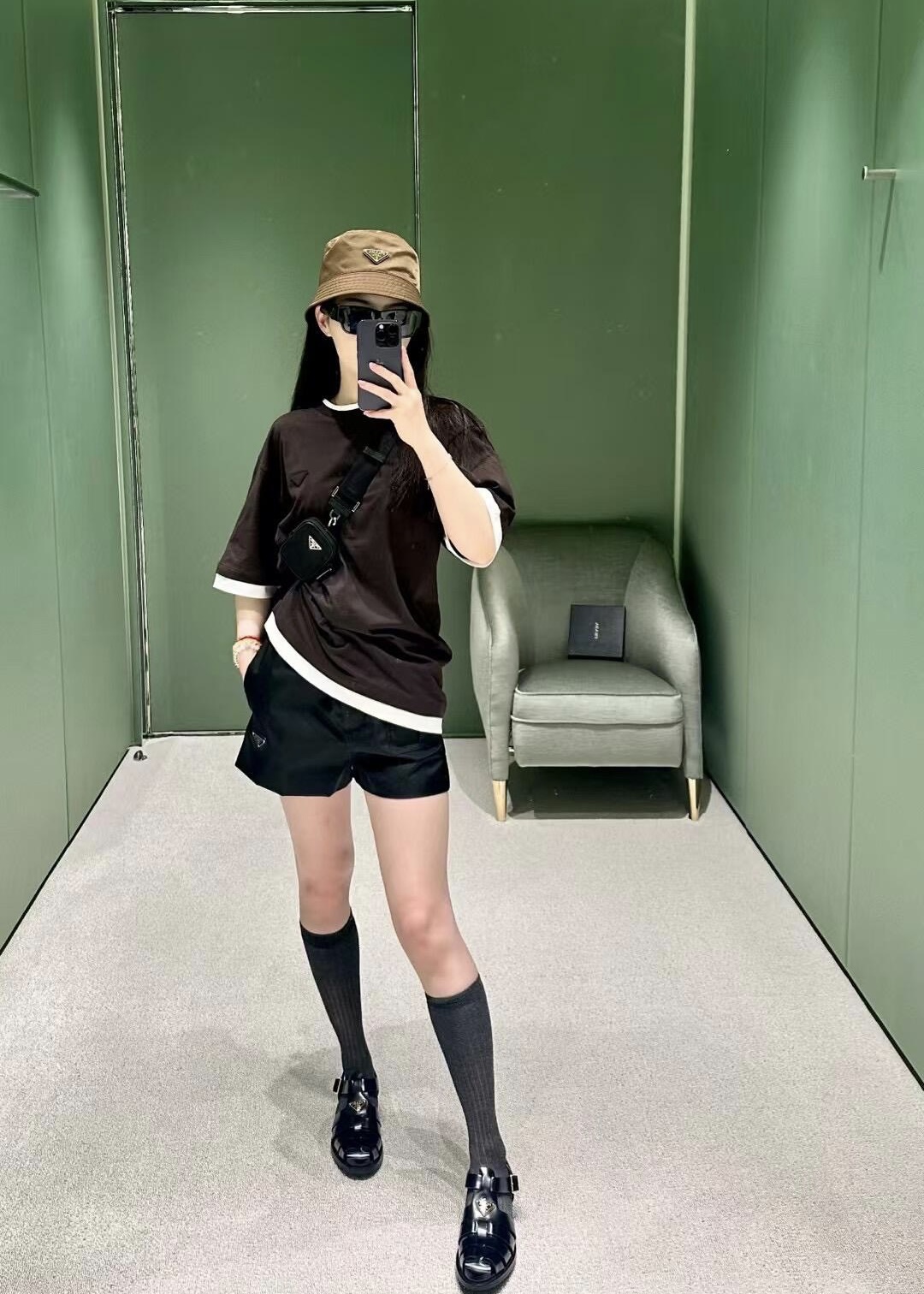 这款衣服是AAAAA 1:1 质量 (非常棒). 使用了和原版一模一样的材料. 商标部分也保持了和普拉达/Prada一样. 图片拍摄是实物衣服拍摄, 您所收到的实物保证和我们图片一模一样.
