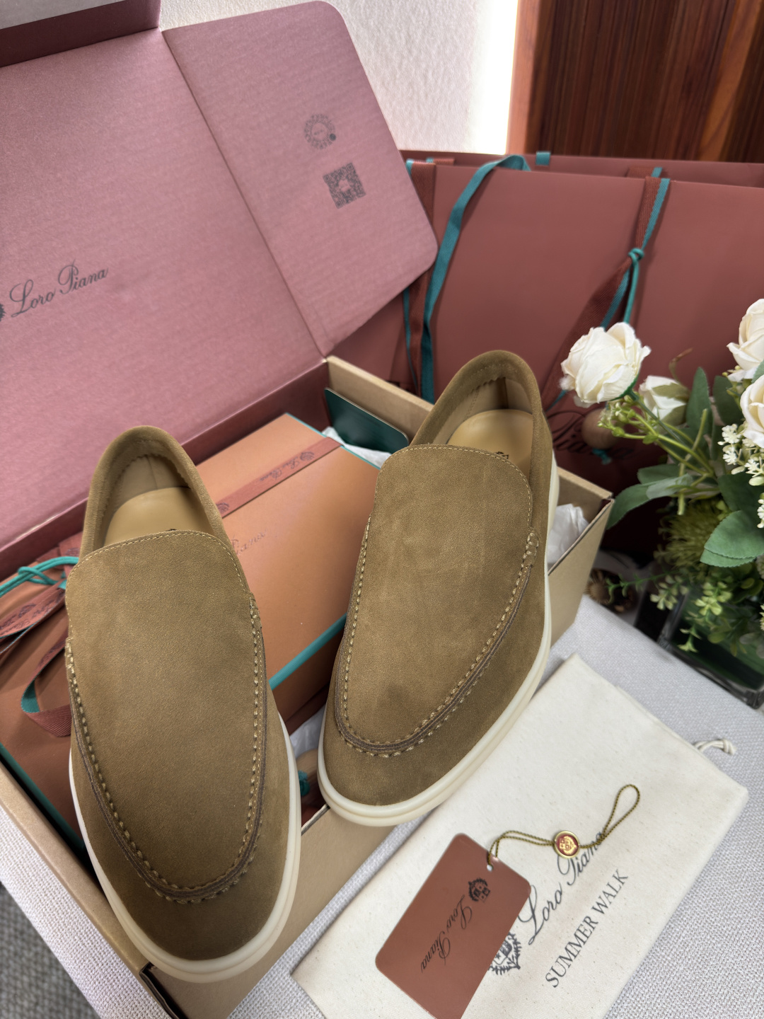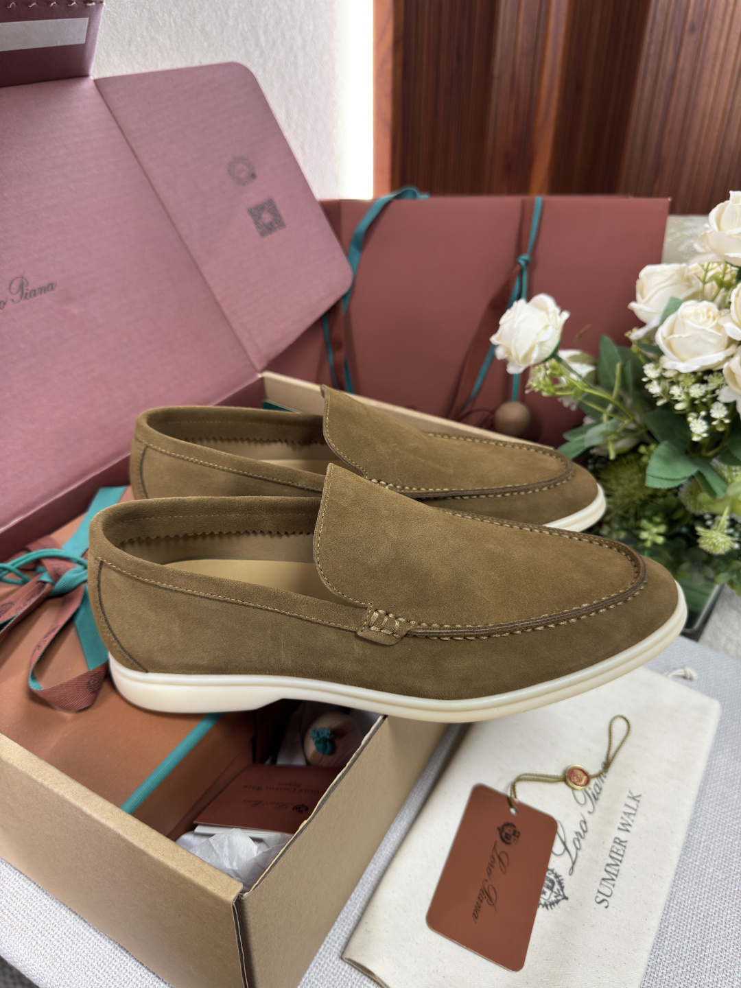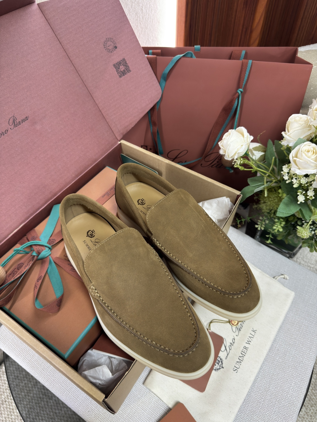 这款鞋子是AAAAA 1:1 质量 (非常棒). 使用了和原版一模一样的材料. 商标部分也保持了和洛罗皮亚纳/Loro Piana一样. 图片拍摄是实物鞋子拍摄, 您所收到的实物保证和我们图片一模一样.