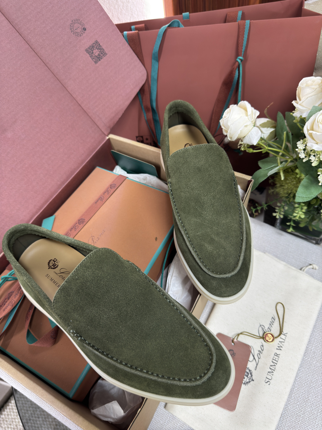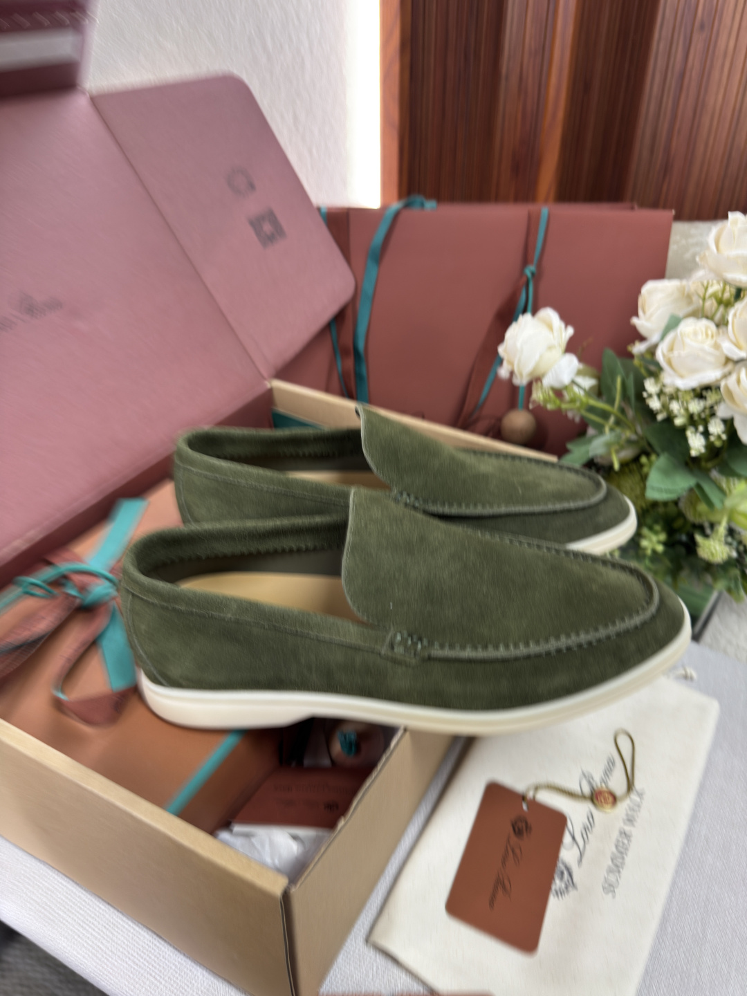 这款鞋子是AAAAA 1:1 质量 (非常棒). 使用了和原版一模一样的材料. 商标部分也保持了和洛罗皮亚纳/Loro Piana一样. 图片拍摄是实物鞋子拍摄, 您所收到的实物保证和我们图片一模一样.