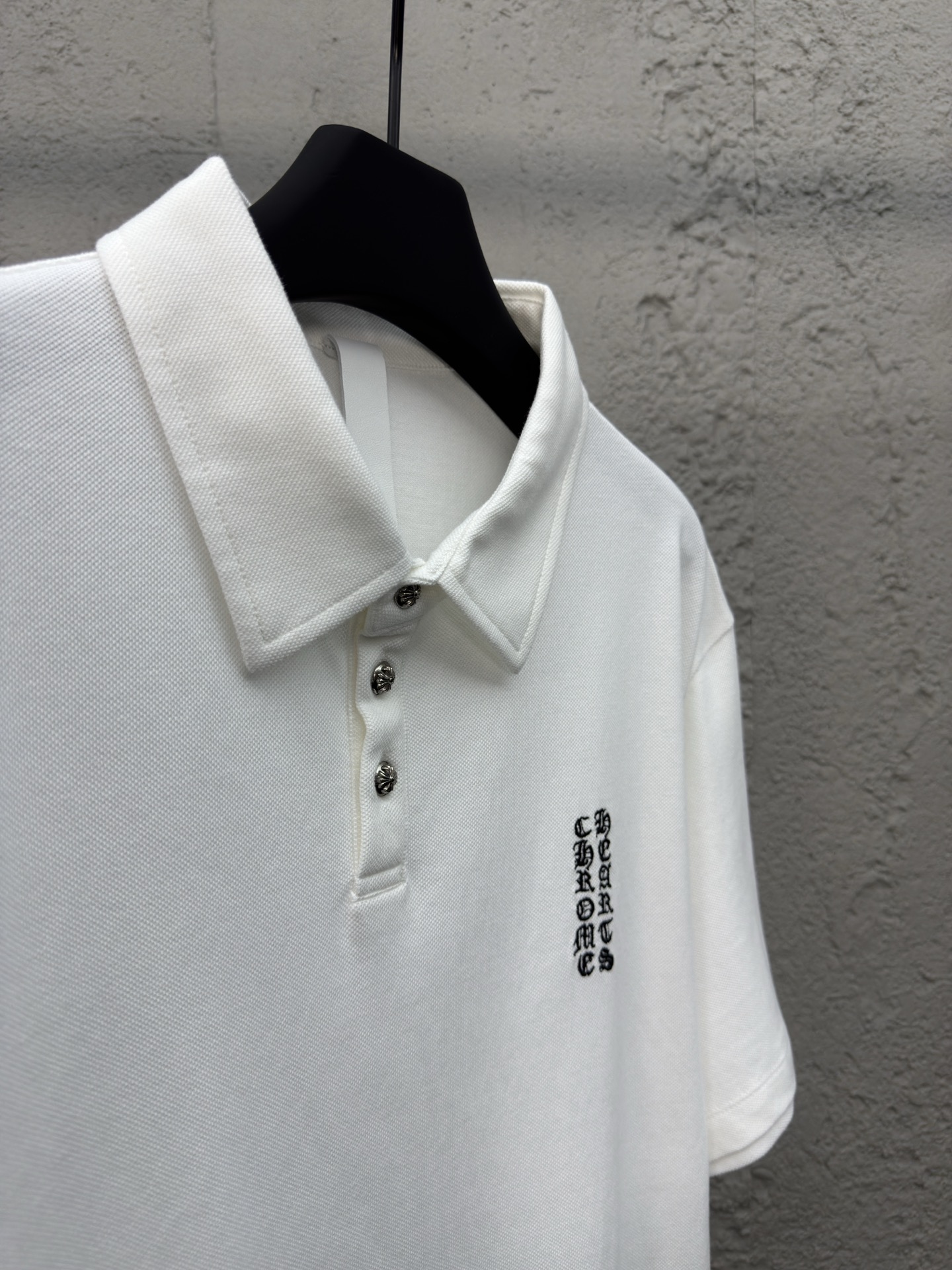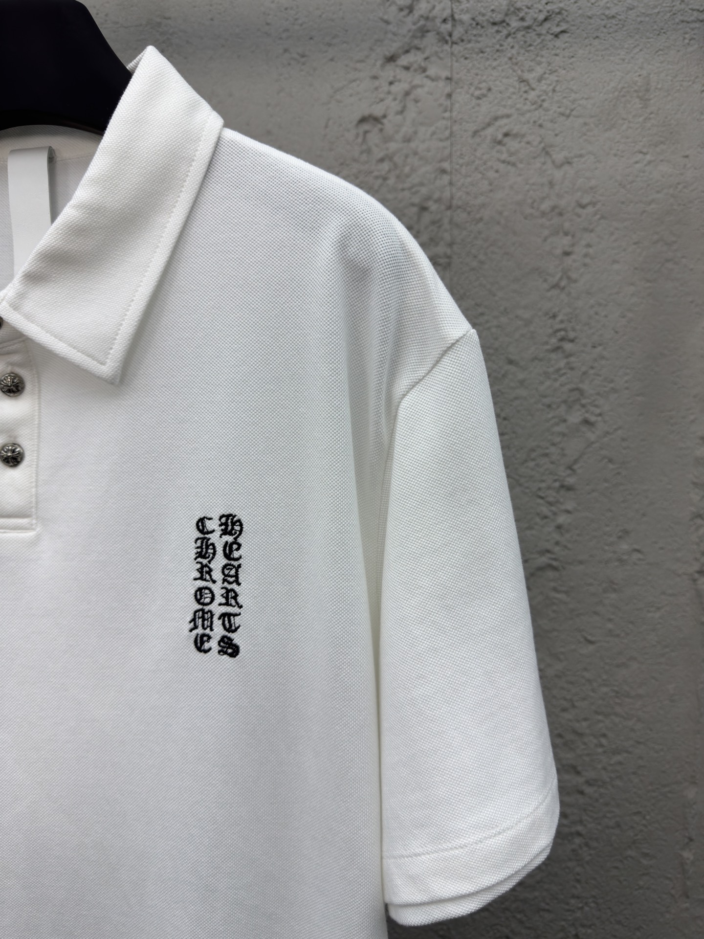 这款衣服是AAAAA 1:1 质量 (非常棒). 使用了和原版一模一样的材料. 商标部分也保持了和克罗心/Chrome Hearts一样. 图片拍摄是实物衣服拍摄, 您所收到的实物保证和我们图片一模一样.