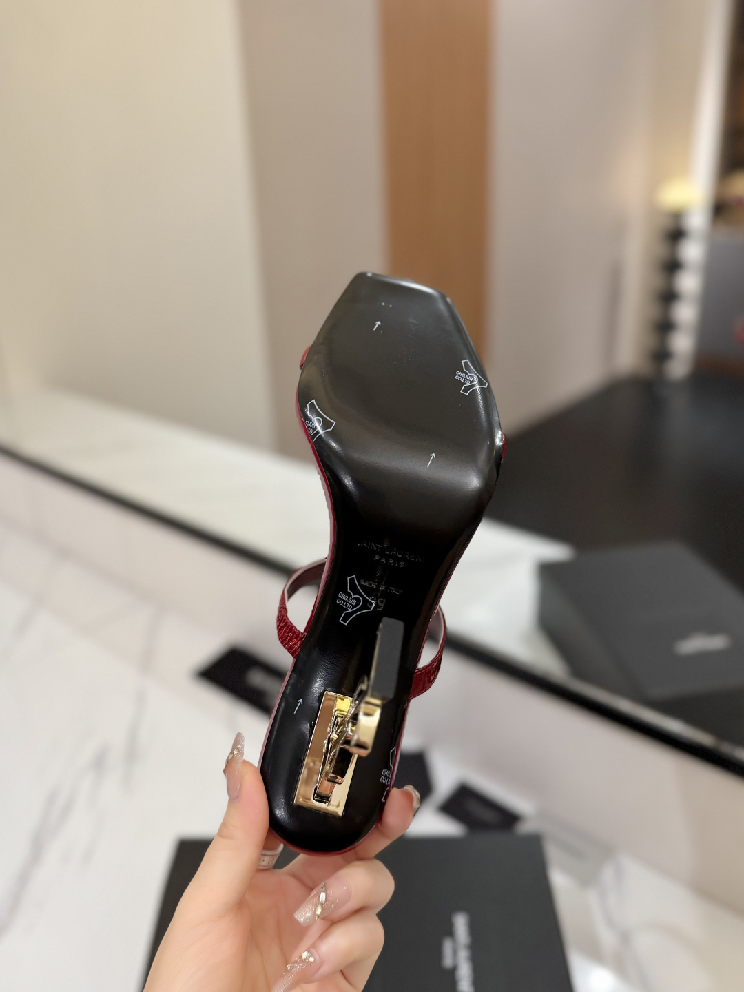 这款鞋子是AAAAA 1:1 质量 (非常棒). 使用了和原版一模一样的材料. 商标部分也保持了和圣罗兰/Saint Laurent一样. 图片拍摄是实物鞋子拍摄, 您所收到的实物保证和我们图片一模一样.