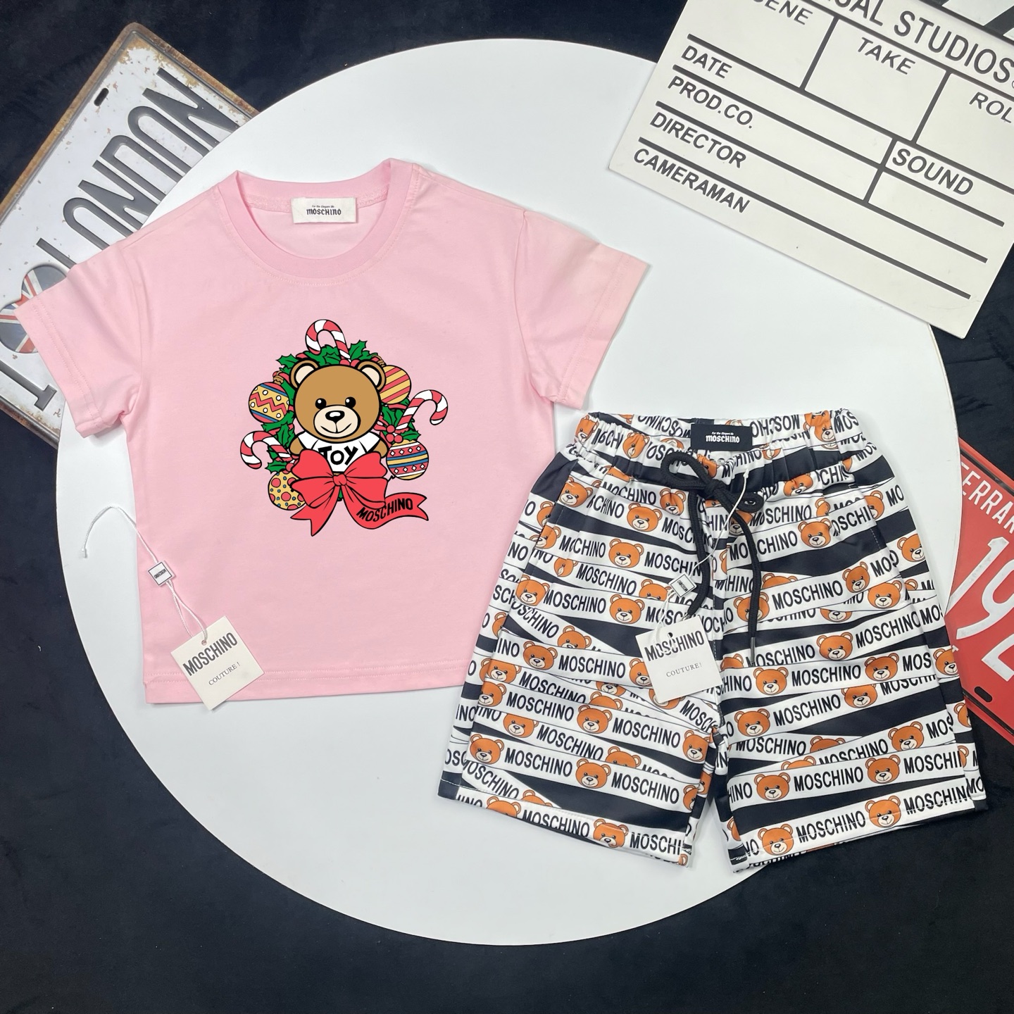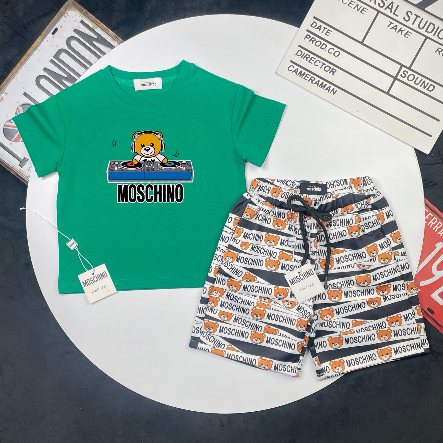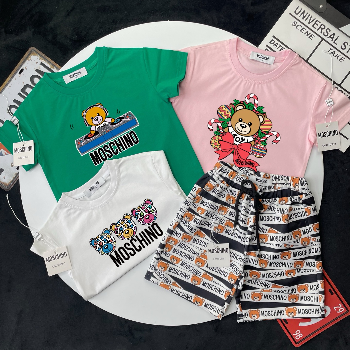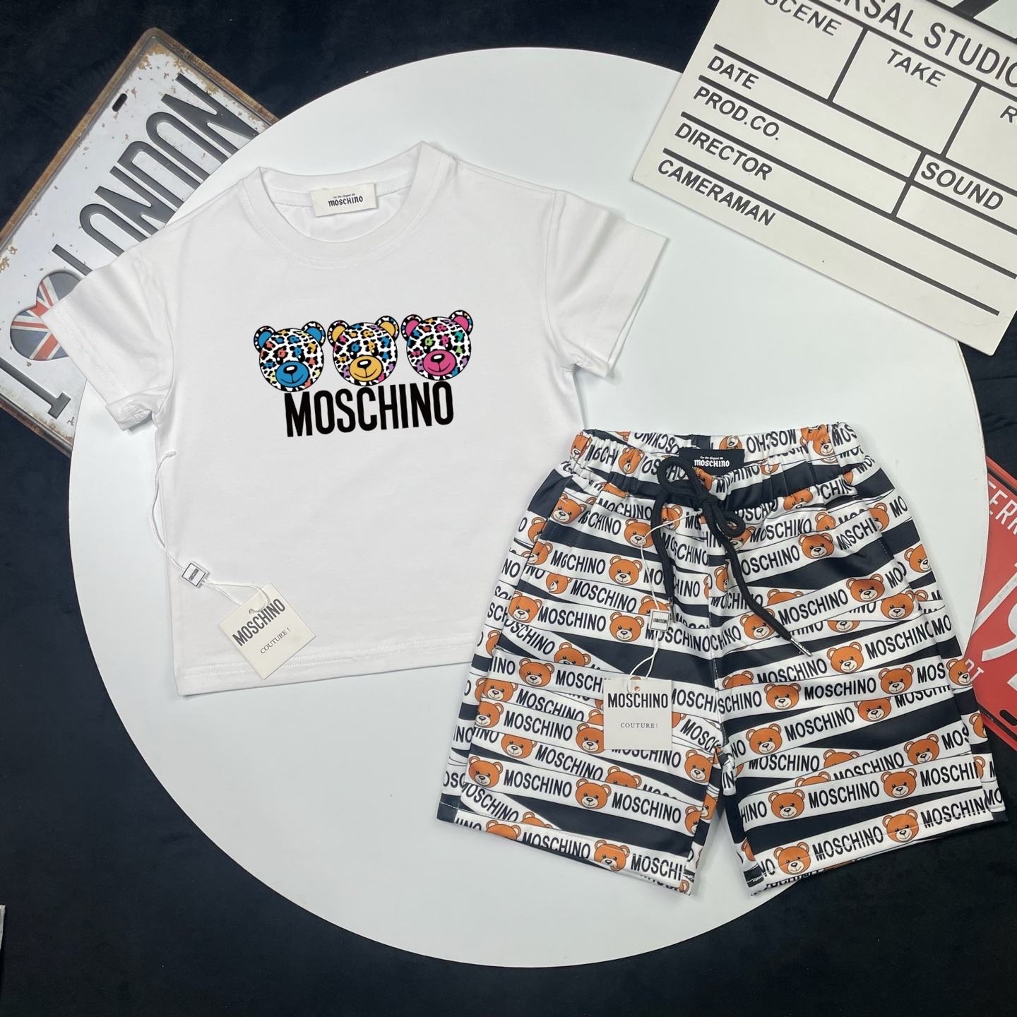 这款children's clothes是AAAAA 1:1 质量 (非常棒). 使用了和原版一模一样的材料. 商标部分也保持了和莫斯基诺/Moschino一样. 图片拍摄是实物children's clothes拍摄, 您所收到的实物保证和我们图片一模一样.