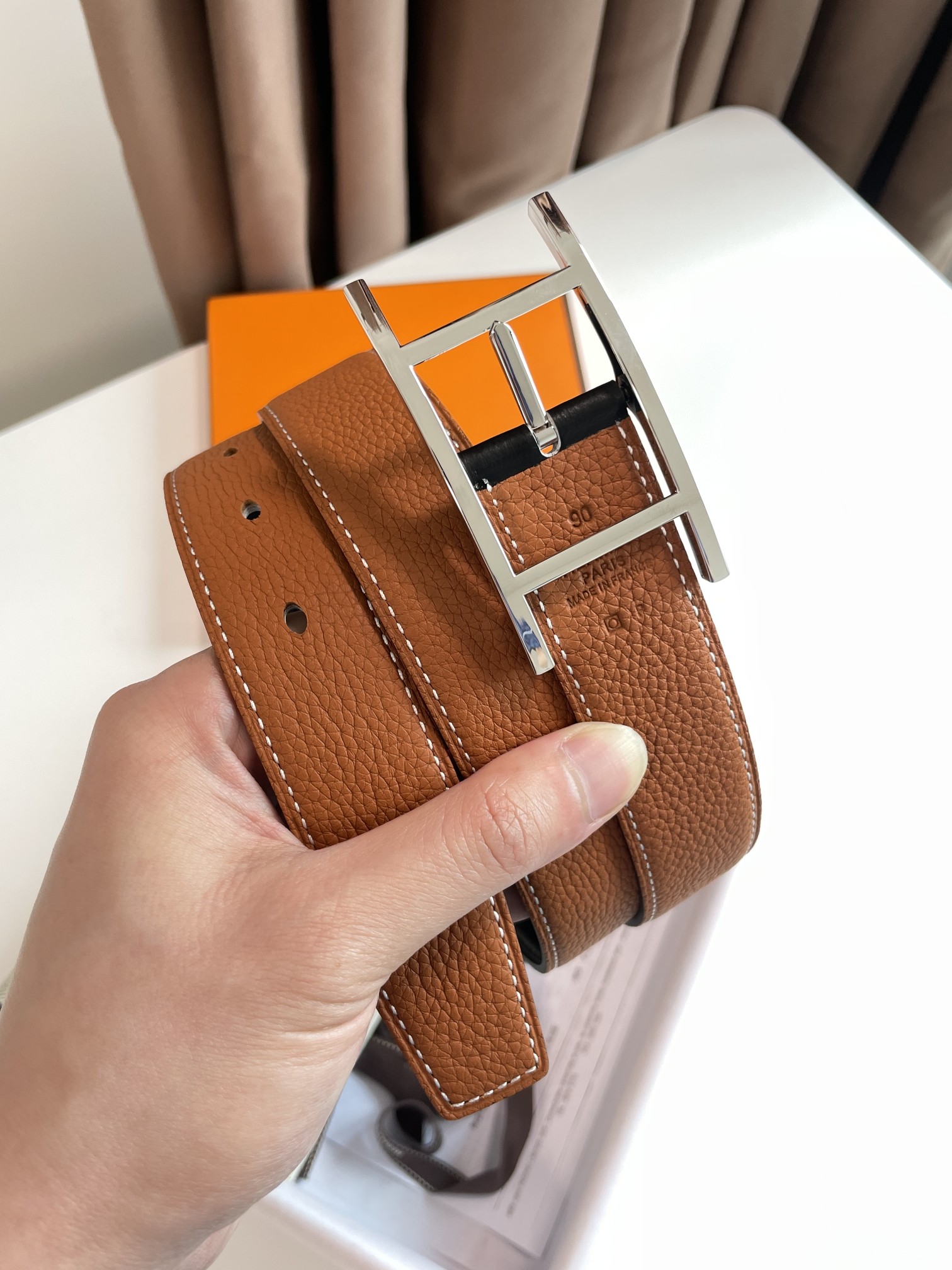 这款皮带是AAAAA 1:1 质量 (非常棒). 使用了和原版一模一样的材料. 商标部分也保持了和一样. 图片拍摄是实物皮带拍摄, 您所收到的实物保证和我们图片一模一样.