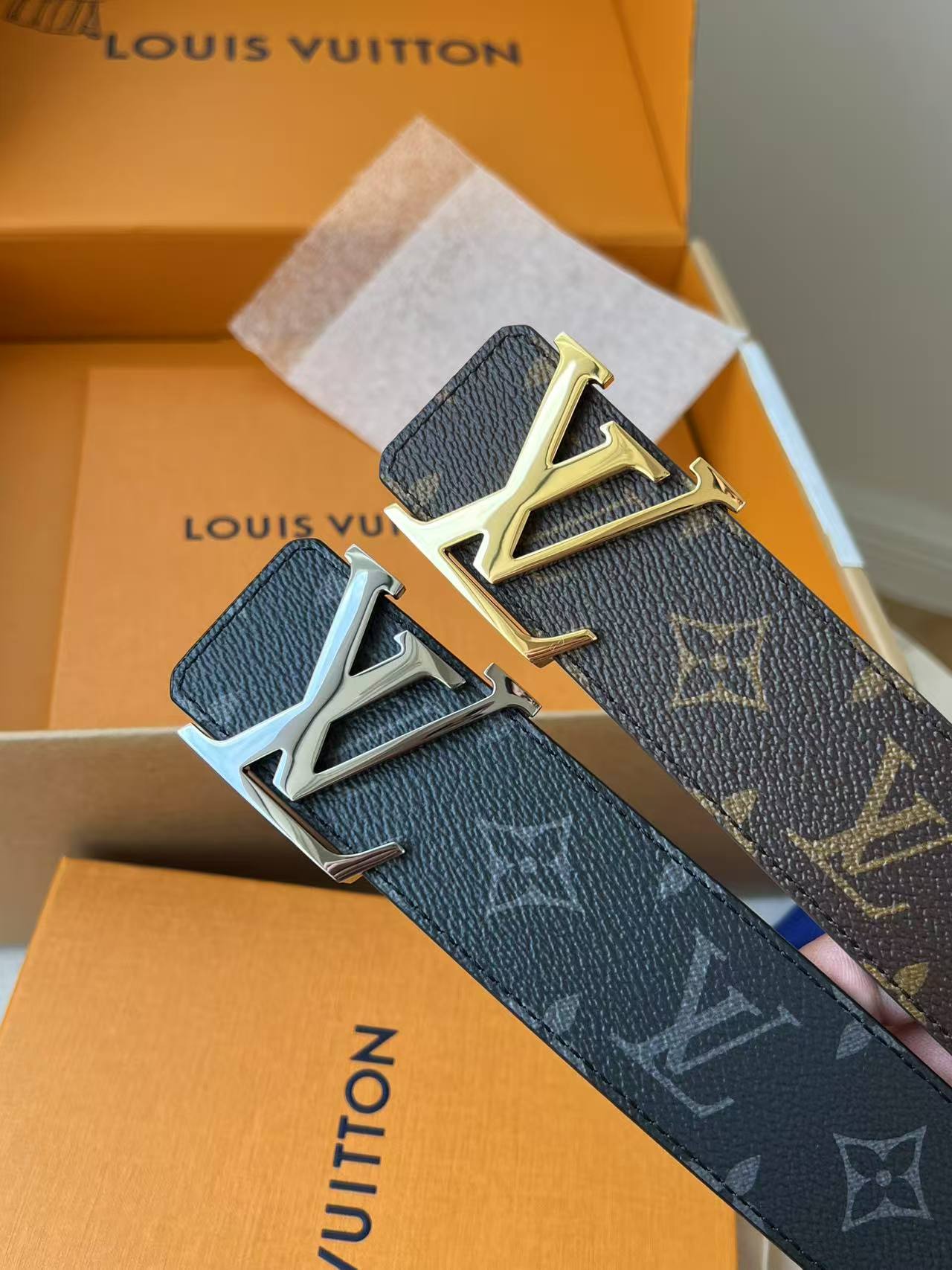 这款皮带是AAAAA 1:1 质量 (非常棒). 使用了和原版一模一样的材料. 商标部分也保持了和路易威登/Louis Vuitton一样. 图片拍摄是实物皮带拍摄, 您所收到的实物保证和我们图片一模一样.