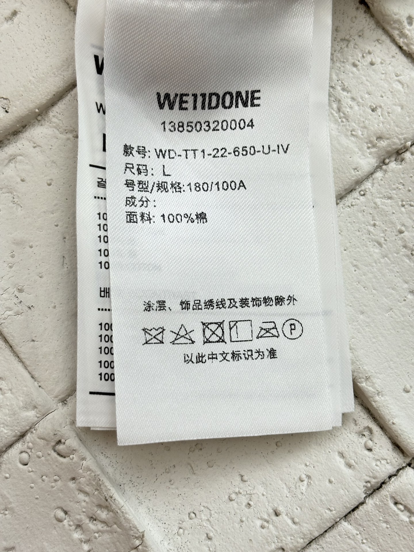 这款衣服是AAAAA 1:1 质量 (非常棒). 使用了和原版一模一样的材料. 商标部分也保持了和We11done一样. 图片拍摄是实物衣服拍摄, 您所收到的实物保证和我们图片一模一样.