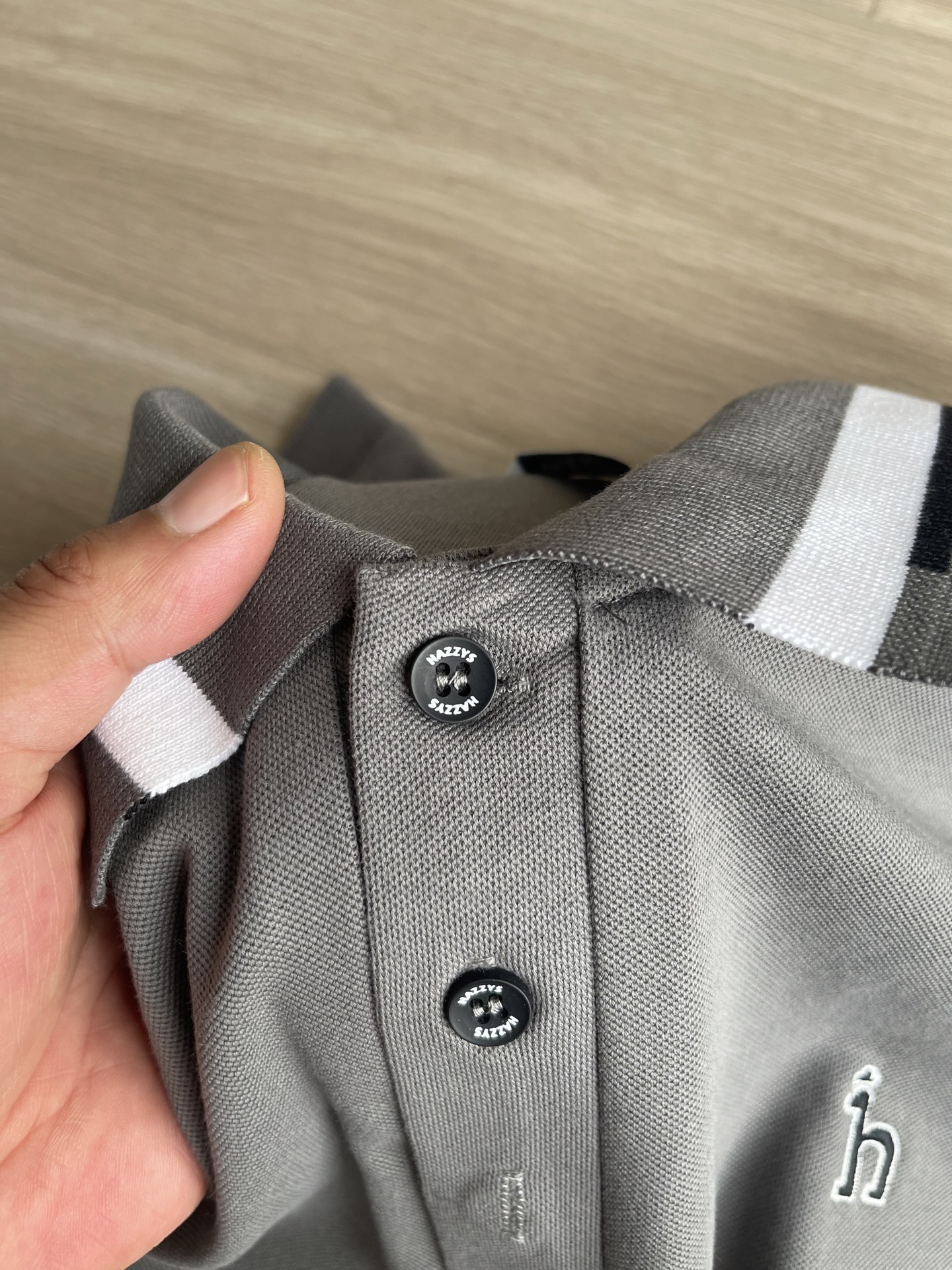 这款衣服是AAAAA 1:1 质量 (非常棒). 使用了和原版一模一样的材料. 商标部分也保持了和Hazzys一样. 图片拍摄是实物衣服拍摄, 您所收到的实物保证和我们图片一模一样.