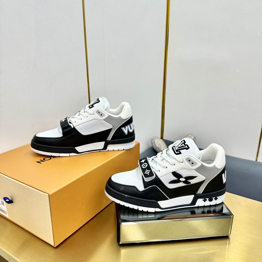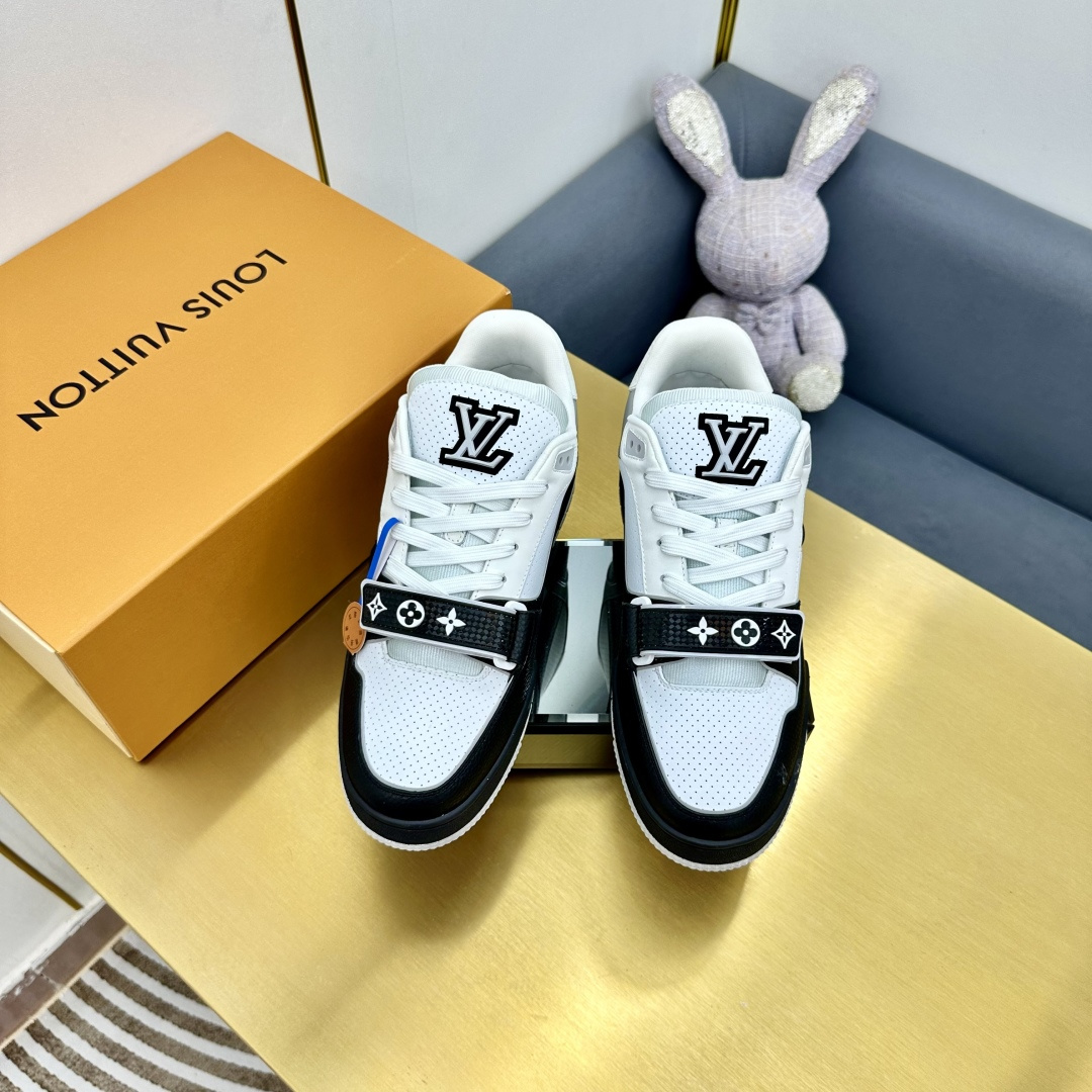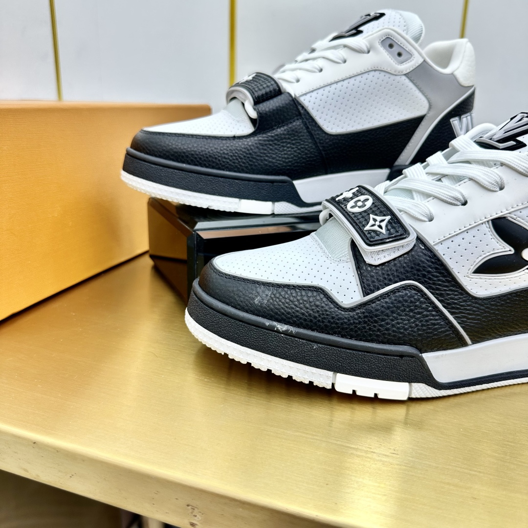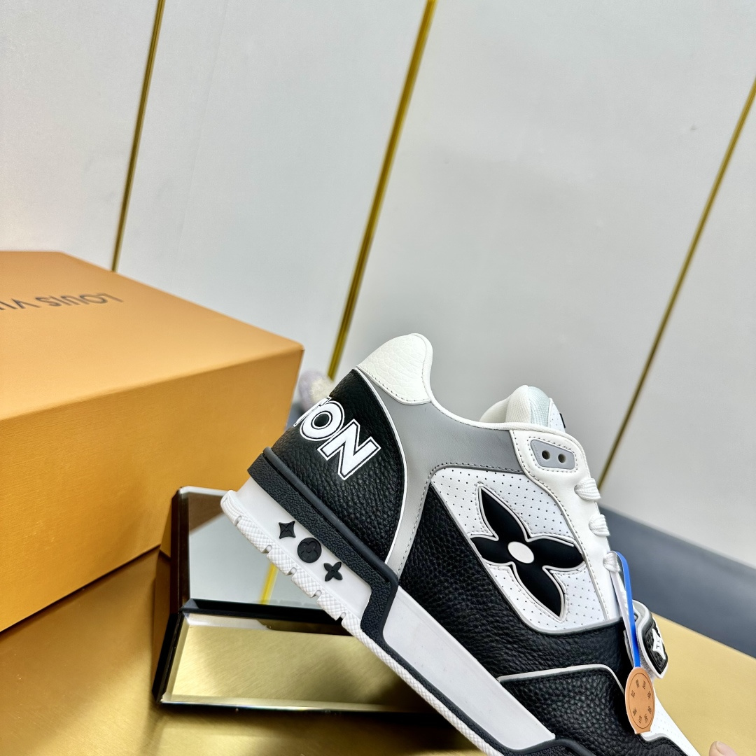 这款鞋子是AAAAA 1:1 质量 (非常棒). 使用了和原版一模一样的材料. 商标部分也保持了和路易威登/Louis Vuitton一样. 图片拍摄是实物鞋子拍摄, 您所收到的实物保证和我们图片一模一样.