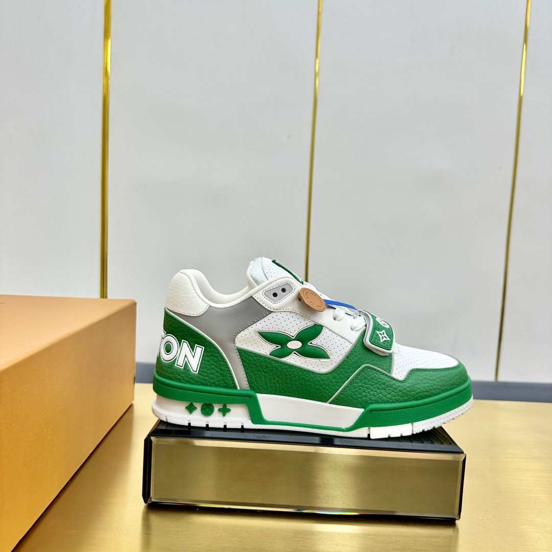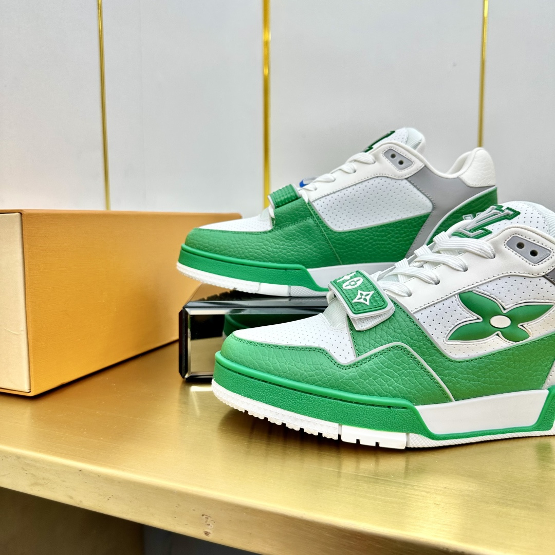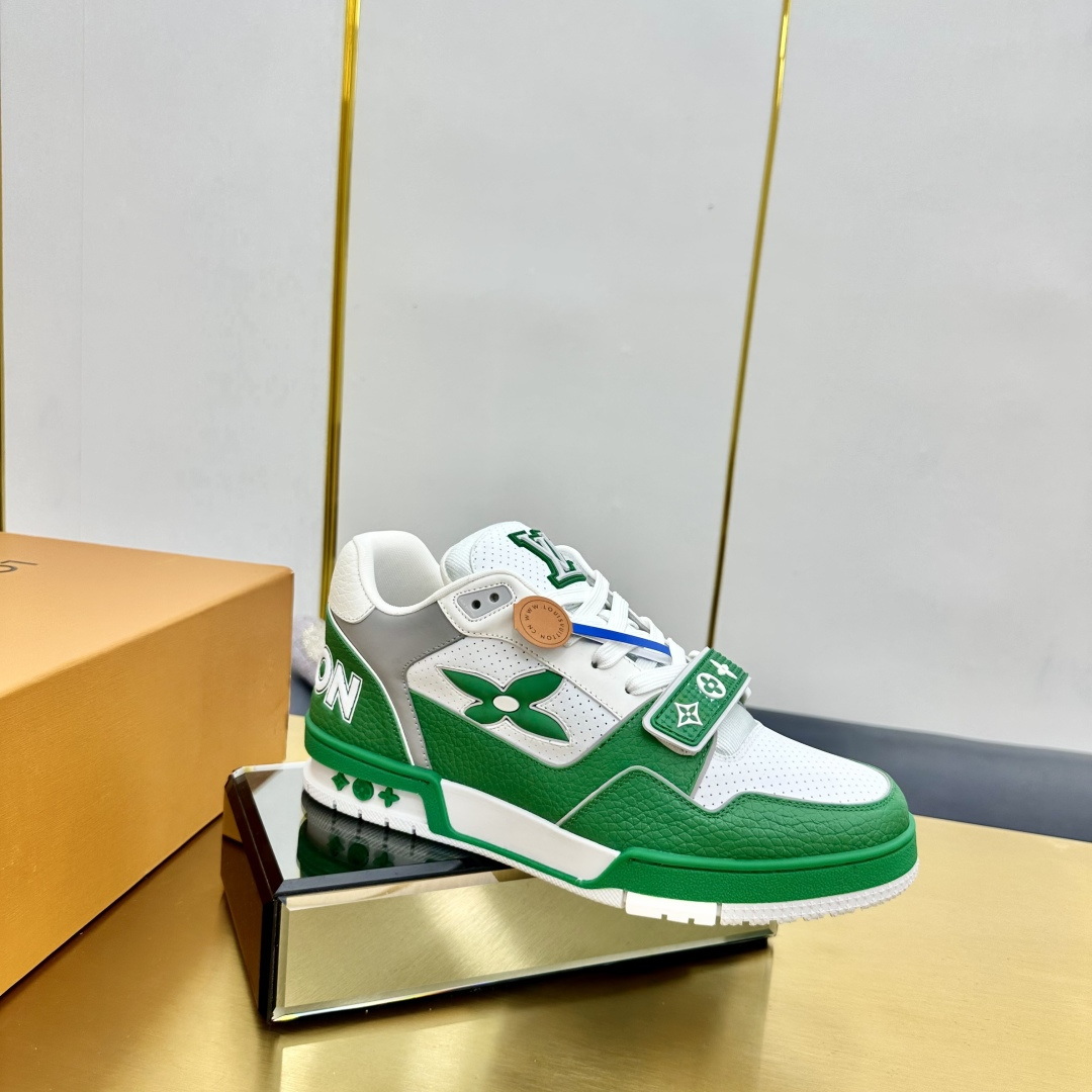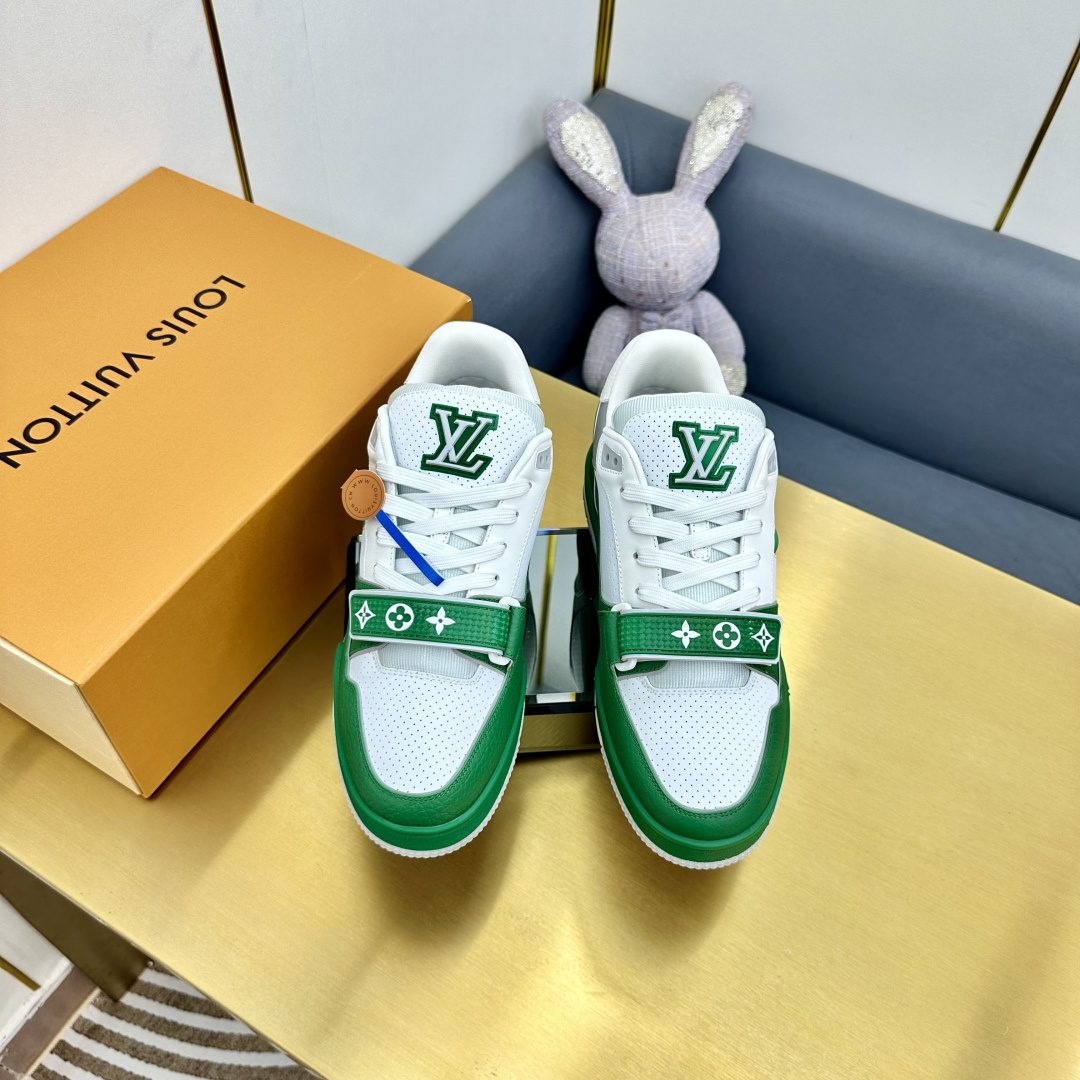 这款鞋子是AAAAA 1:1 质量 (非常棒). 使用了和原版一模一样的材料. 商标部分也保持了和路易威登/Louis Vuitton一样. 图片拍摄是实物鞋子拍摄, 您所收到的实物保证和我们图片一模一样.