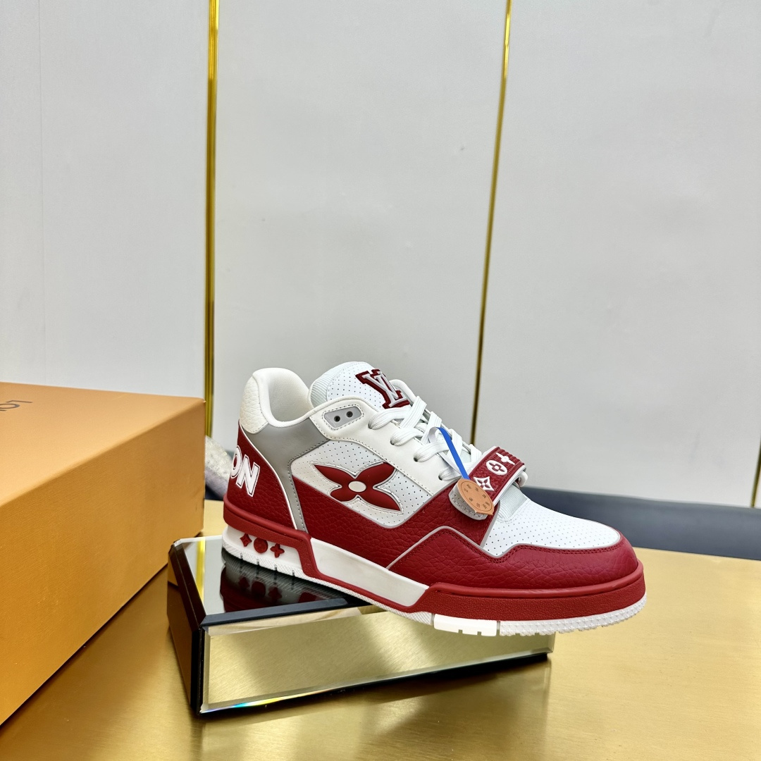 这款鞋子是AAAAA 1:1 质量 (非常棒). 使用了和原版一模一样的材料. 商标部分也保持了和路易威登/Louis Vuitton一样. 图片拍摄是实物鞋子拍摄, 您所收到的实物保证和我们图片一模一样.