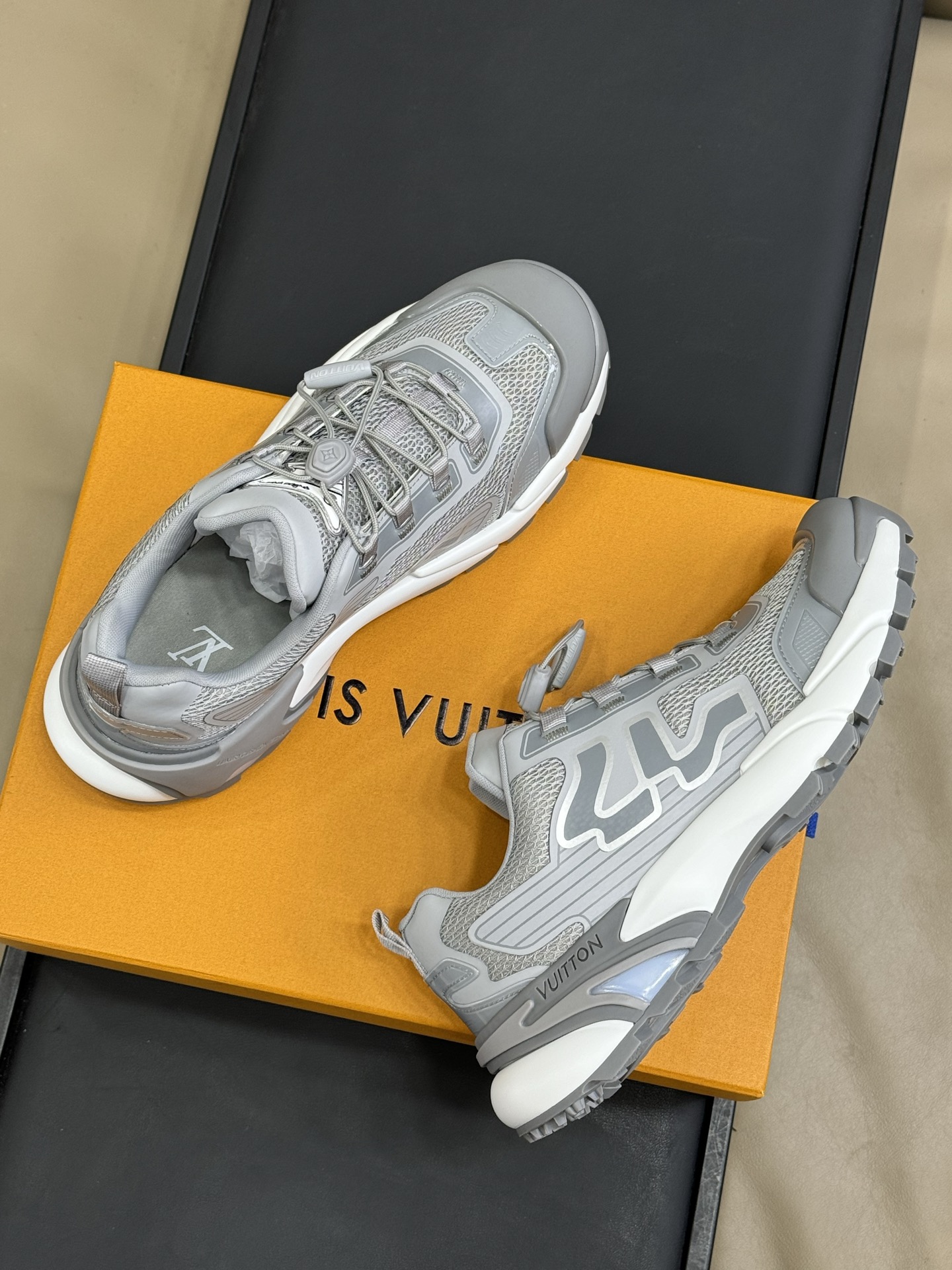 这款鞋子是AAAAA 1:1 质量 (非常棒). 使用了和原版一模一样的材料. 商标部分也保持了和路易威登/Louis Vuitton一样. 图片拍摄是实物鞋子拍摄, 您所收到的实物保证和我们图片一模一样.