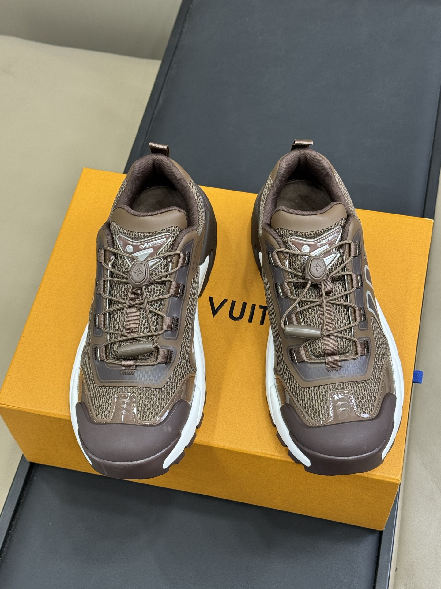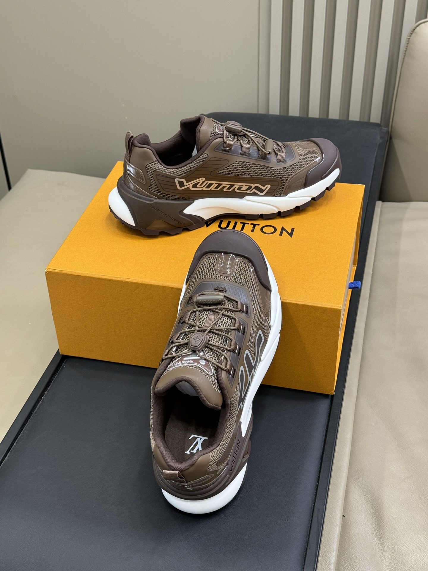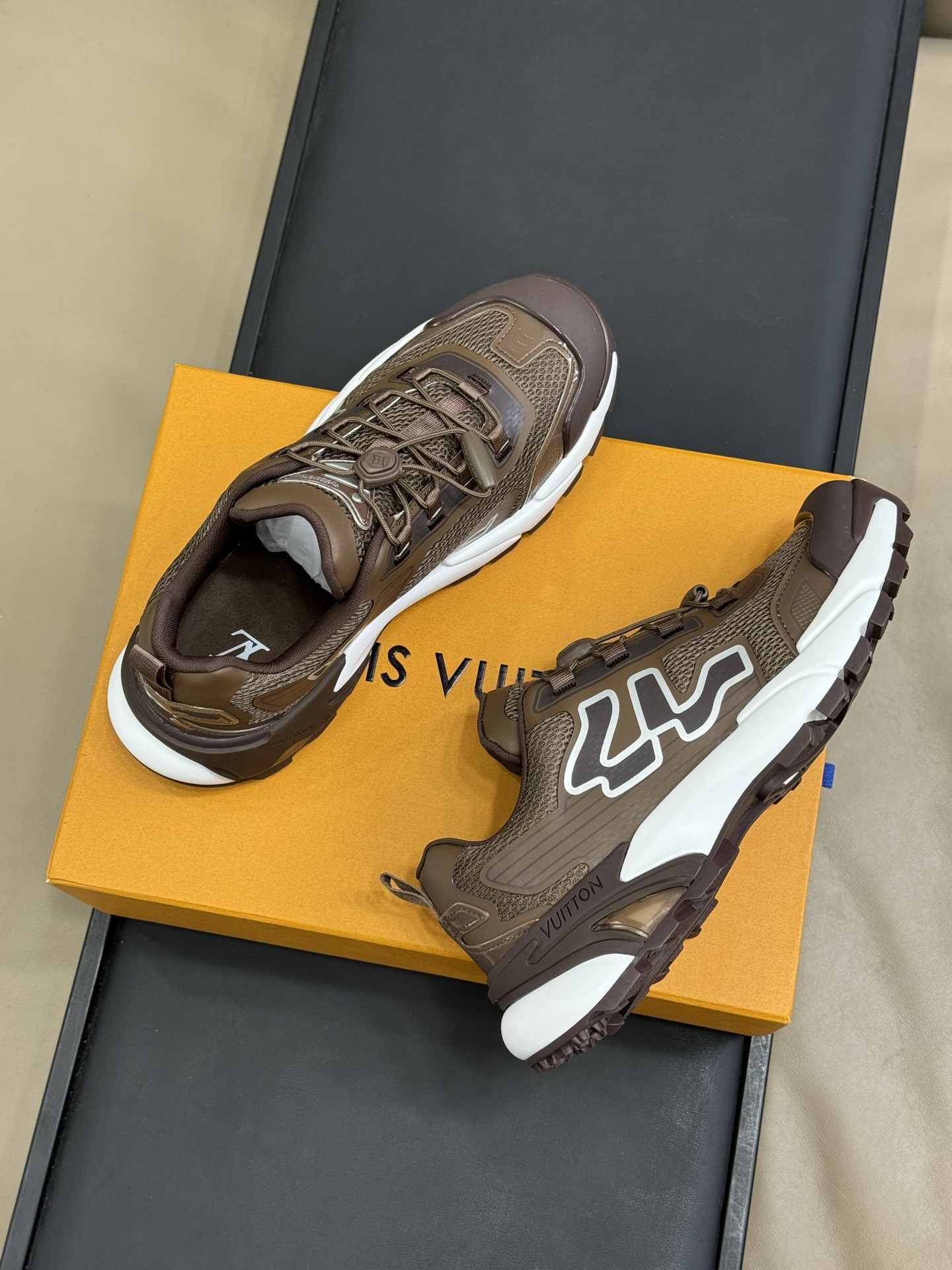 这款鞋子是AAAAA 1:1 质量 (非常棒). 使用了和原版一模一样的材料. 商标部分也保持了和路易威登/Louis Vuitton一样. 图片拍摄是实物鞋子拍摄, 您所收到的实物保证和我们图片一模一样.